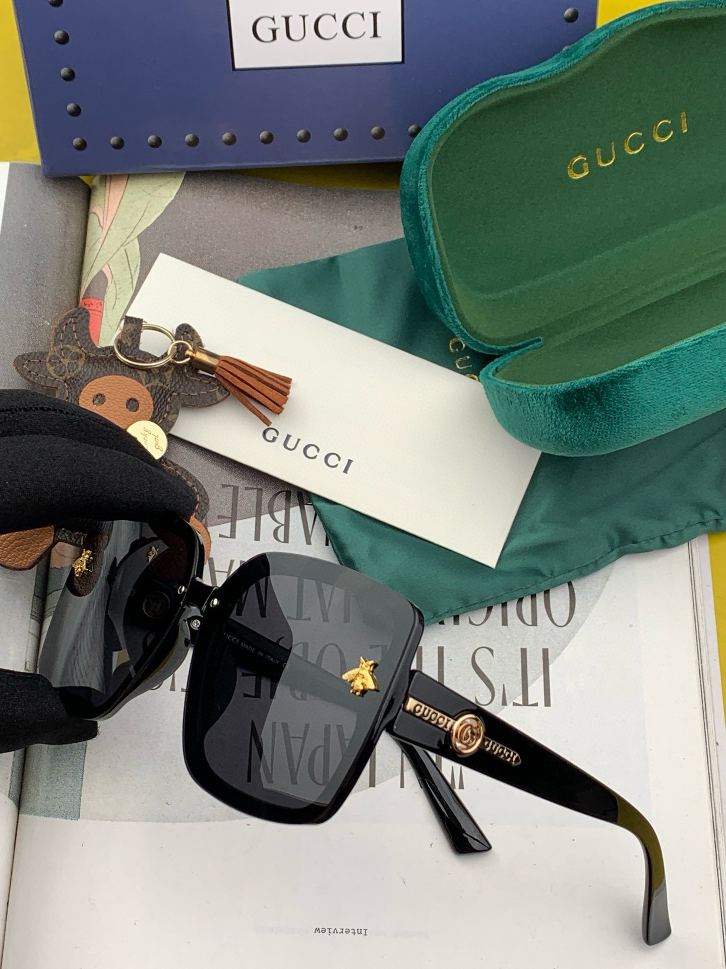 这款太阳眼镜是AAAAA 1:1 质量 (非常棒). 使用了和原版一模一样的材料. 商标部分也保持了和古奇/Gucci一样. 图片拍摄是实物太阳眼镜拍摄, 您所收到的实物保证和我们图片一模一样.