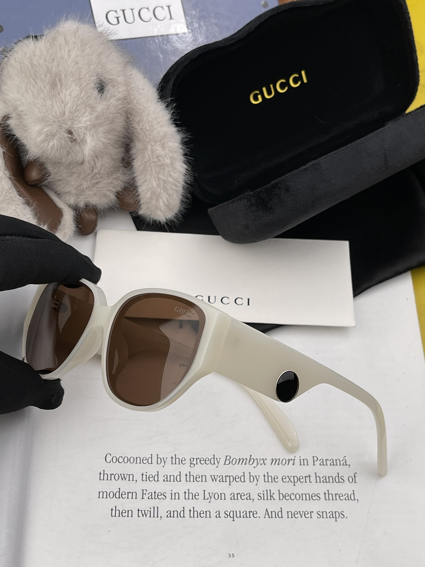 这款太阳眼镜是AAAAA 1:1 质量 (非常棒). 使用了和原版一模一样的材料. 商标部分也保持了和古奇/Gucci一样. 图片拍摄是实物太阳眼镜拍摄, 您所收到的实物保证和我们图片一模一样.
