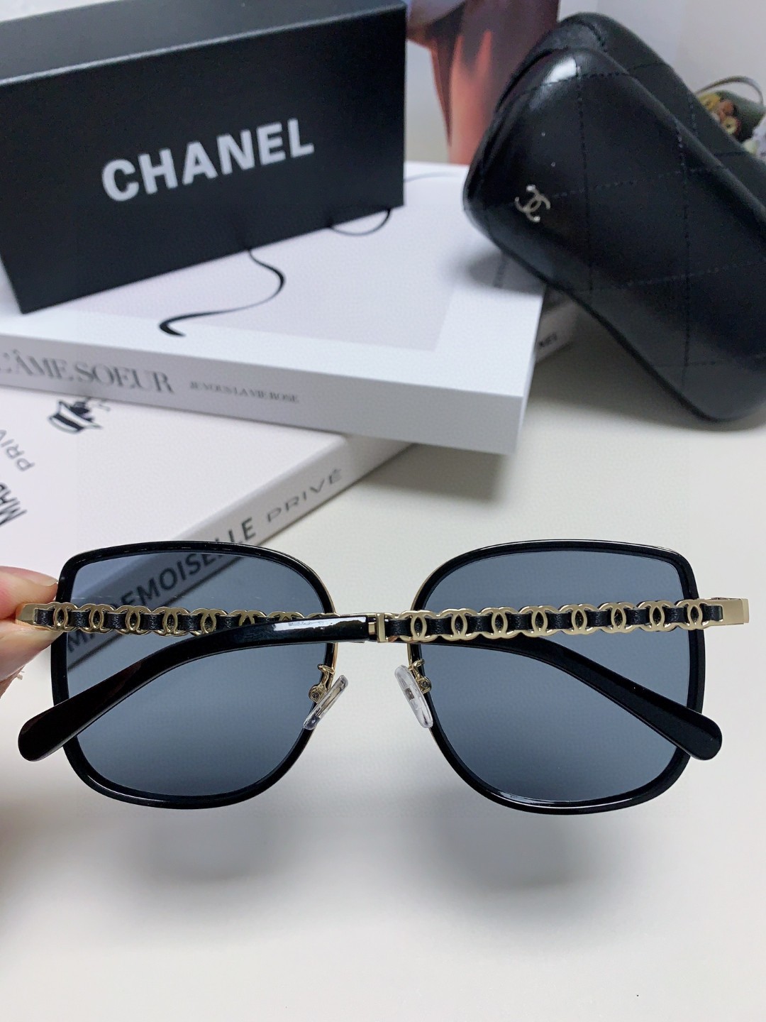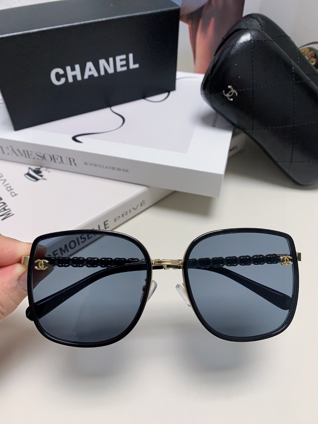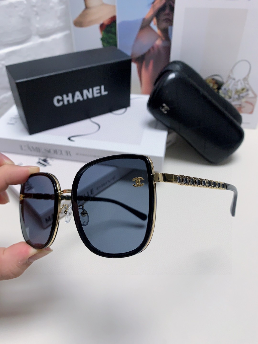 这款太阳眼镜是AAAAA 1:1 质量 (非常棒). 使用了和原版一模一样的材料. 商标部分也保持了和香奈儿/Chanel一样. 图片拍摄是实物太阳眼镜拍摄, 您所收到的实物保证和我们图片一模一样.