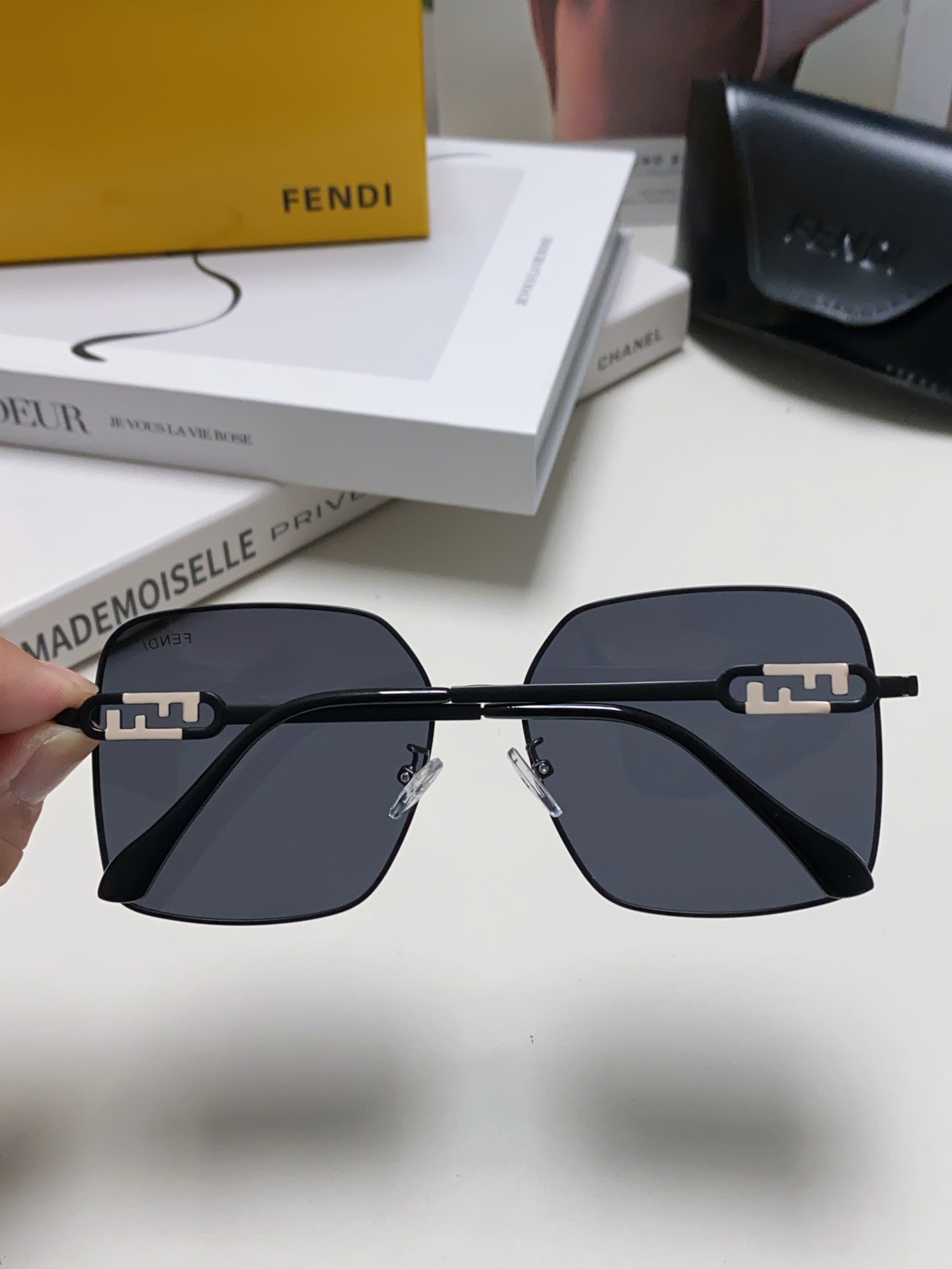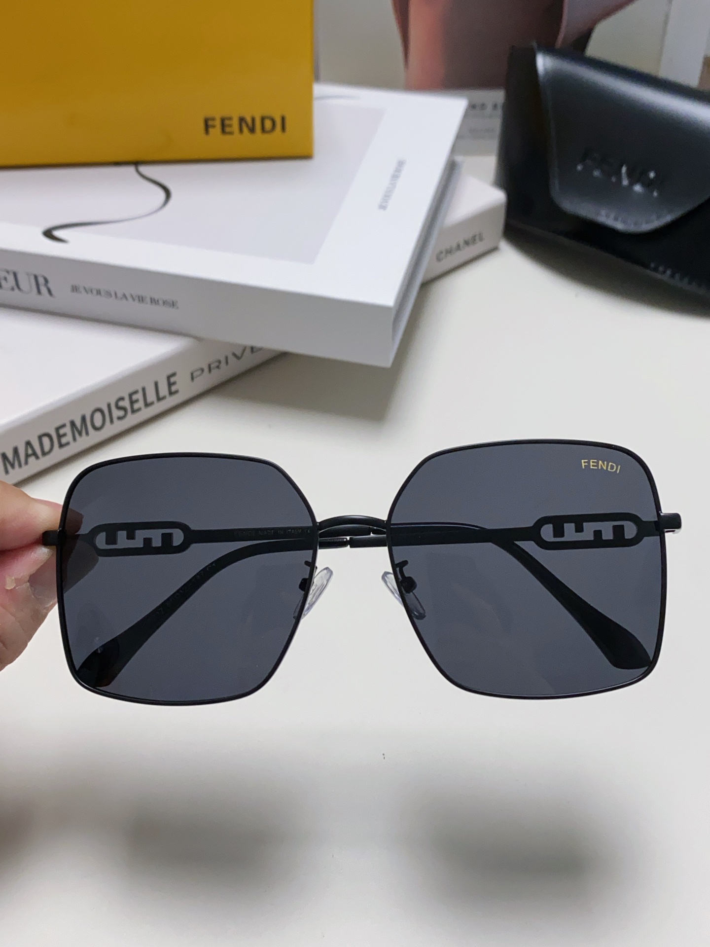 这款太阳眼镜是AAAAA 1:1 质量 (非常棒). 使用了和原版一模一样的材料. 商标部分也保持了和芬迪/Fendi一样. 图片拍摄是实物太阳眼镜拍摄, 您所收到的实物保证和我们图片一模一样.