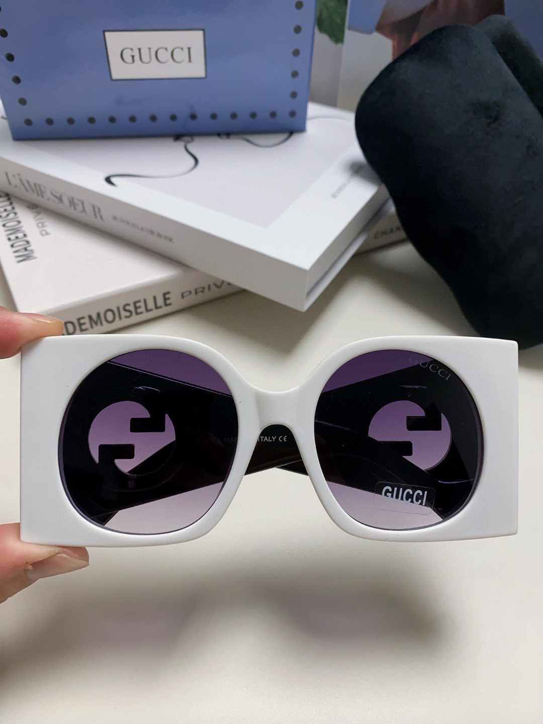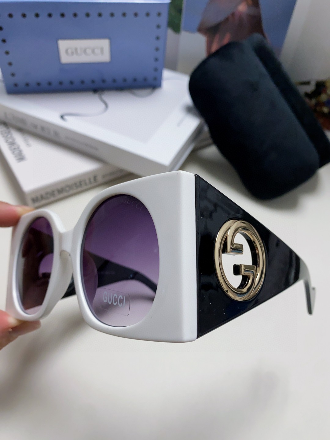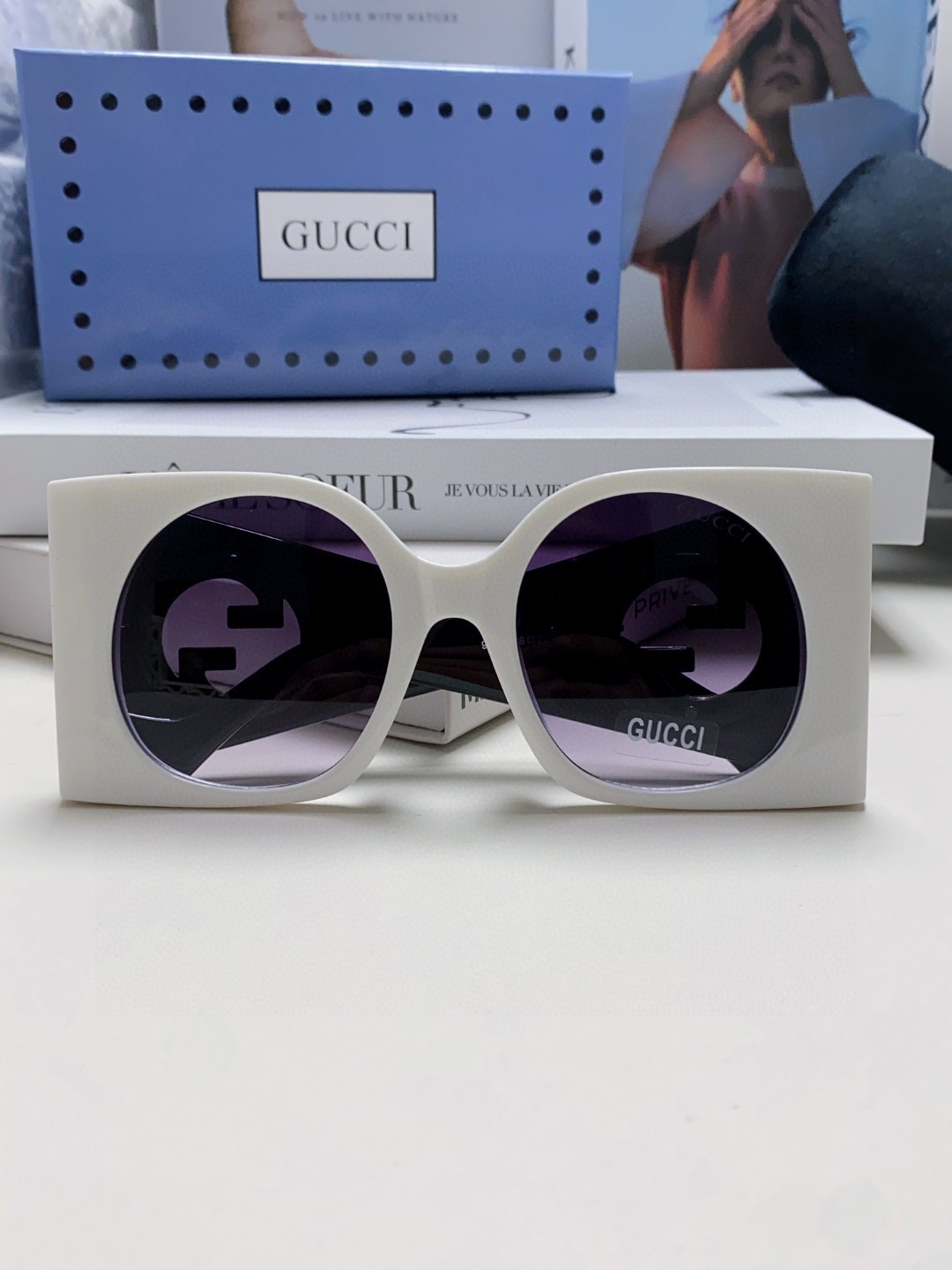这款太阳眼镜是AAAAA 1:1 质量 (非常棒). 使用了和原版一模一样的材料. 商标部分也保持了和古奇/Gucci一样. 图片拍摄是实物太阳眼镜拍摄, 您所收到的实物保证和我们图片一模一样.