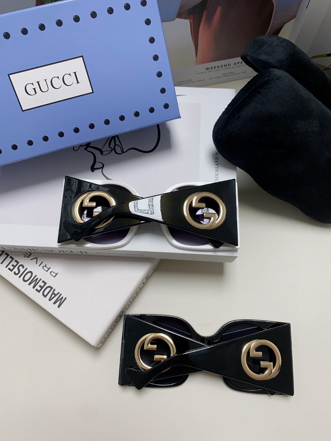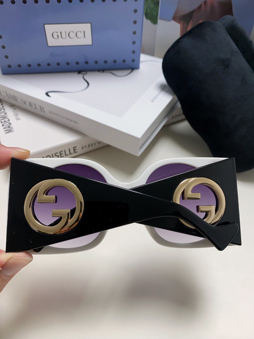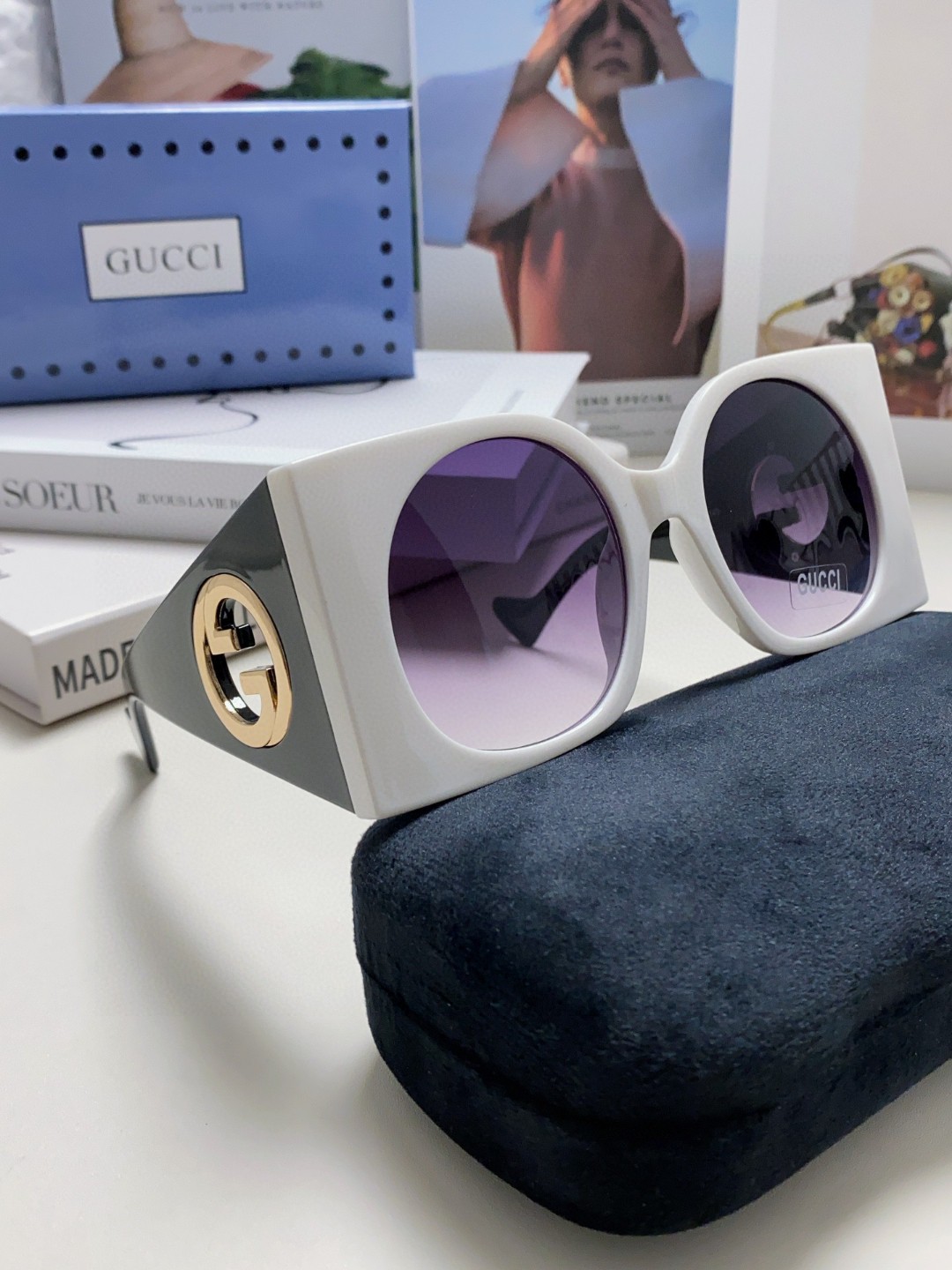 这款太阳眼镜是AAAAA 1:1 质量 (非常棒). 使用了和原版一模一样的材料. 商标部分也保持了和古奇/Gucci一样. 图片拍摄是实物太阳眼镜拍摄, 您所收到的实物保证和我们图片一模一样.