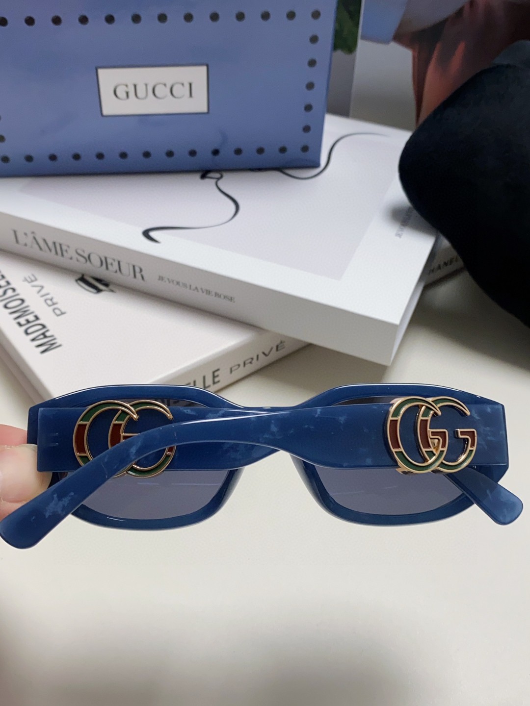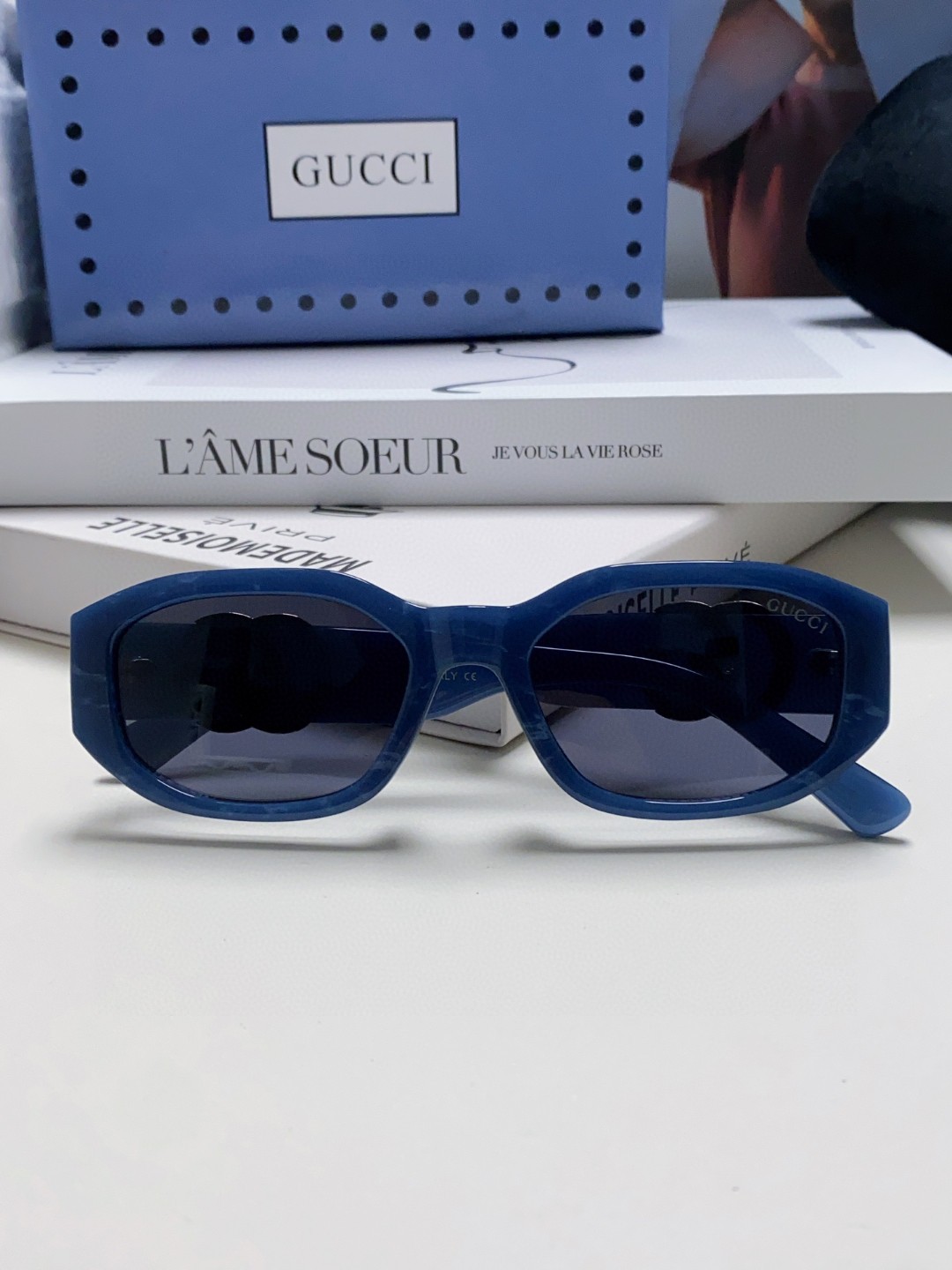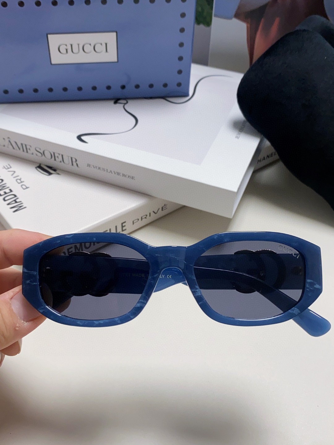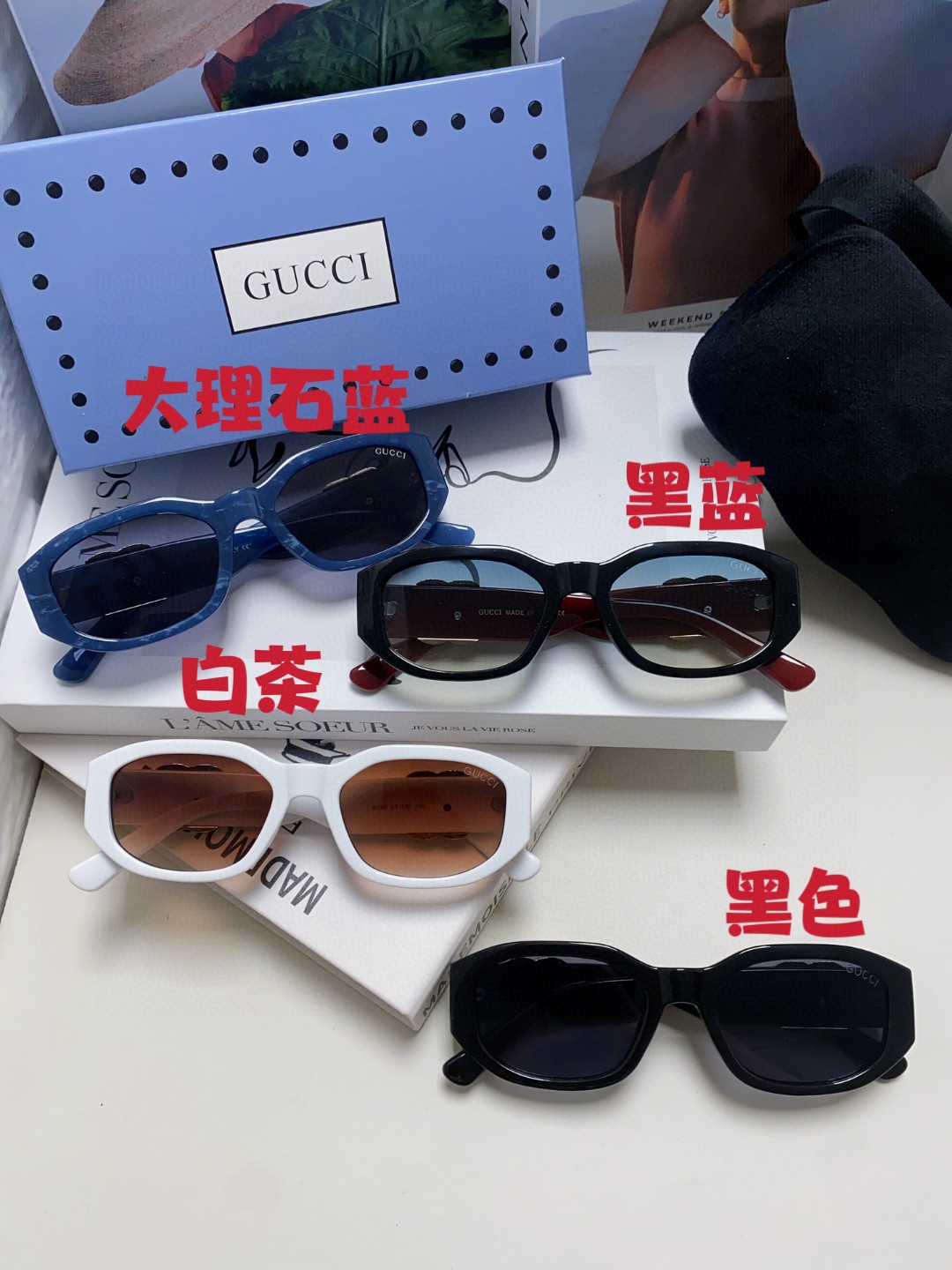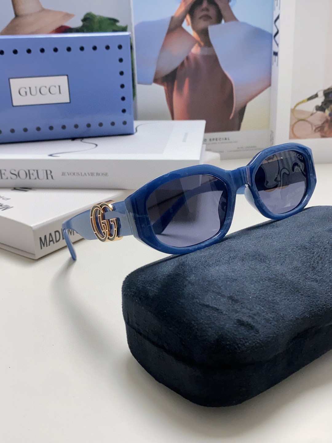 这款太阳眼镜是AAAAA 1:1 质量 (非常棒). 使用了和原版一模一样的材料. 商标部分也保持了和古奇/Gucci一样. 图片拍摄是实物太阳眼镜拍摄, 您所收到的实物保证和我们图片一模一样.
