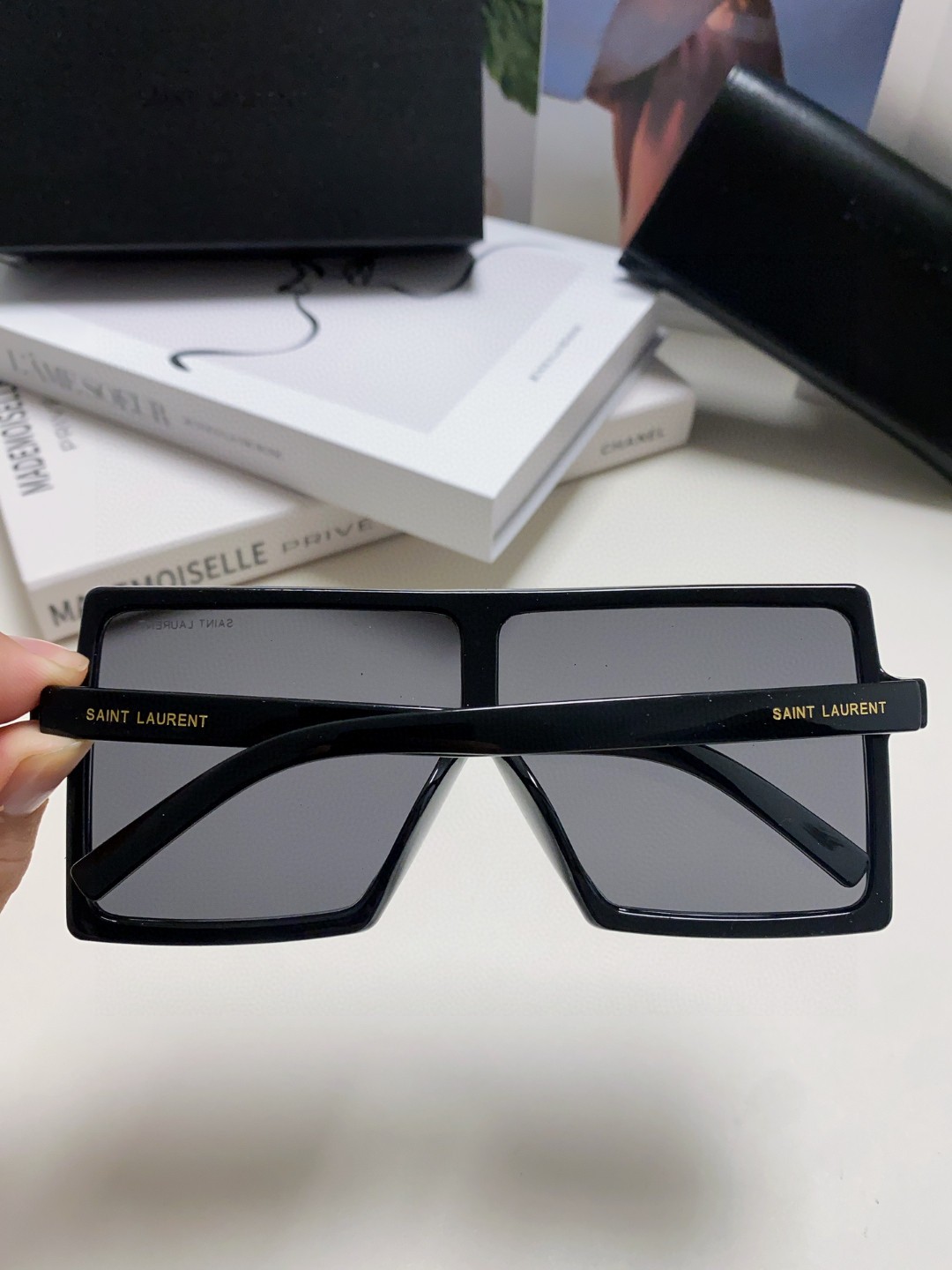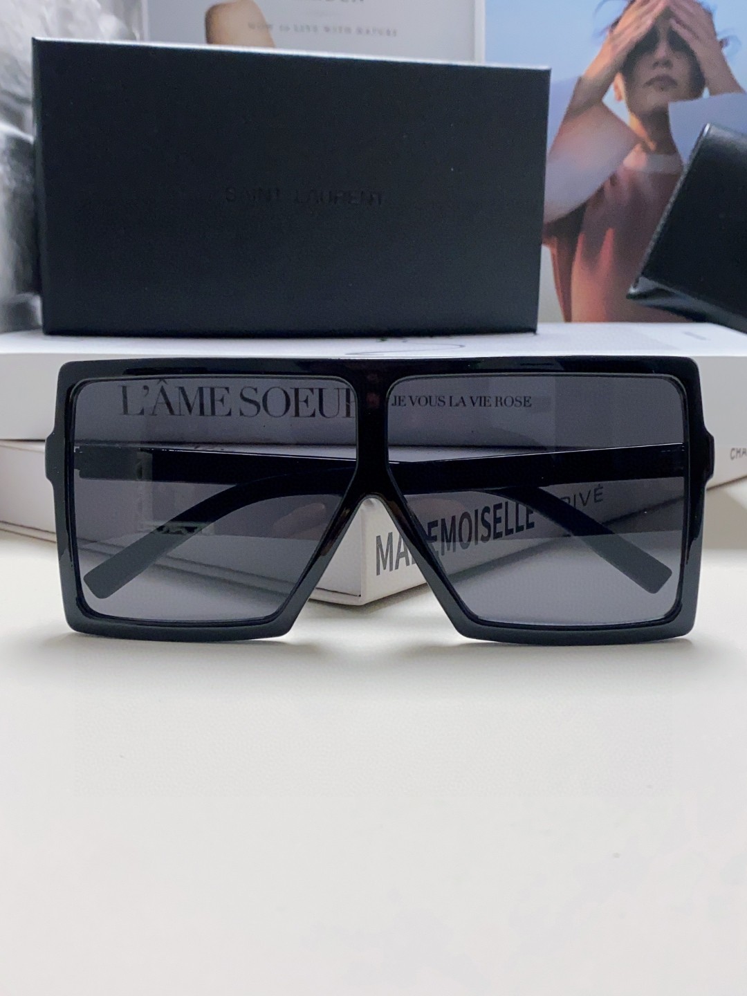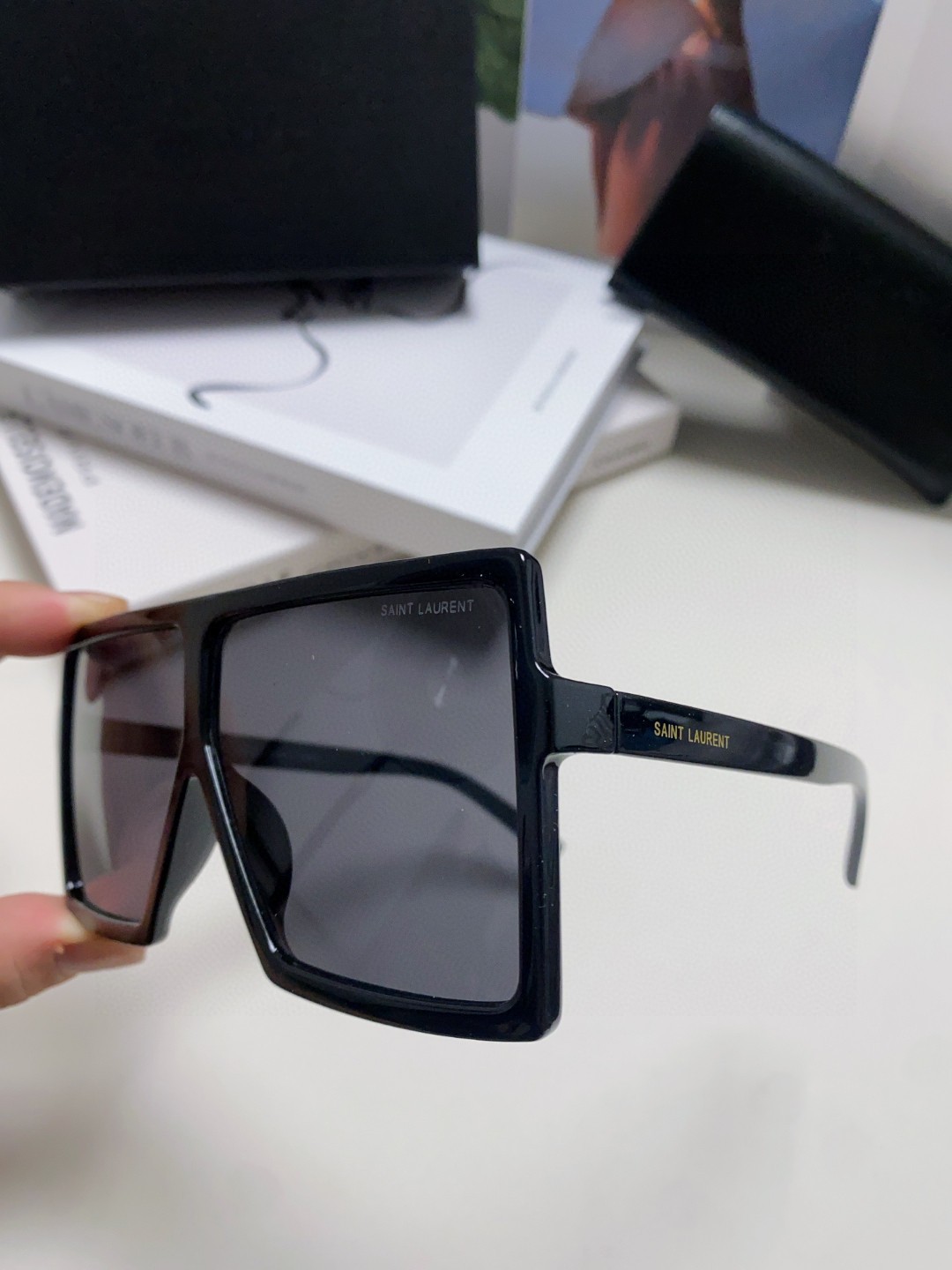 这款太阳眼镜是AAAAA 1:1 质量 (非常棒). 使用了和原版一模一样的材料. 商标部分也保持了和圣罗兰/Saint Laurent一样. 图片拍摄是实物太阳眼镜拍摄, 您所收到的实物保证和我们图片一模一样.