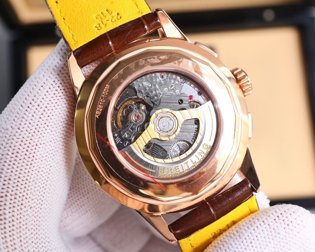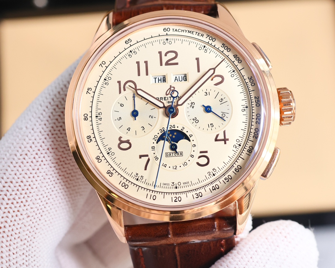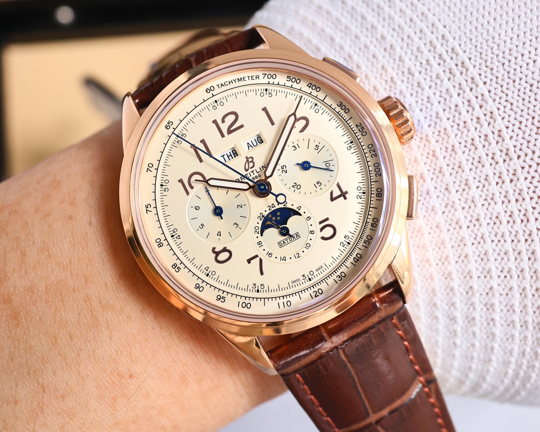 这款手表是AAAAA 1:1 质量 (非常棒). 使用了和原版一模一样的材料. 商标部分也保持了和Breitling一样. 图片拍摄是实物手表拍摄, 您所收到的实物保证和我们图片一模一样.
