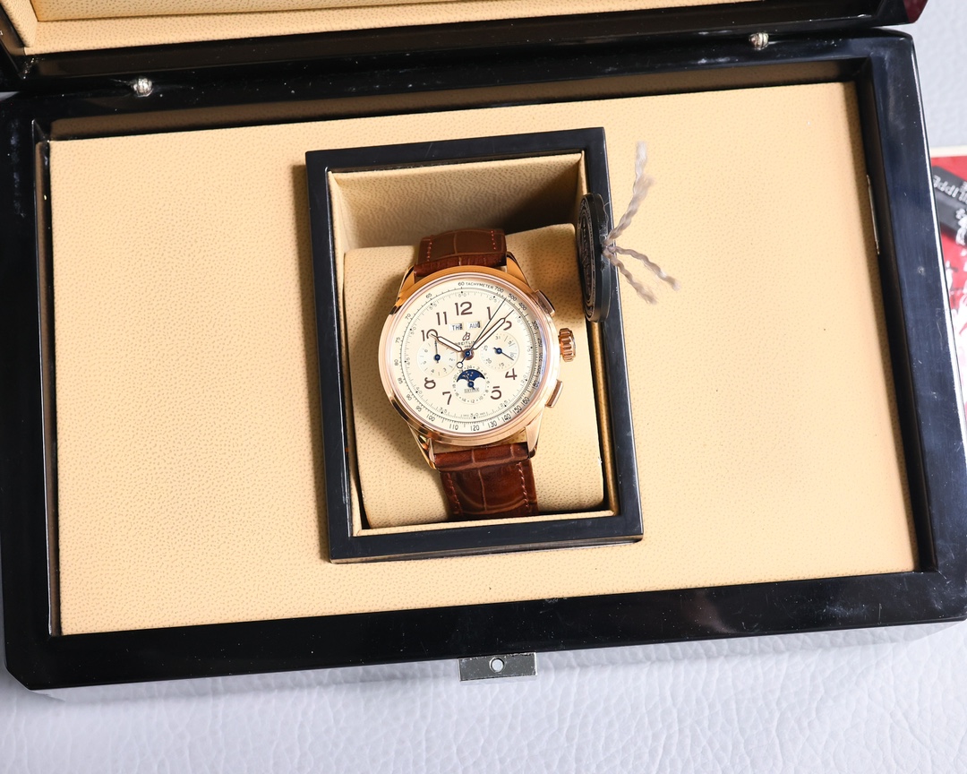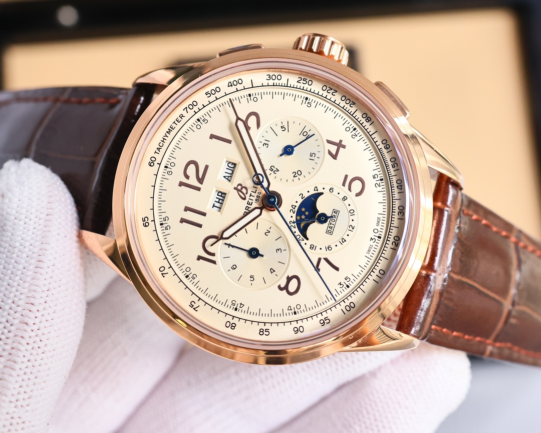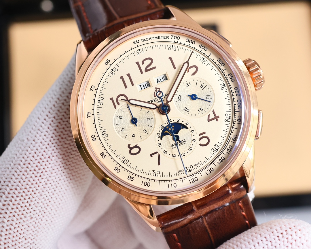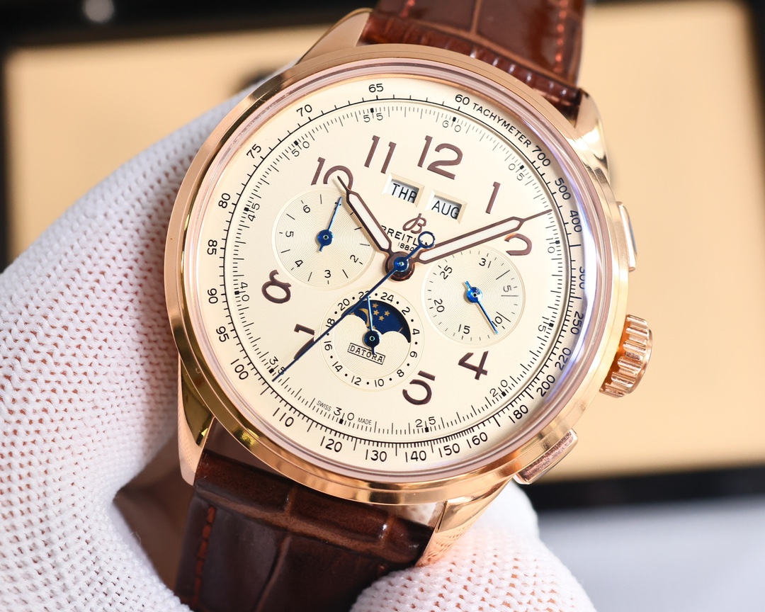 这款手表是AAAAA 1:1 质量 (非常棒). 使用了和原版一模一样的材料. 商标部分也保持了和Breitling一样. 图片拍摄是实物手表拍摄, 您所收到的实物保证和我们图片一模一样.