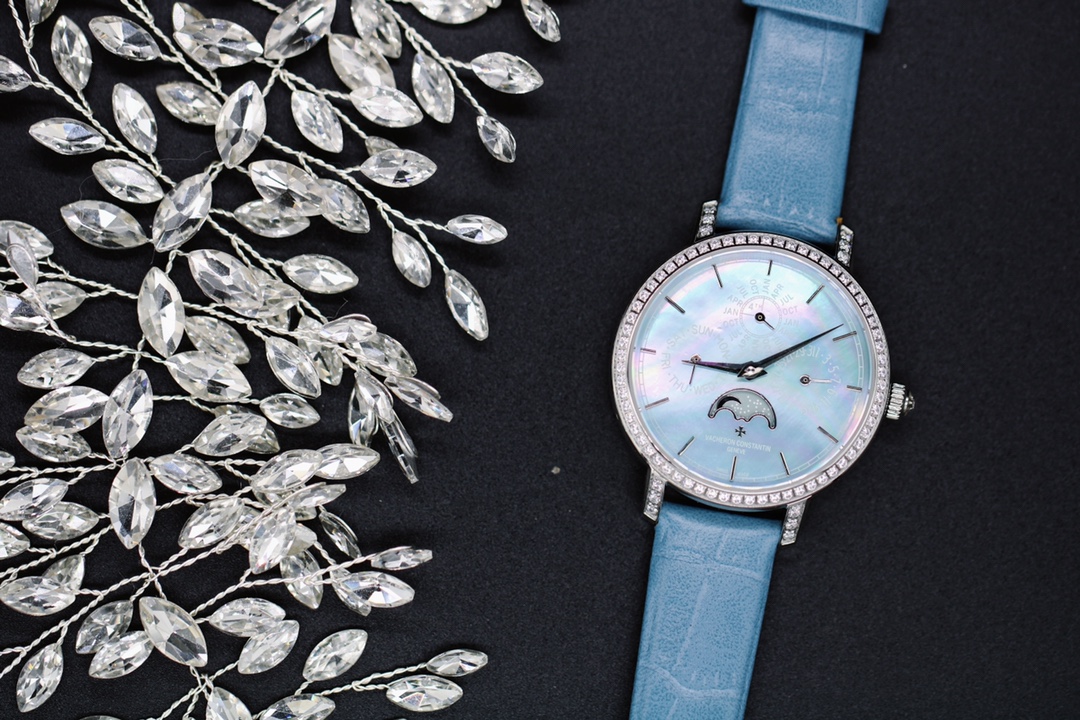 这款手表是AAAAA 1:1 质量 (非常棒). 使用了和原版一模一样的材料. 商标部分也保持了和江诗丹顿/Vacheron Constantin一样. 图片拍摄是实物手表拍摄, 您所收到的实物保证和我们图片一模一样.