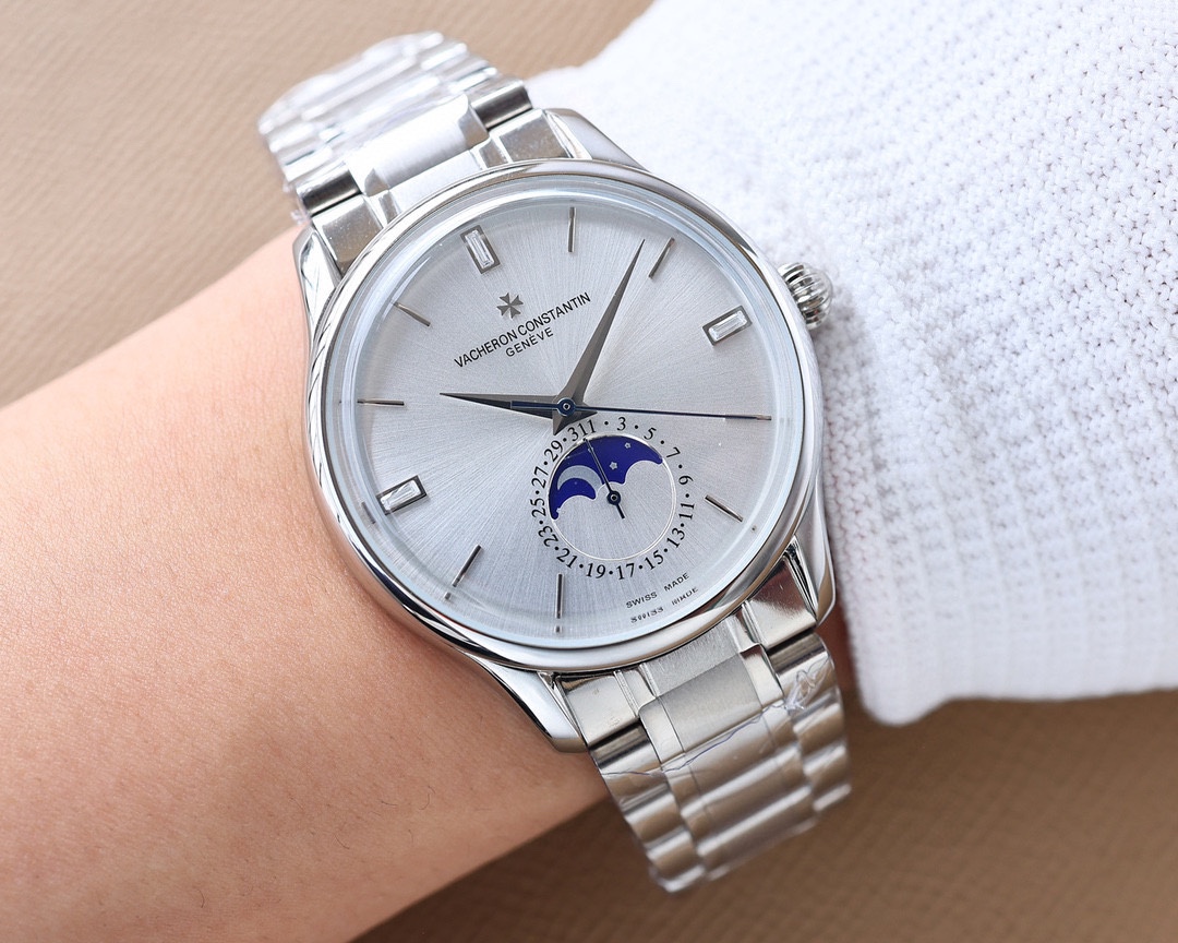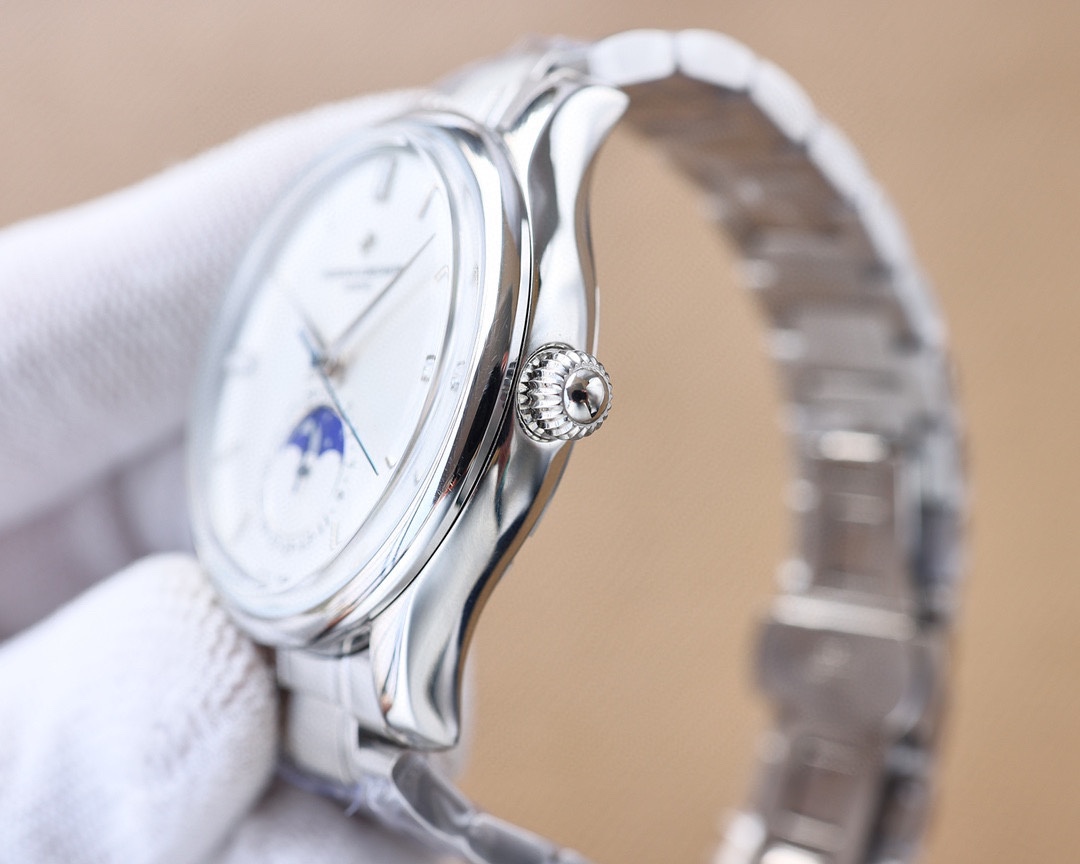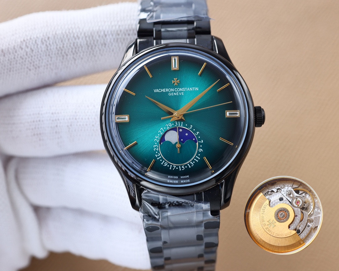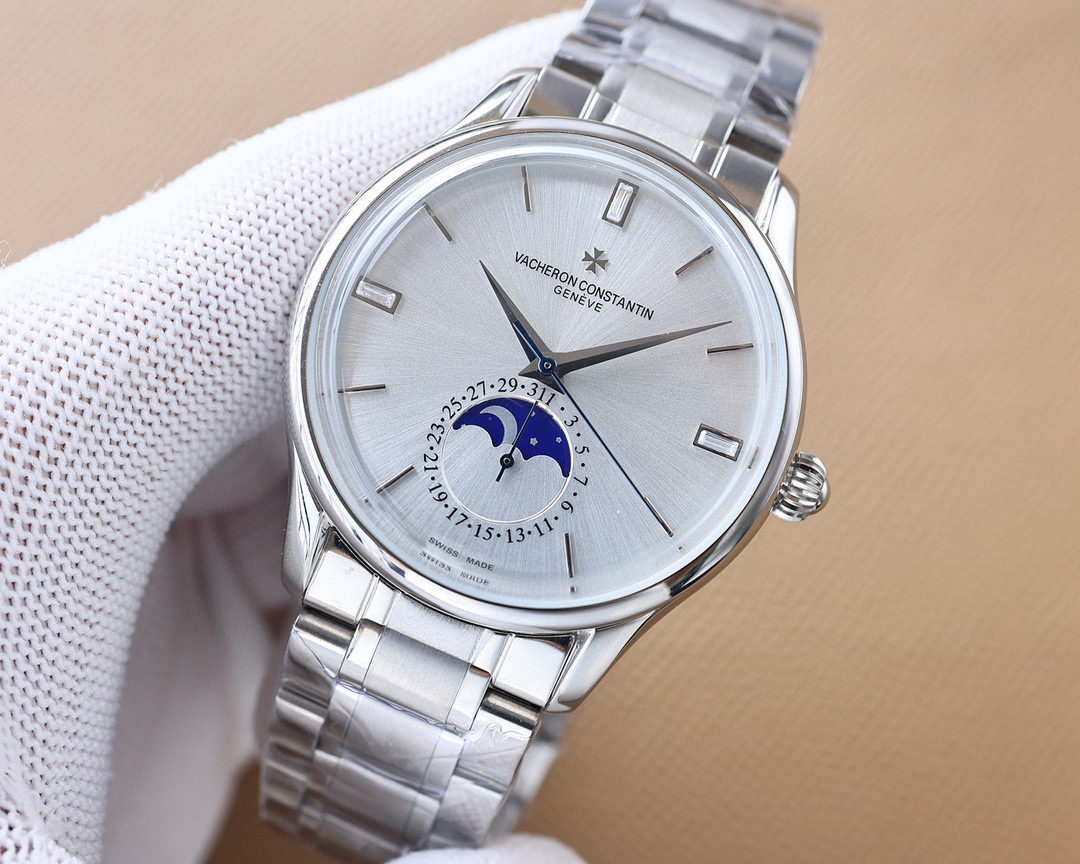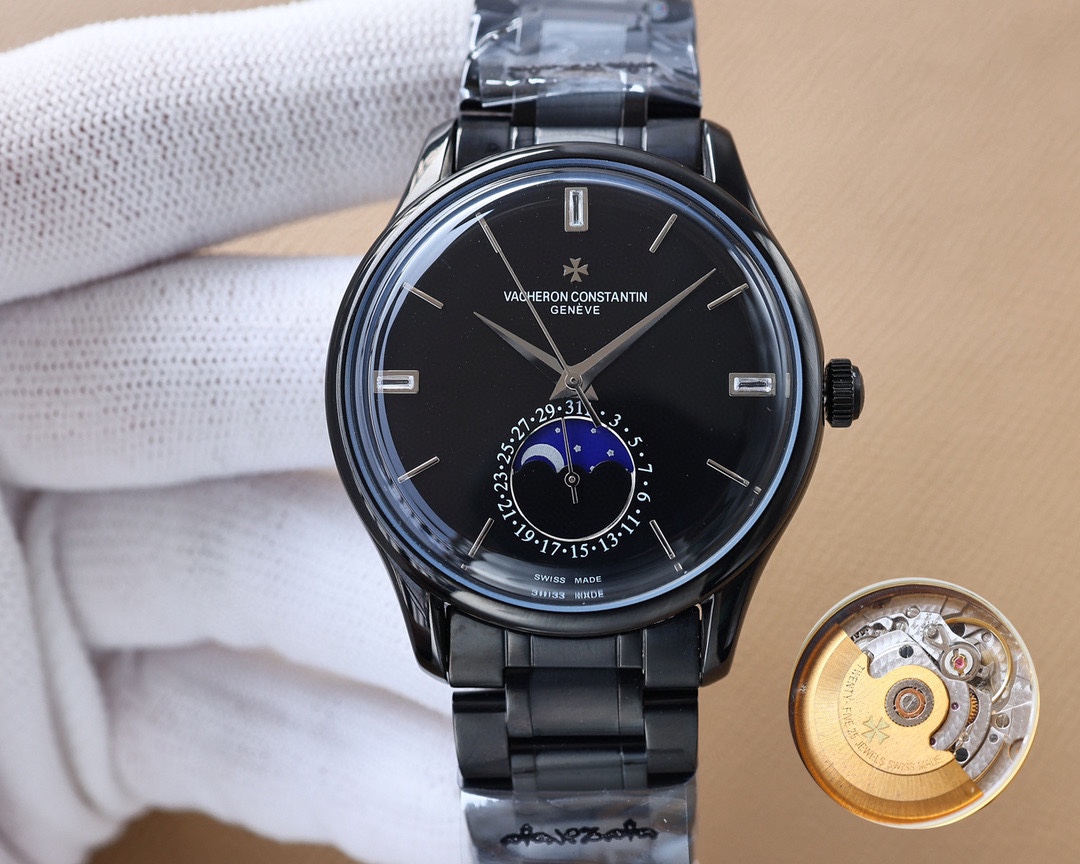 这款手表是AAAAA 1:1 质量 (非常棒). 使用了和原版一模一样的材料. 商标部分也保持了和江诗丹顿/Vacheron Constantin一样. 图片拍摄是实物手表拍摄, 您所收到的实物保证和我们图片一模一样.