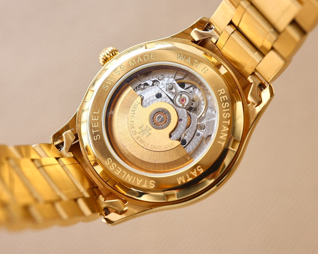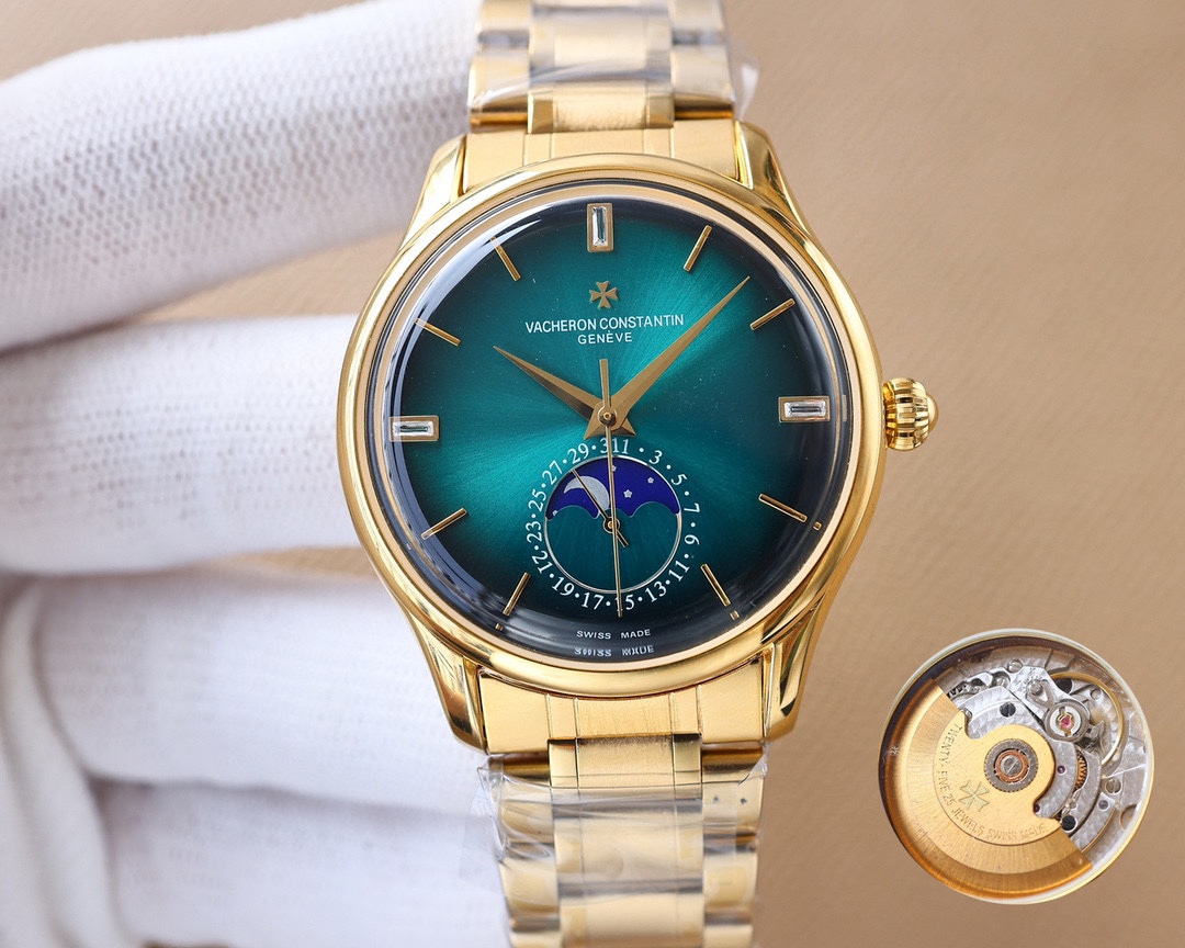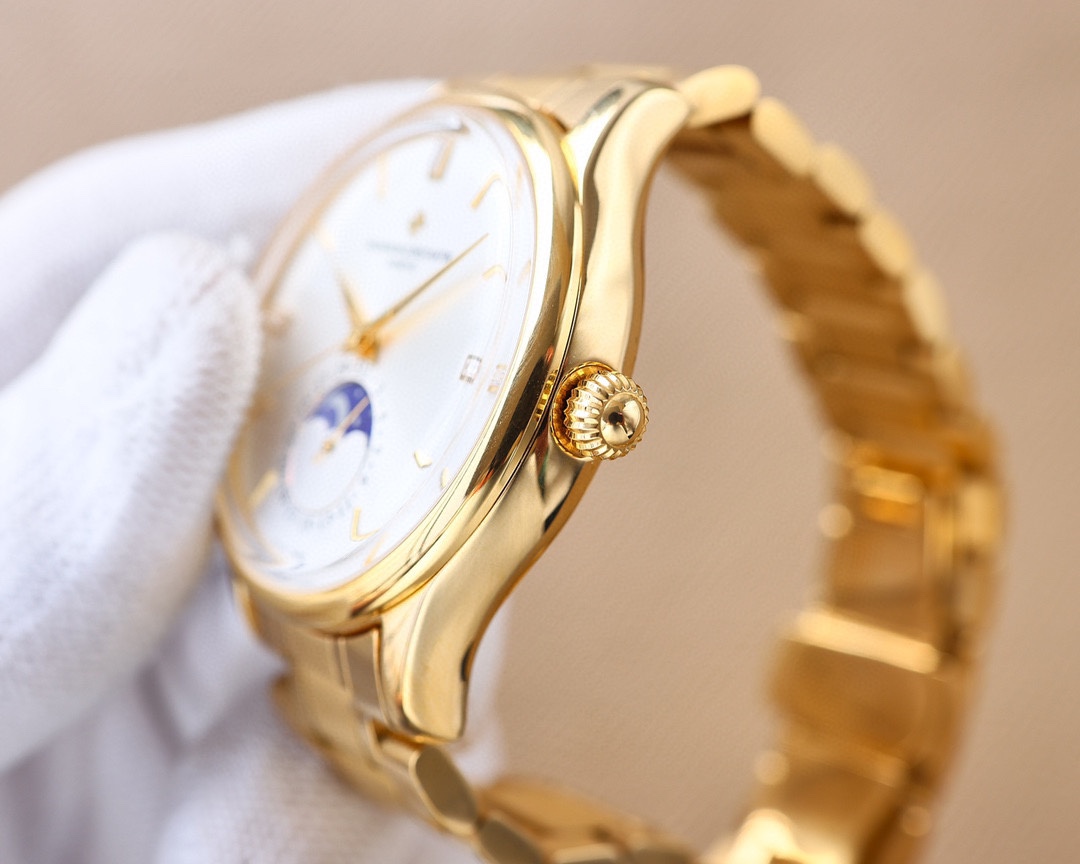 这款手表是AAAAA 1:1 质量 (非常棒). 使用了和原版一模一样的材料. 商标部分也保持了和江诗丹顿/Vacheron Constantin一样. 图片拍摄是实物手表拍摄, 您所收到的实物保证和我们图片一模一样.
