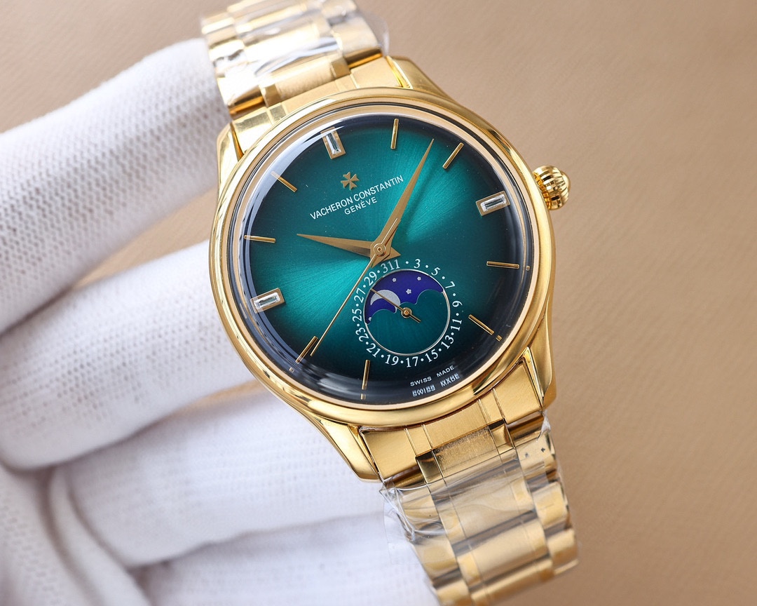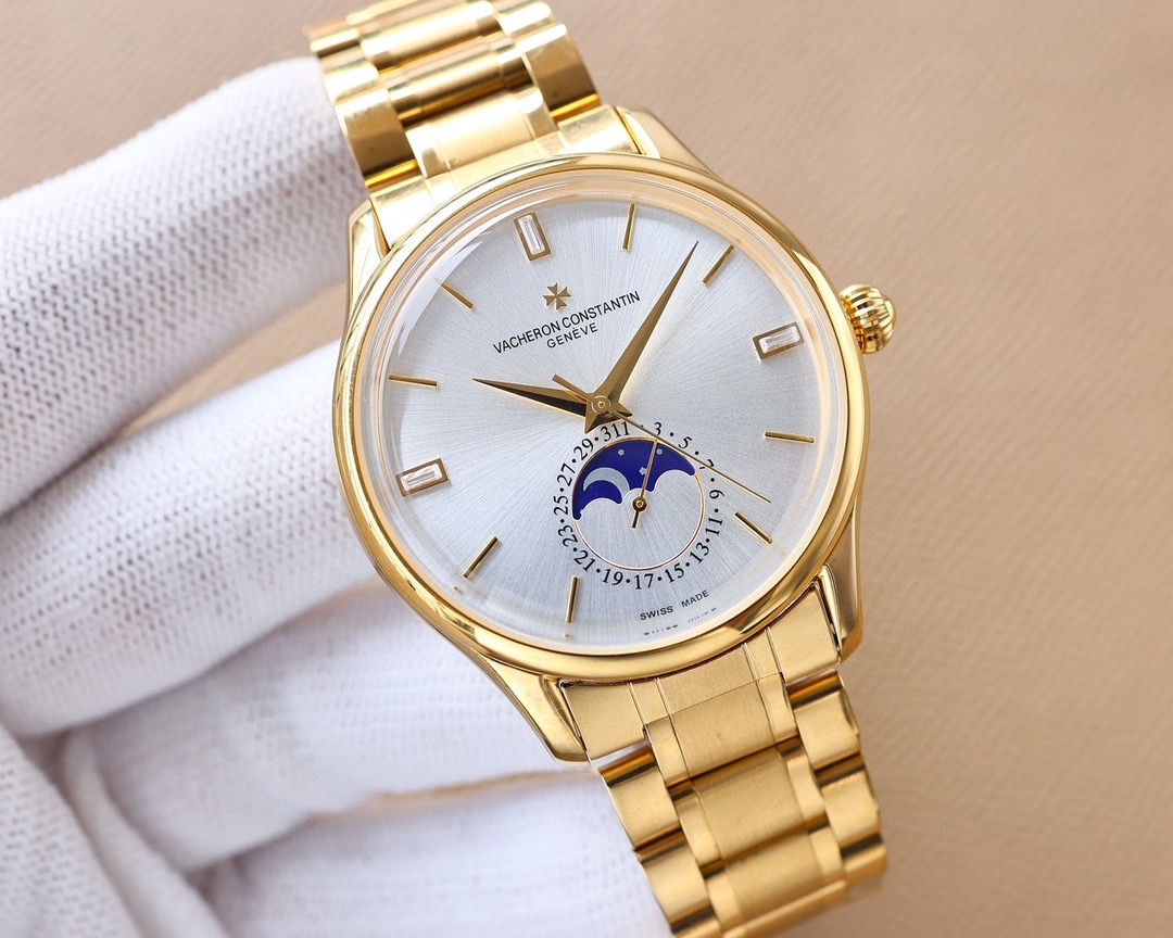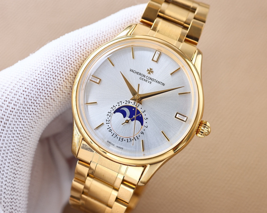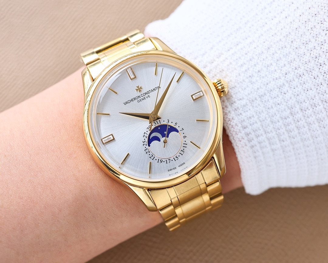 这款手表是AAAAA 1:1 质量 (非常棒). 使用了和原版一模一样的材料. 商标部分也保持了和江诗丹顿/Vacheron Constantin一样. 图片拍摄是实物手表拍摄, 您所收到的实物保证和我们图片一模一样.