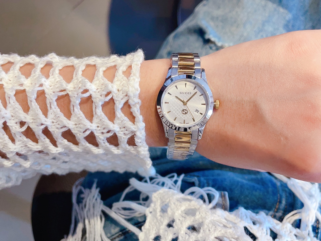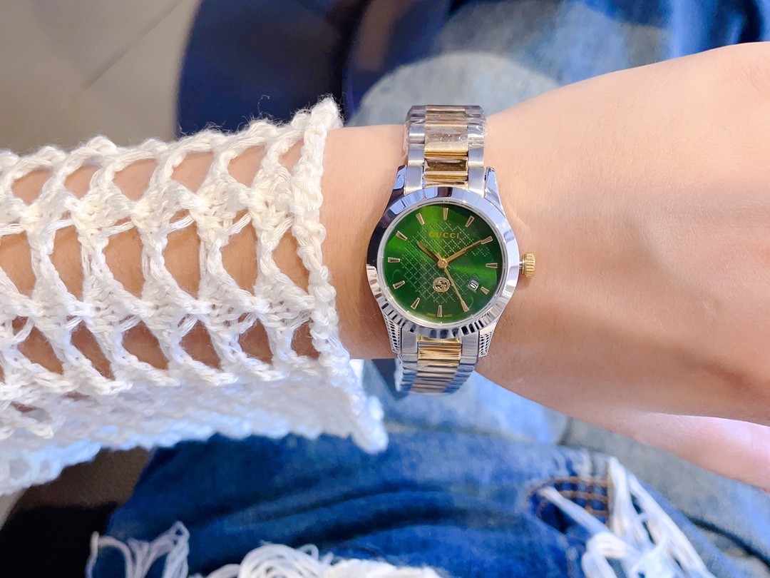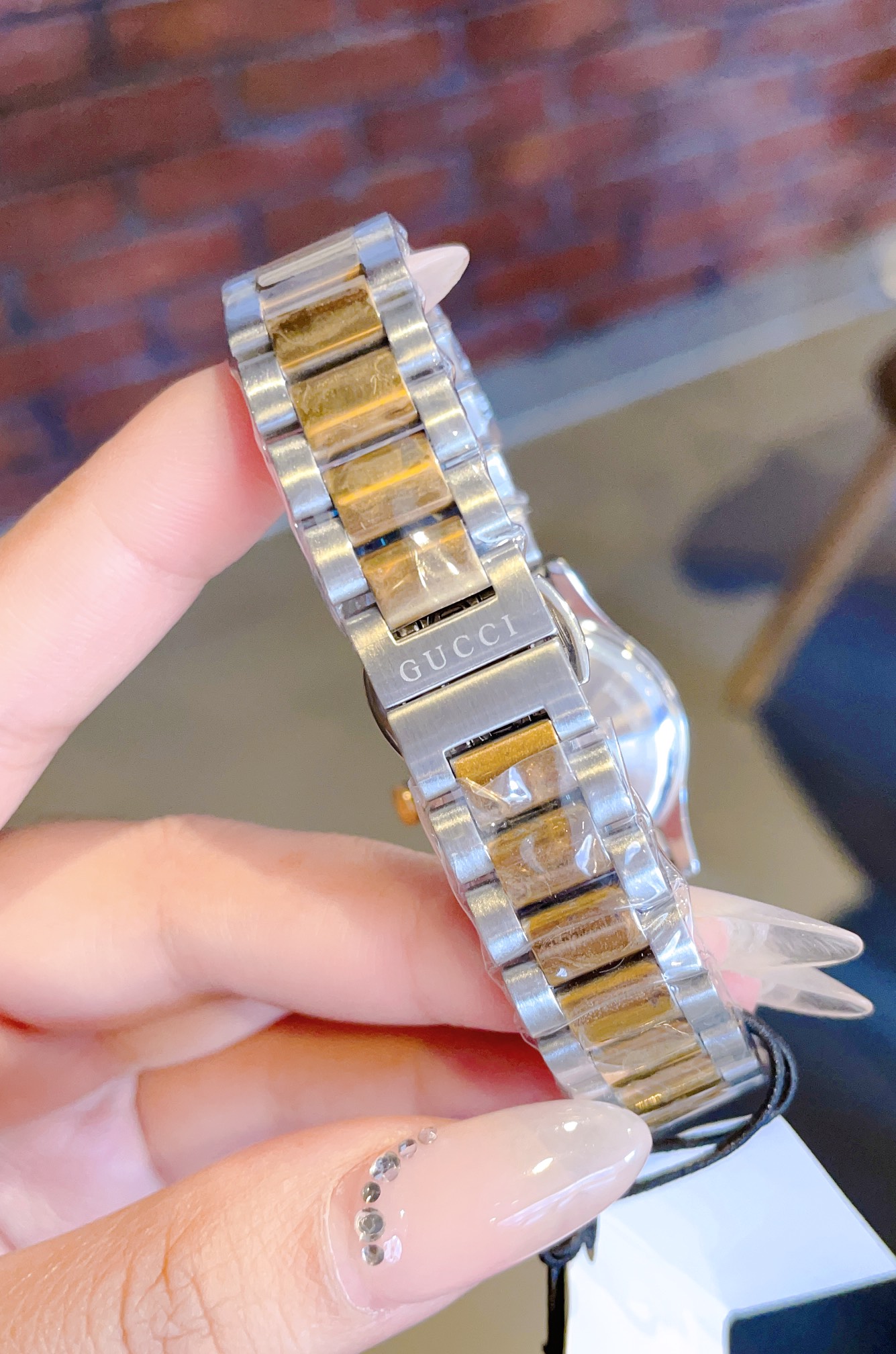 这款手表是AAAAA 1:1 质量 (非常棒). 使用了和原版一模一样的材料. 商标部分也保持了和古奇/Gucci一样. 图片拍摄是实物手表拍摄, 您所收到的实物保证和我们图片一模一样.