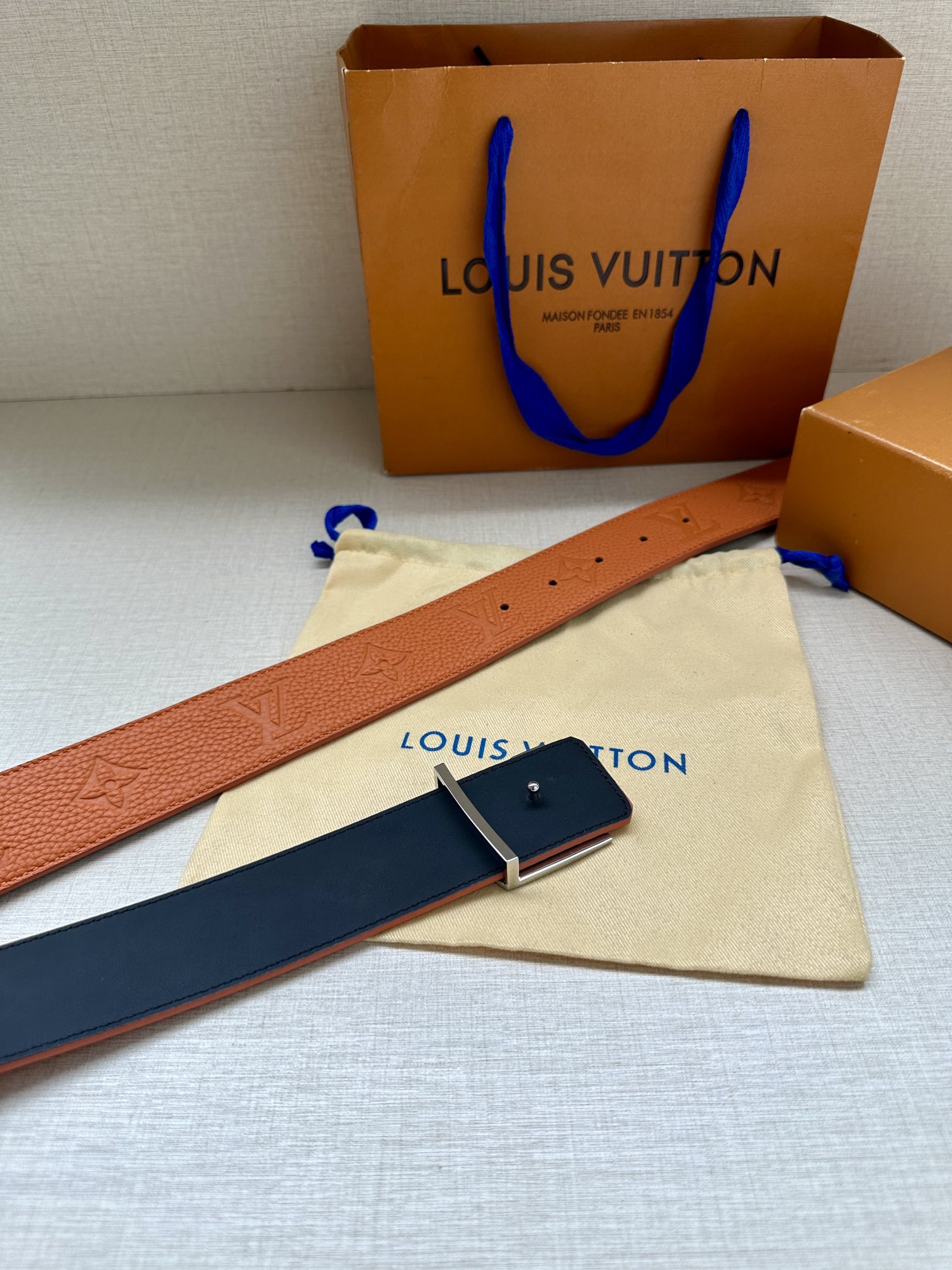 这款皮带是AAAAA 1:1 质量 (非常棒). 使用了和原版一模一样的材料. 商标部分也保持了和路易威登/Louis Vuitton一样. 图片拍摄是实物皮带拍摄, 您所收到的实物保证和我们图片一模一样.
