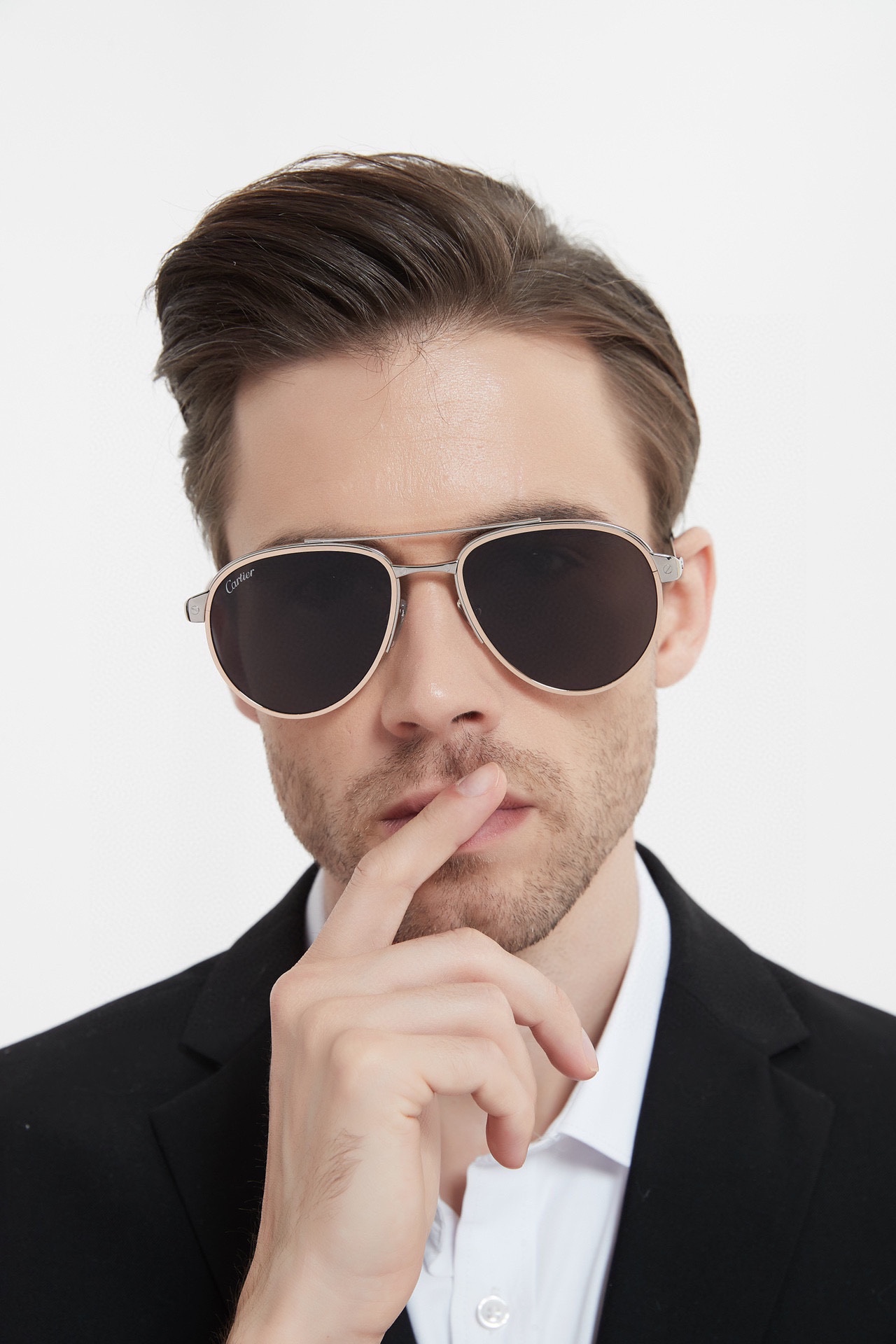 这款太阳眼镜是AAAAA 1:1 质量 (非常棒). 使用了和原版一模一样的材料. 商标部分也保持了和卡地亚/Cartier一样. 图片拍摄是实物太阳眼镜拍摄, 您所收到的实物保证和我们图片一模一样.