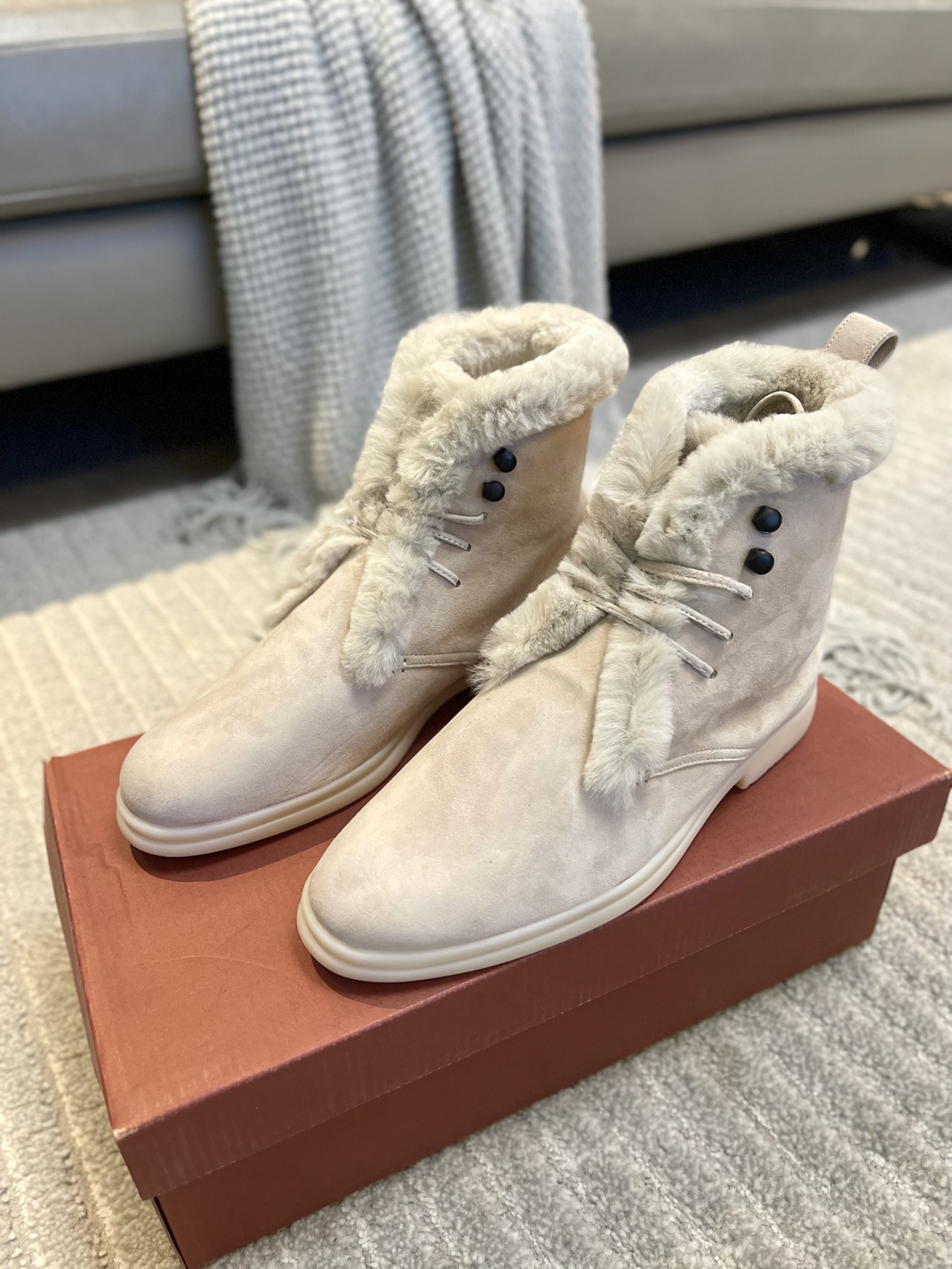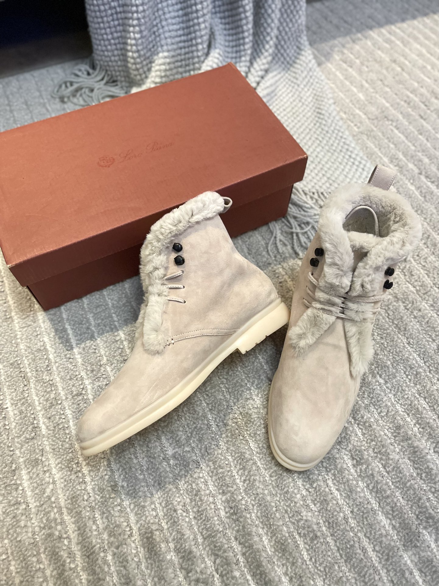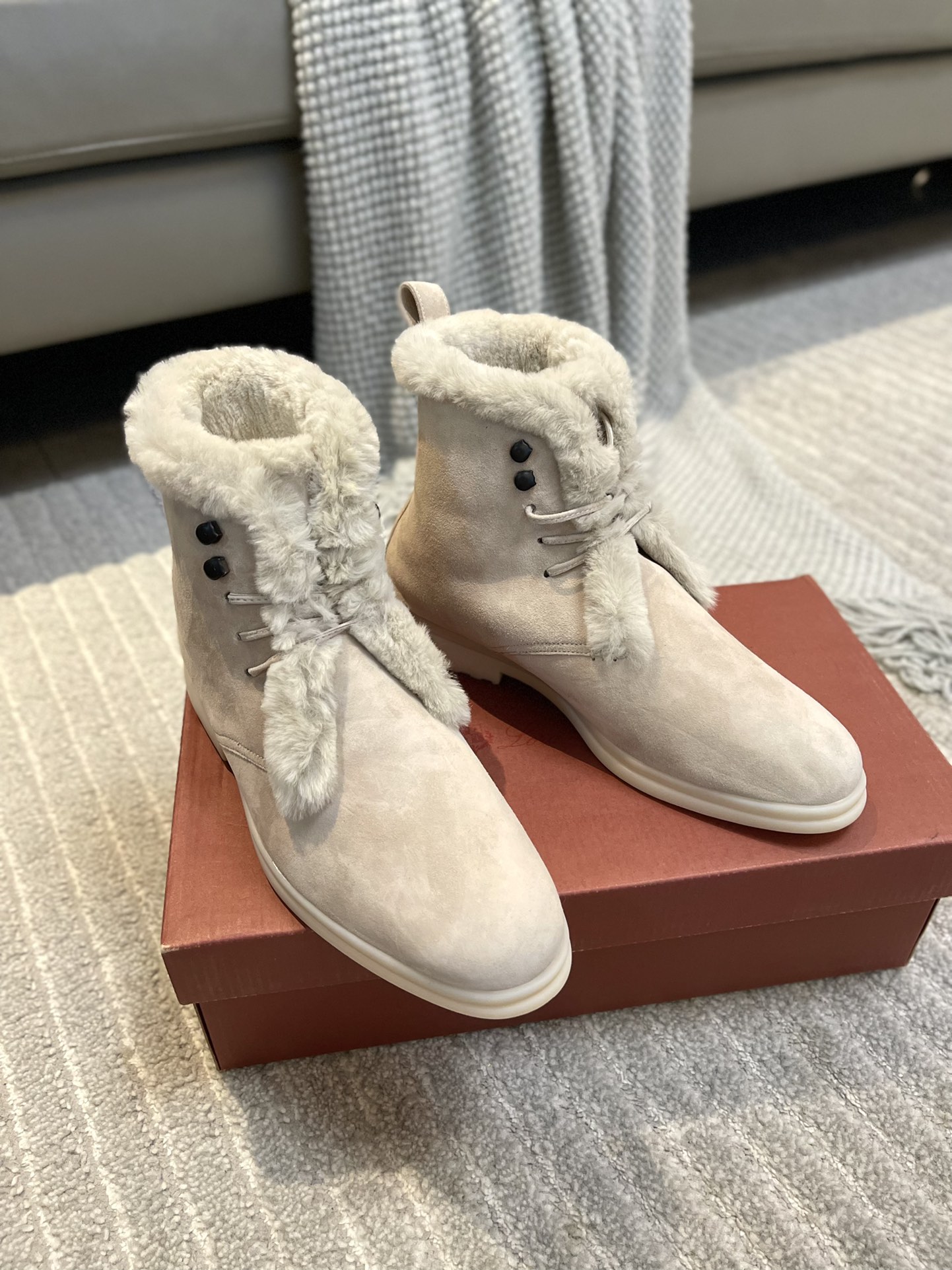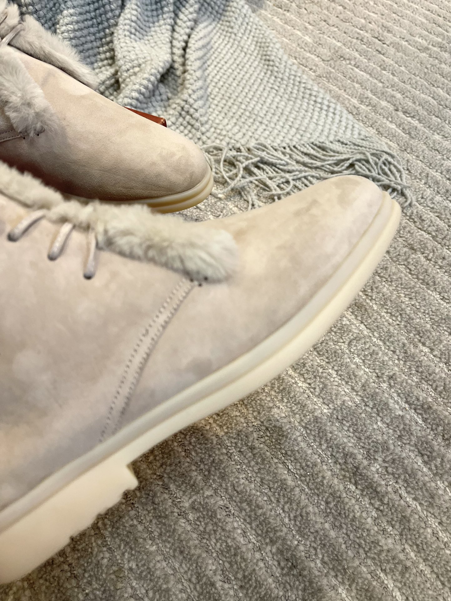这款鞋子是AAAAA 1:1 质量 (非常棒). 使用了和原版一模一样的材料. 商标部分也保持了和洛罗皮亚纳/Loro Piana一样. 图片拍摄是实物鞋子拍摄, 您所收到的实物保证和我们图片一模一样.