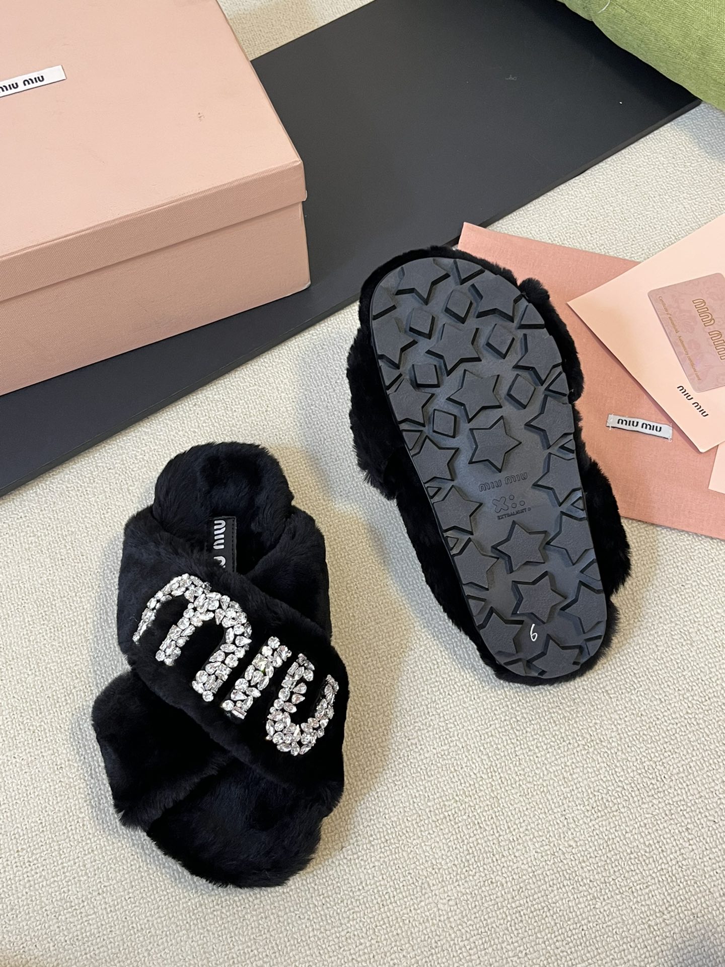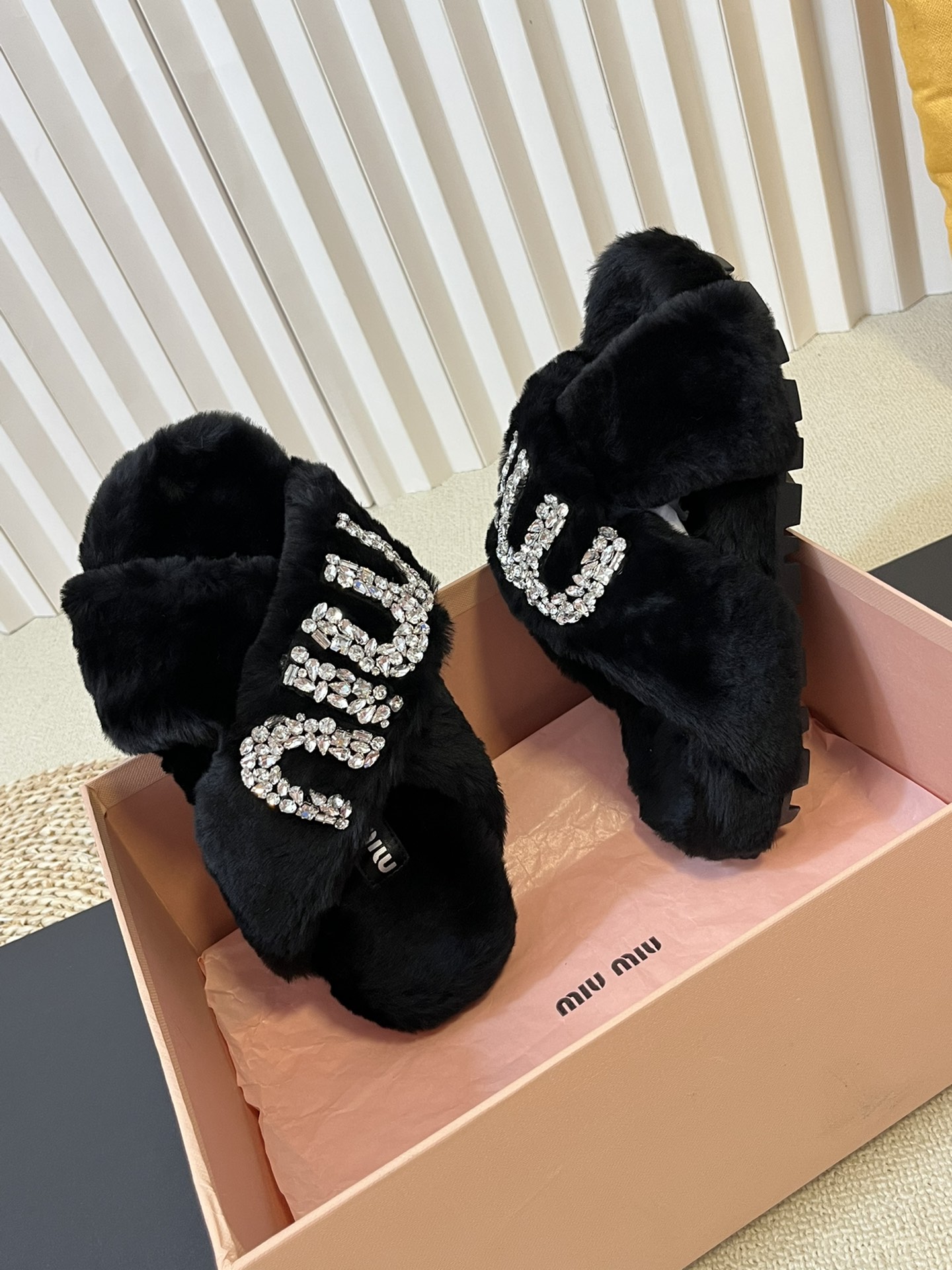 这款鞋子是AAAAA 1:1 质量 (非常棒). 使用了和原版一模一样的材料. 商标部分也保持了和缪缪/Miu Miu一样. 图片拍摄是实物鞋子拍摄, 您所收到的实物保证和我们图片一模一样.
