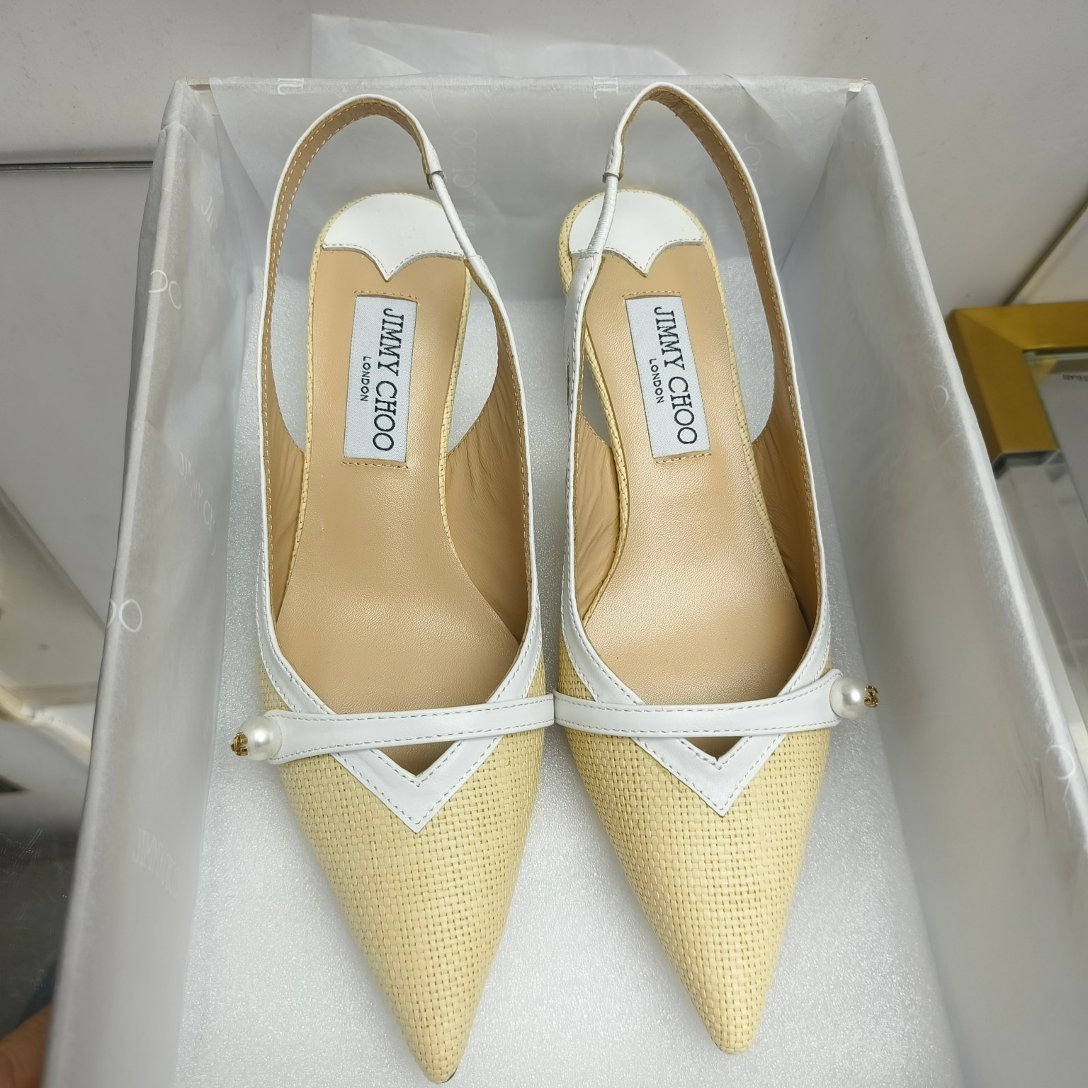 这款鞋子是AAAAA 1:1 质量 (非常棒). 使用了和原版一模一样的材料. 商标部分也保持了和吉米乔/JIMMY CHOO一样. 图片拍摄是实物鞋子拍摄, 您所收到的实物保证和我们图片一模一样.