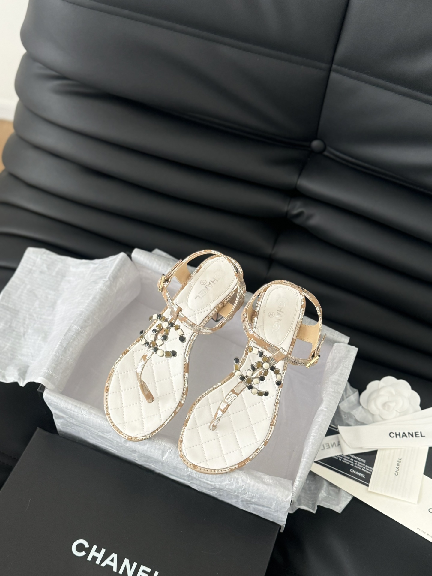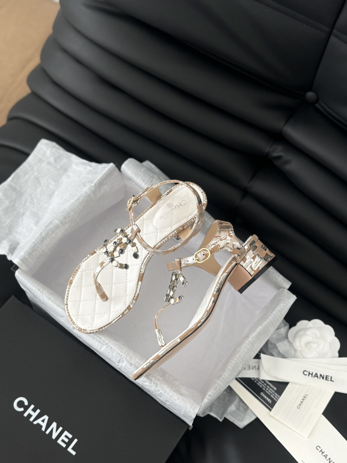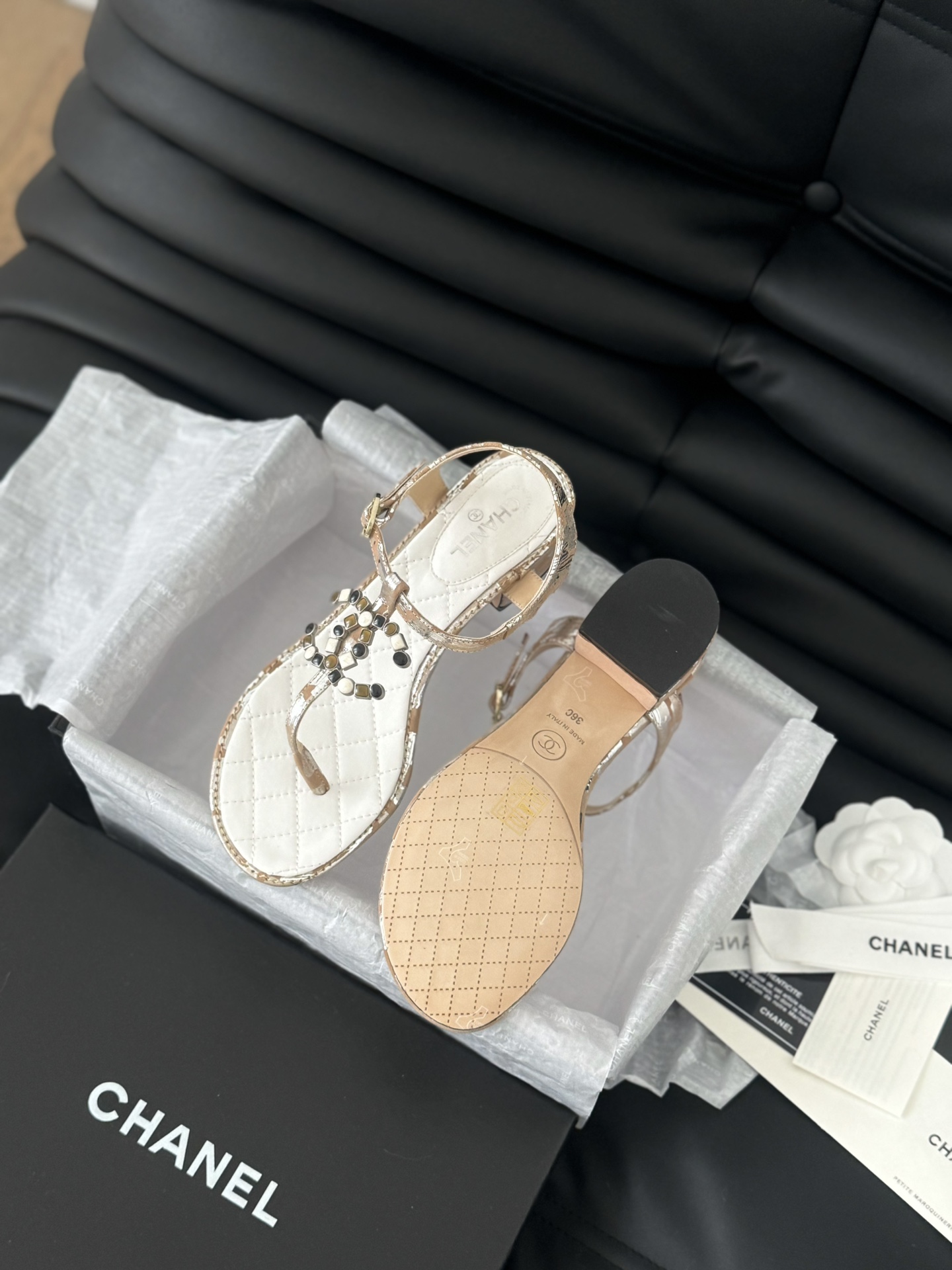 这款鞋子是AAAAA 1:1 质量 (非常棒). 使用了和原版一模一样的材料. 商标部分也保持了和香奈儿/Chanel一样. 图片拍摄是实物鞋子拍摄, 您所收到的实物保证和我们图片一模一样.