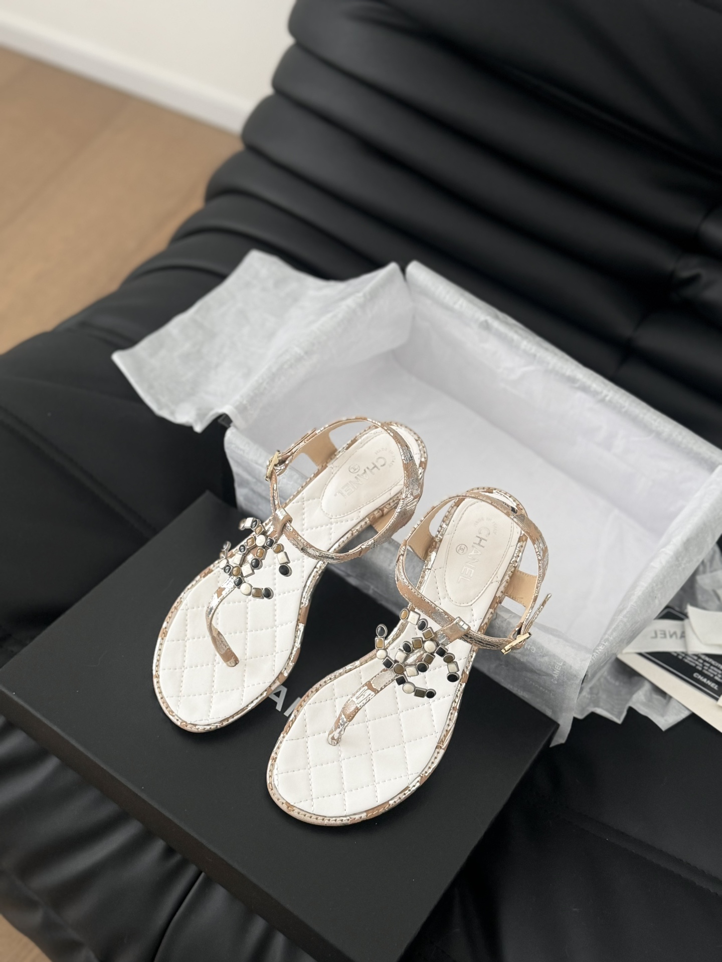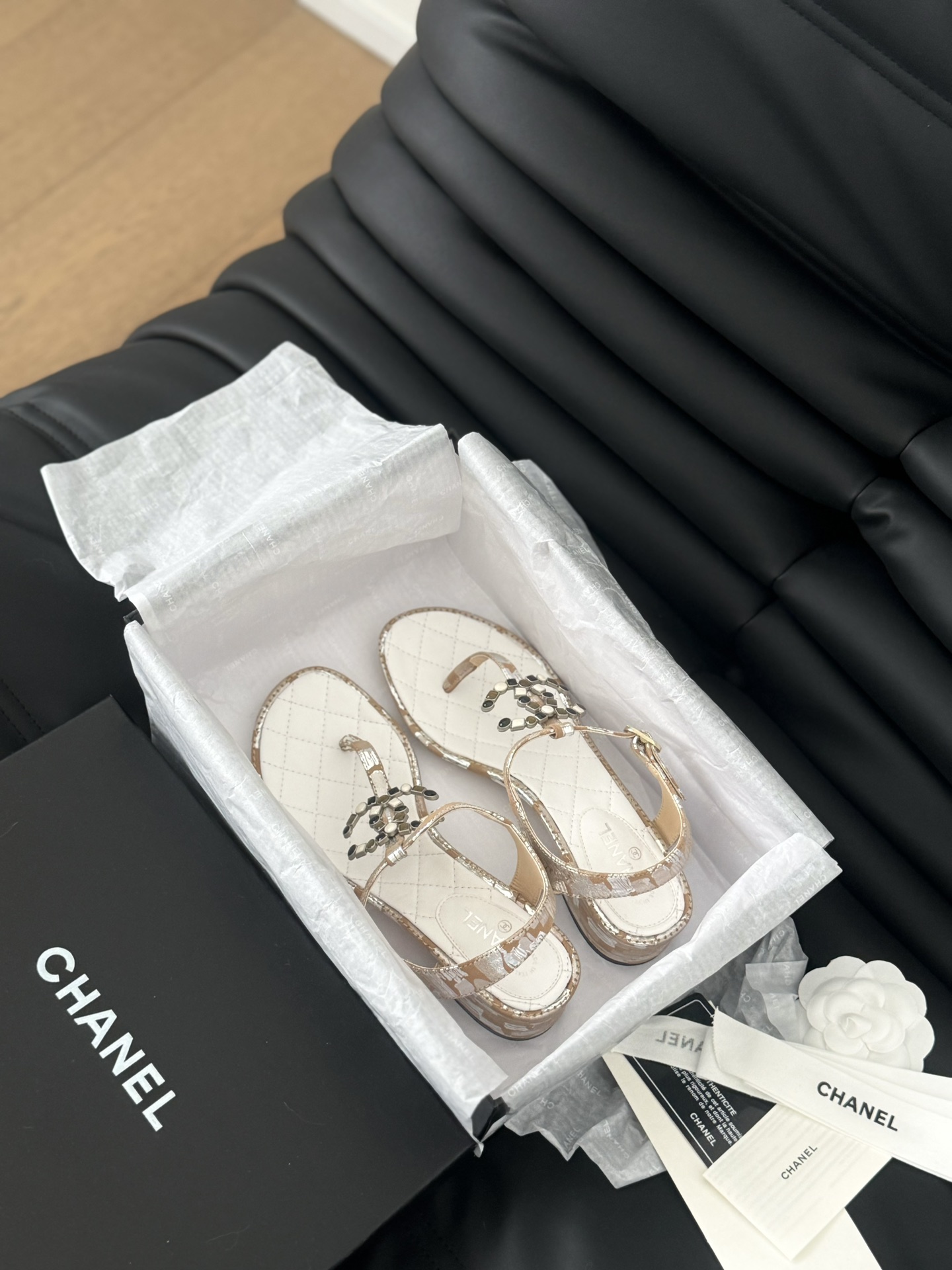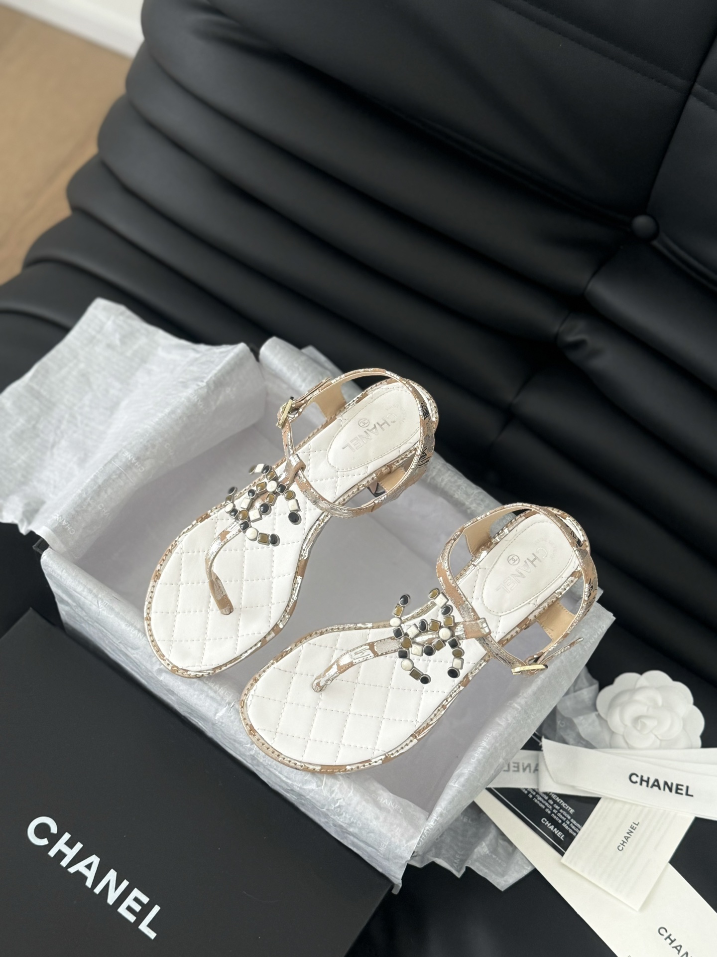 这款鞋子是AAAAA 1:1 质量 (非常棒). 使用了和原版一模一样的材料. 商标部分也保持了和香奈儿/Chanel一样. 图片拍摄是实物鞋子拍摄, 您所收到的实物保证和我们图片一模一样.