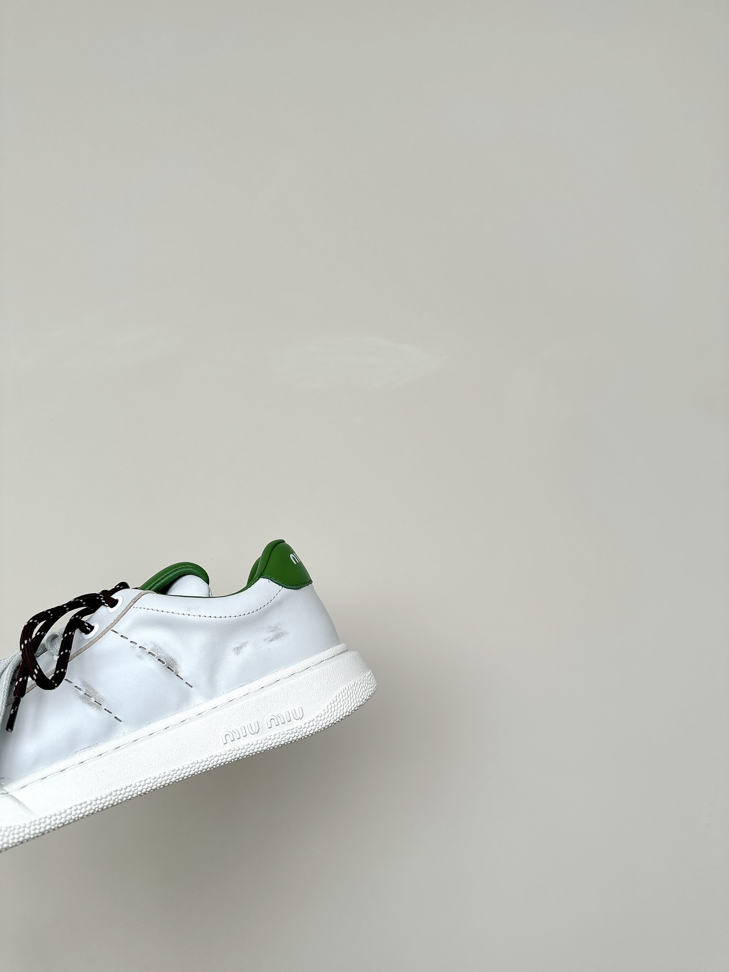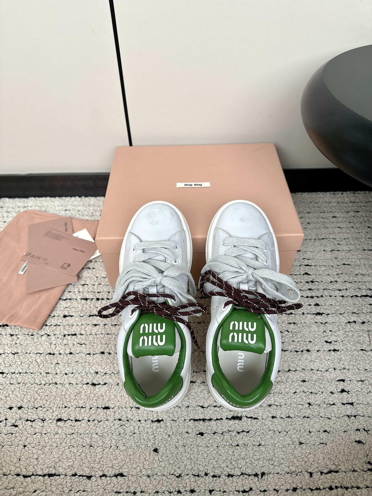 这款鞋子是AAAAA 1:1 质量 (非常棒). 使用了和原版一模一样的材料. 商标部分也保持了和缪缪/Miu Miu一样. 图片拍摄是实物鞋子拍摄, 您所收到的实物保证和我们图片一模一样.