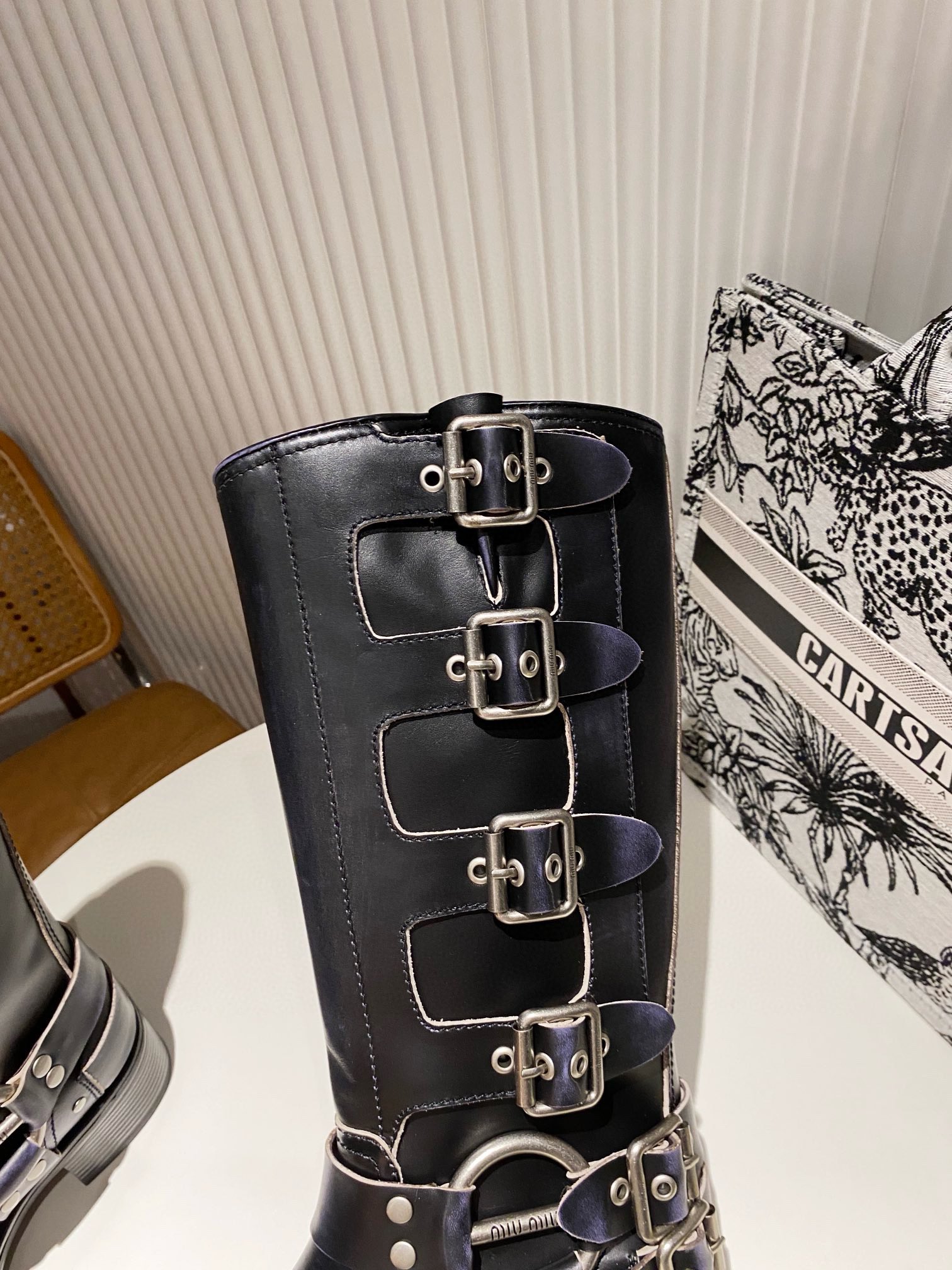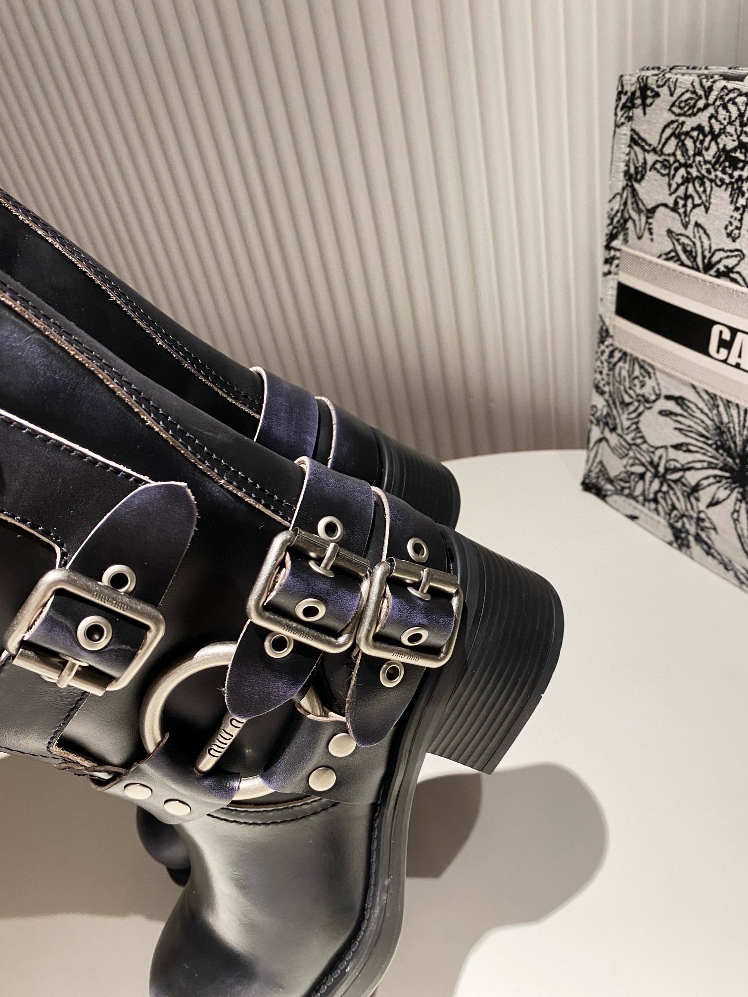 这款鞋子是AAAAA 1:1 质量 (非常棒). 使用了和原版一模一样的材料. 商标部分也保持了和缪缪/Miu Miu一样. 图片拍摄是实物鞋子拍摄, 您所收到的实物保证和我们图片一模一样.