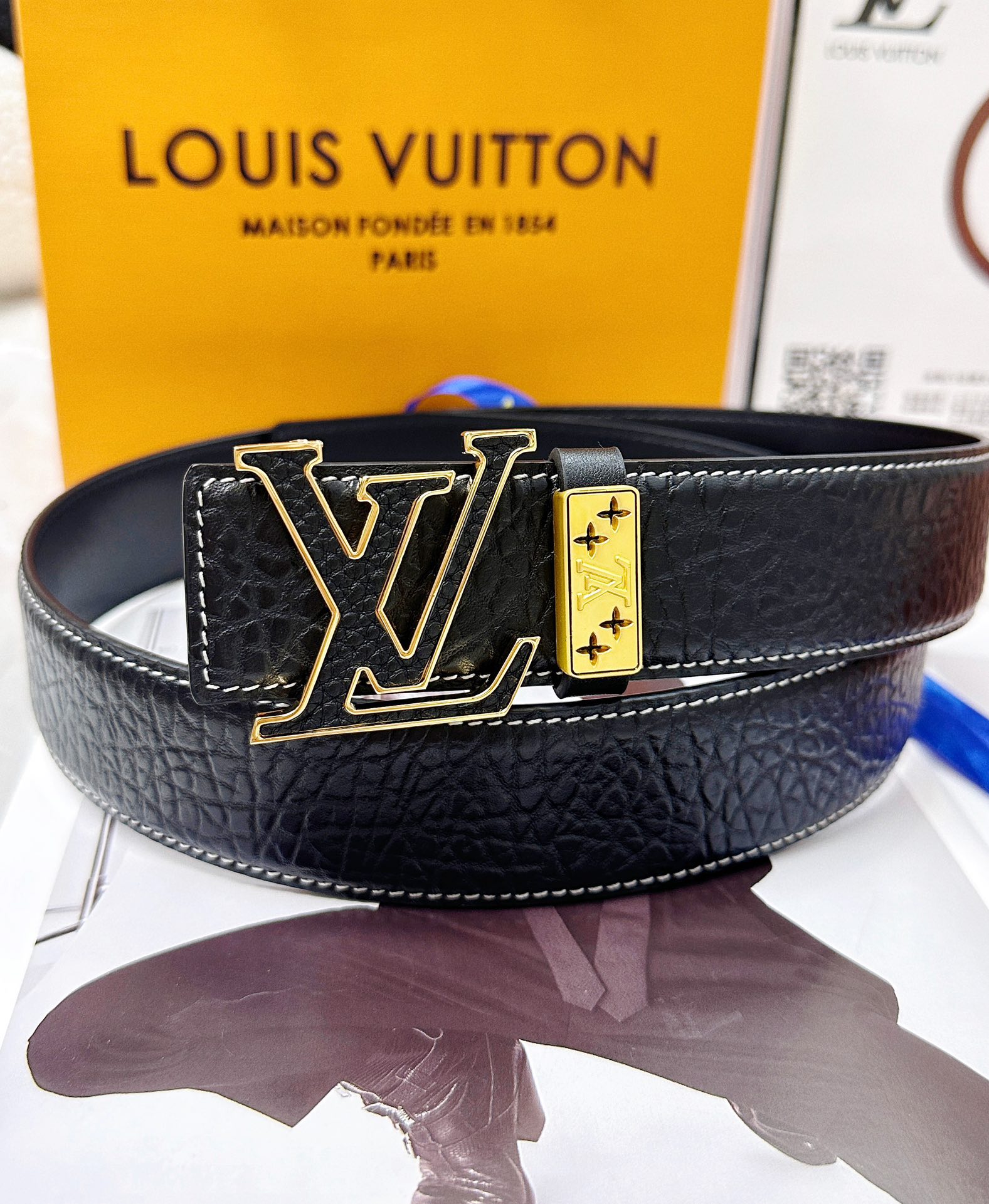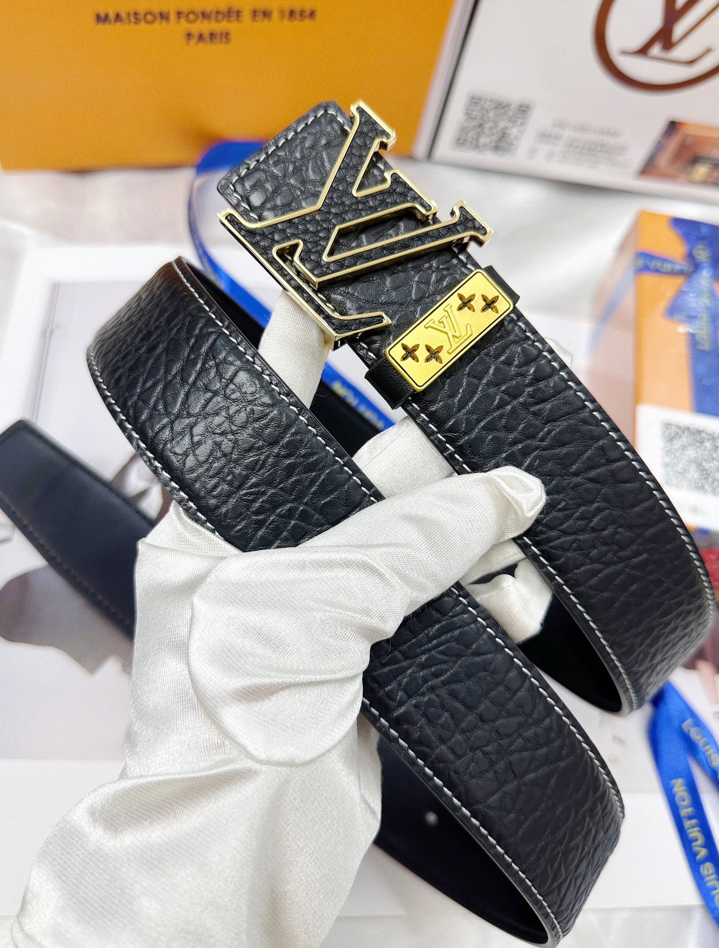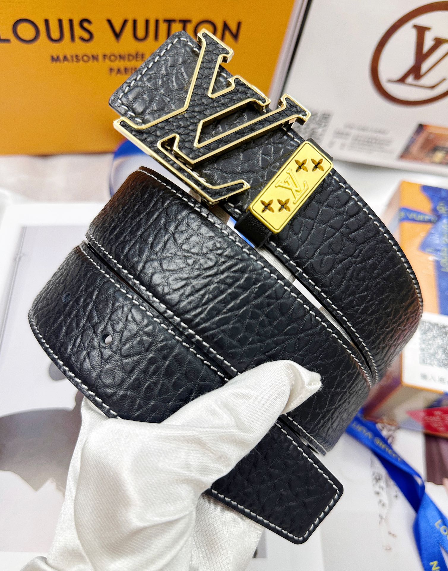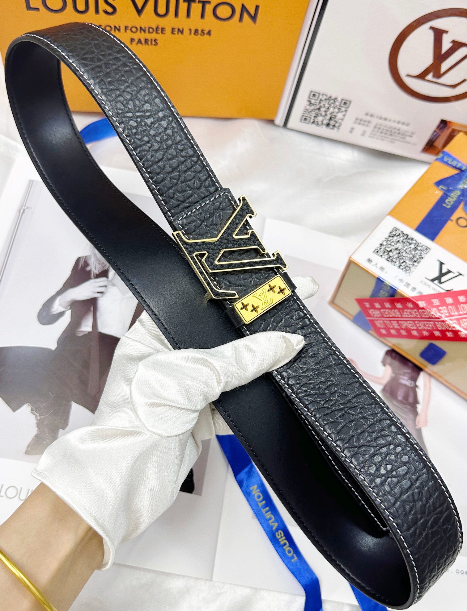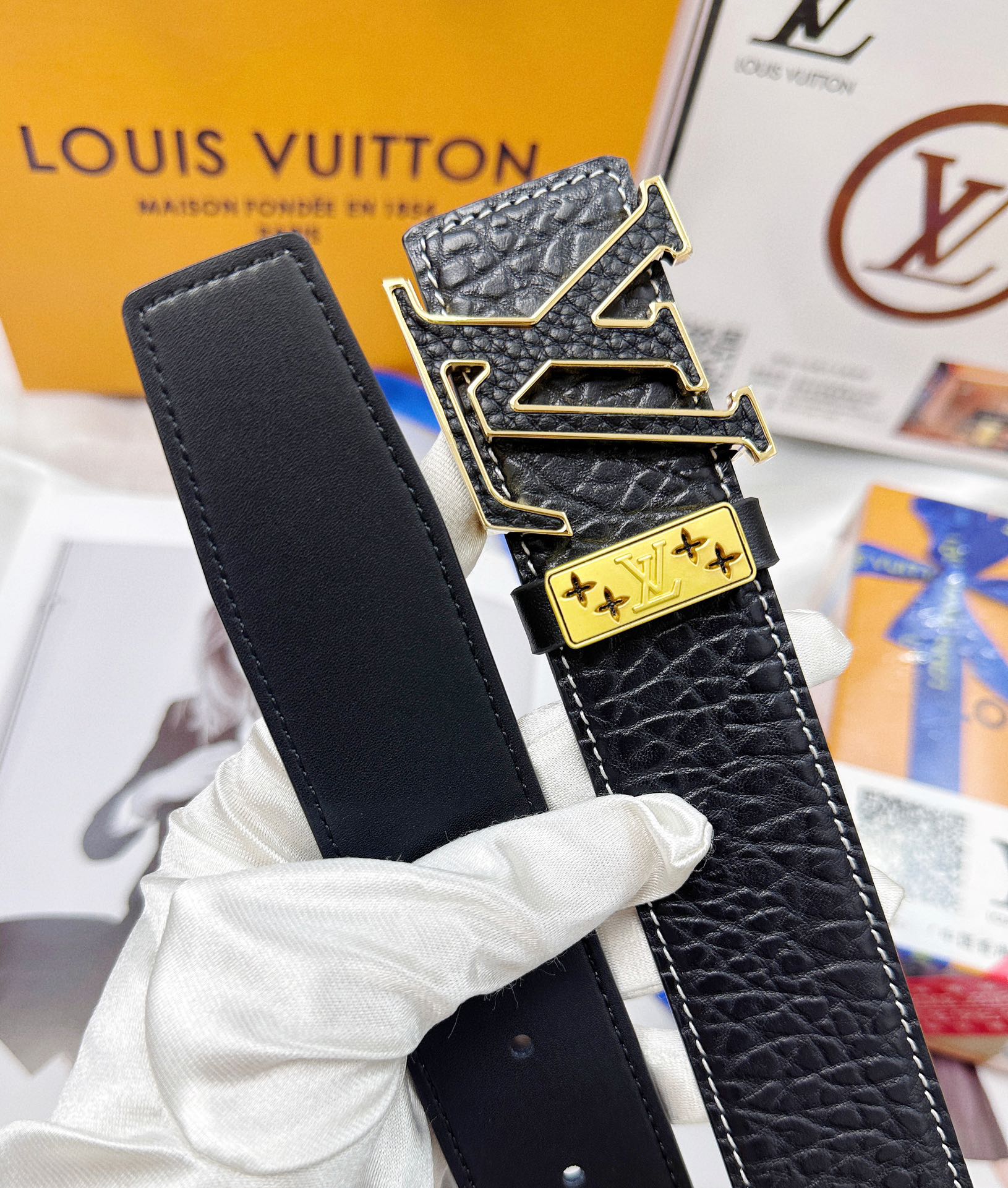 这款皮带是AAAAA 1:1 质量 (非常棒). 使用了和原版一模一样的材料. 商标部分也保持了和路易威登/Louis Vuitton一样. 图片拍摄是实物皮带拍摄, 您所收到的实物保证和我们图片一模一样.