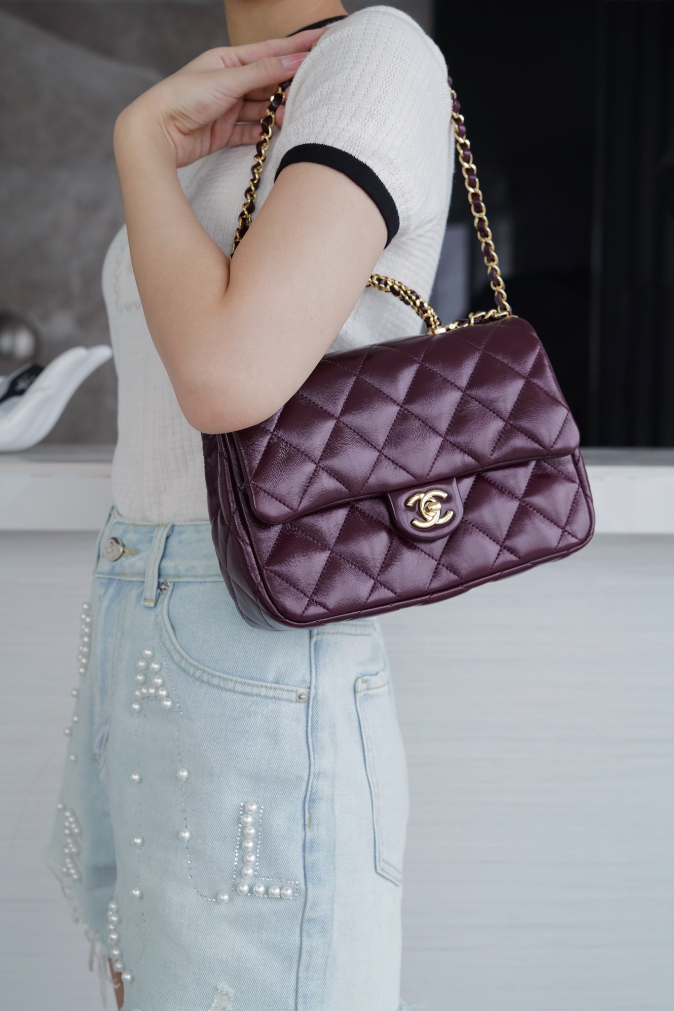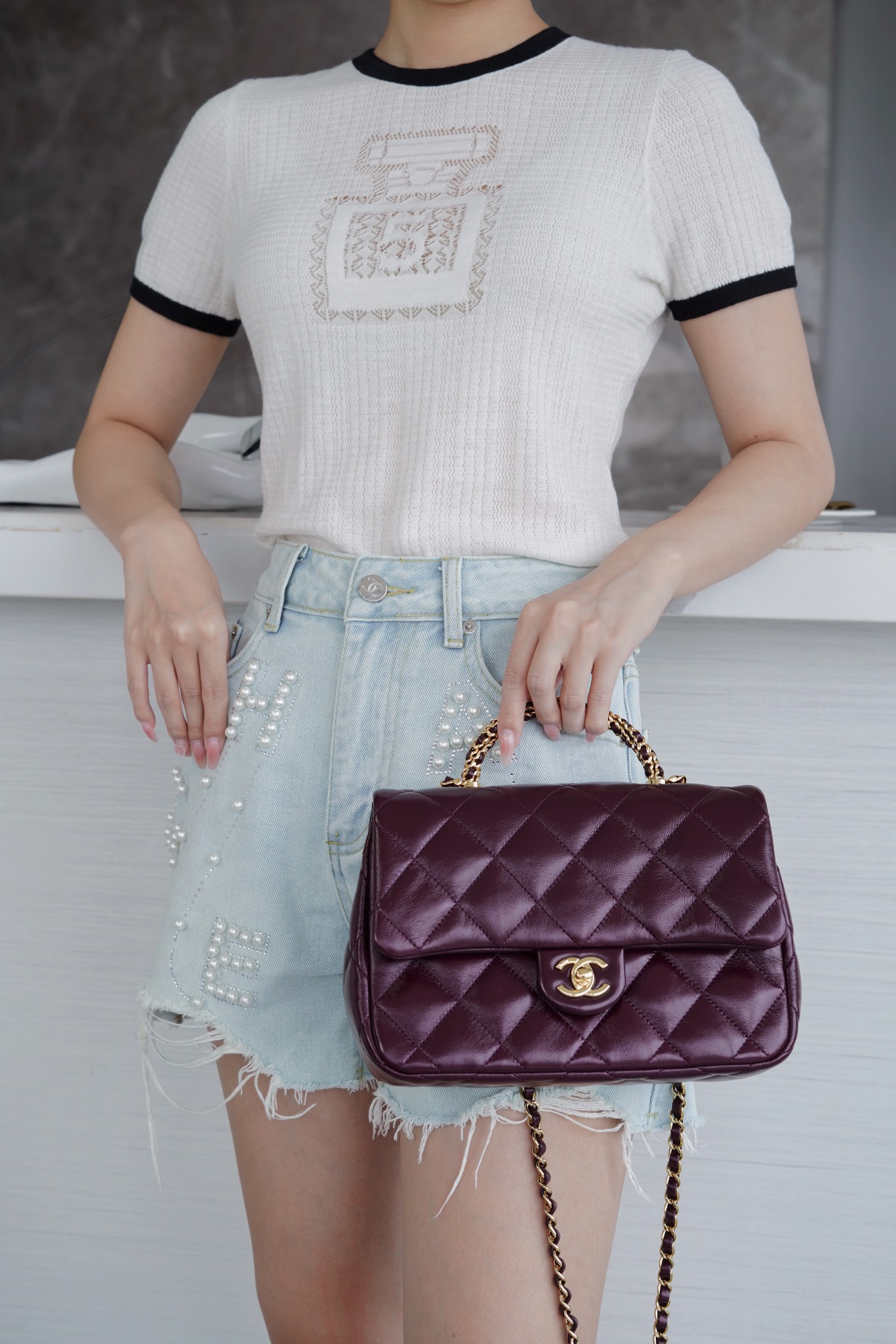 这款包包是AAAAA 1:1 质量 (非常棒). 使用了和原版一模一样的材料. 商标部分也保持了和香奈儿/Chanel一样. 图片拍摄是实物包包拍摄, 您所收到的实物保证和我们图片一模一样.