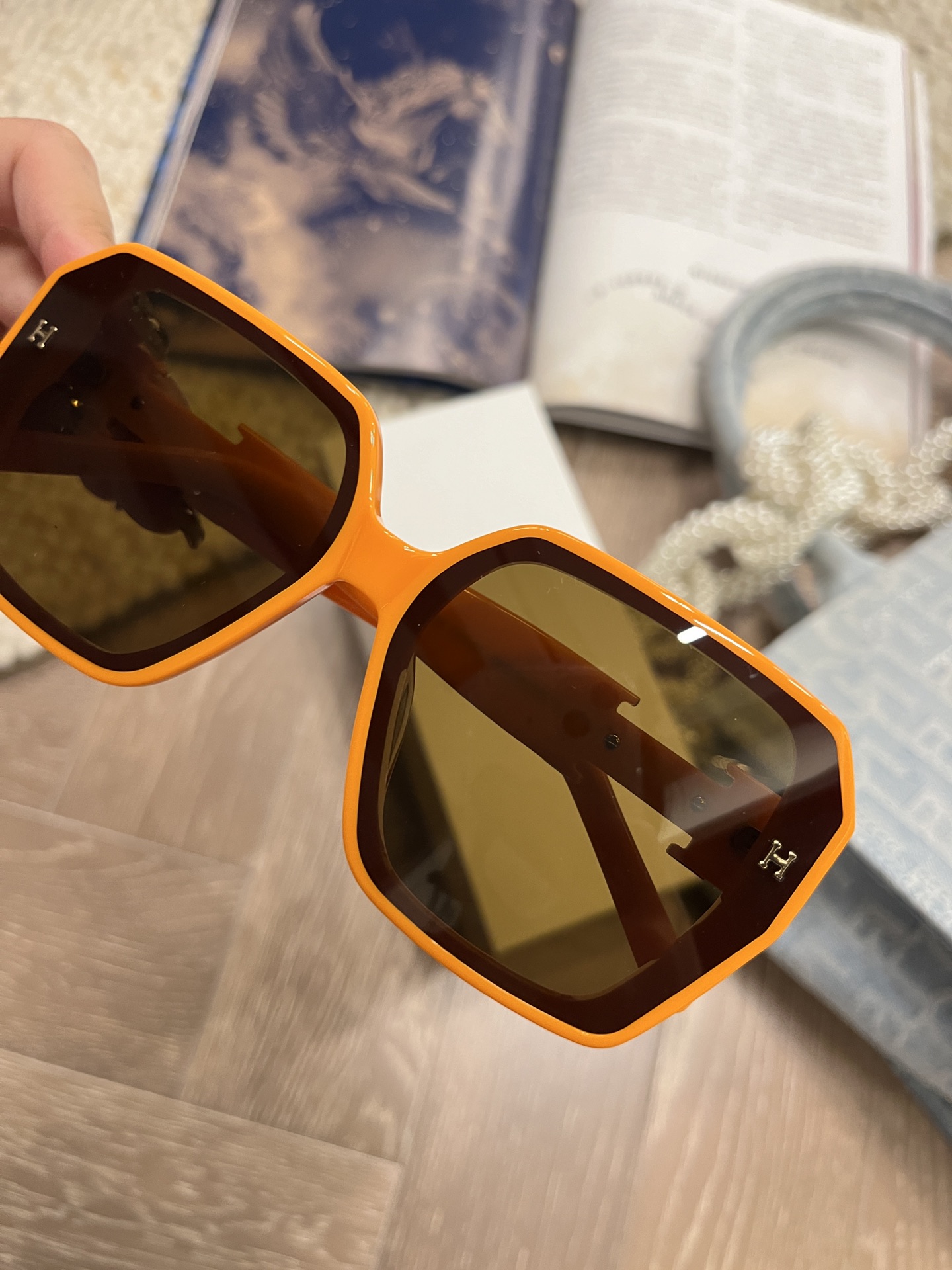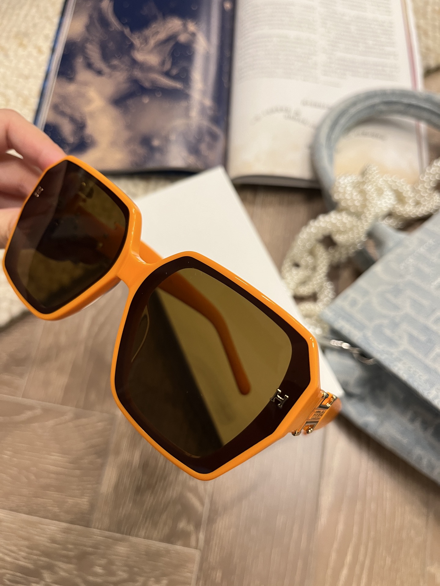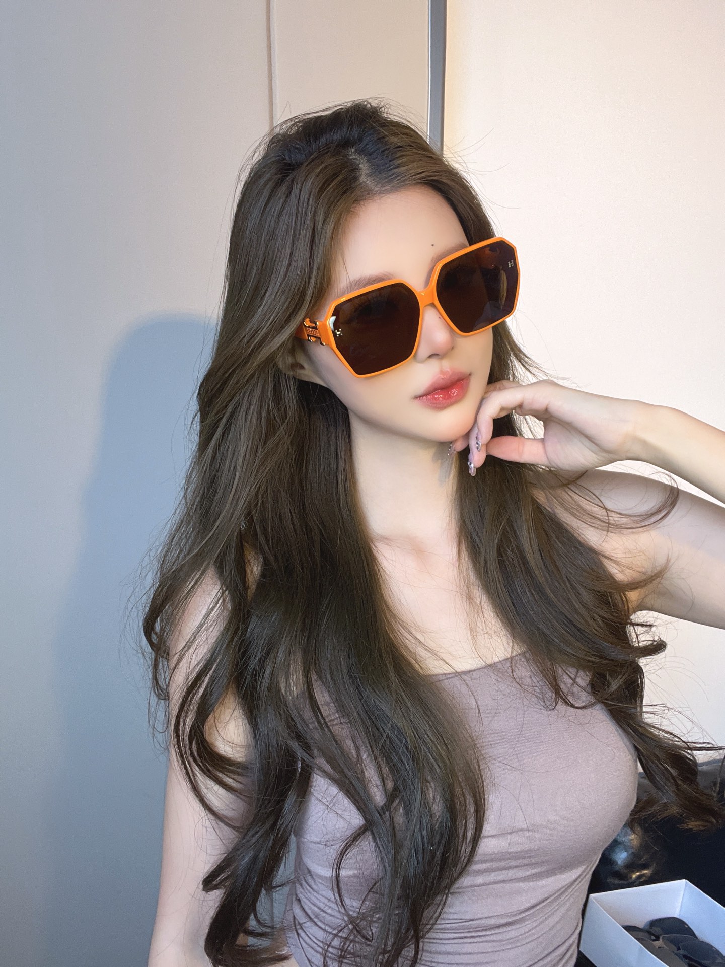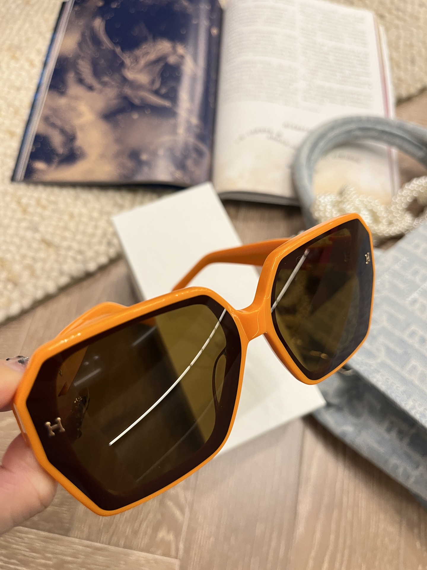 这款太阳眼镜是AAAAA 1:1 质量 (非常棒). 使用了和原版一模一样的材料. 商标部分也保持了和一样. 图片拍摄是实物太阳眼镜拍摄, 您所收到的实物保证和我们图片一模一样.