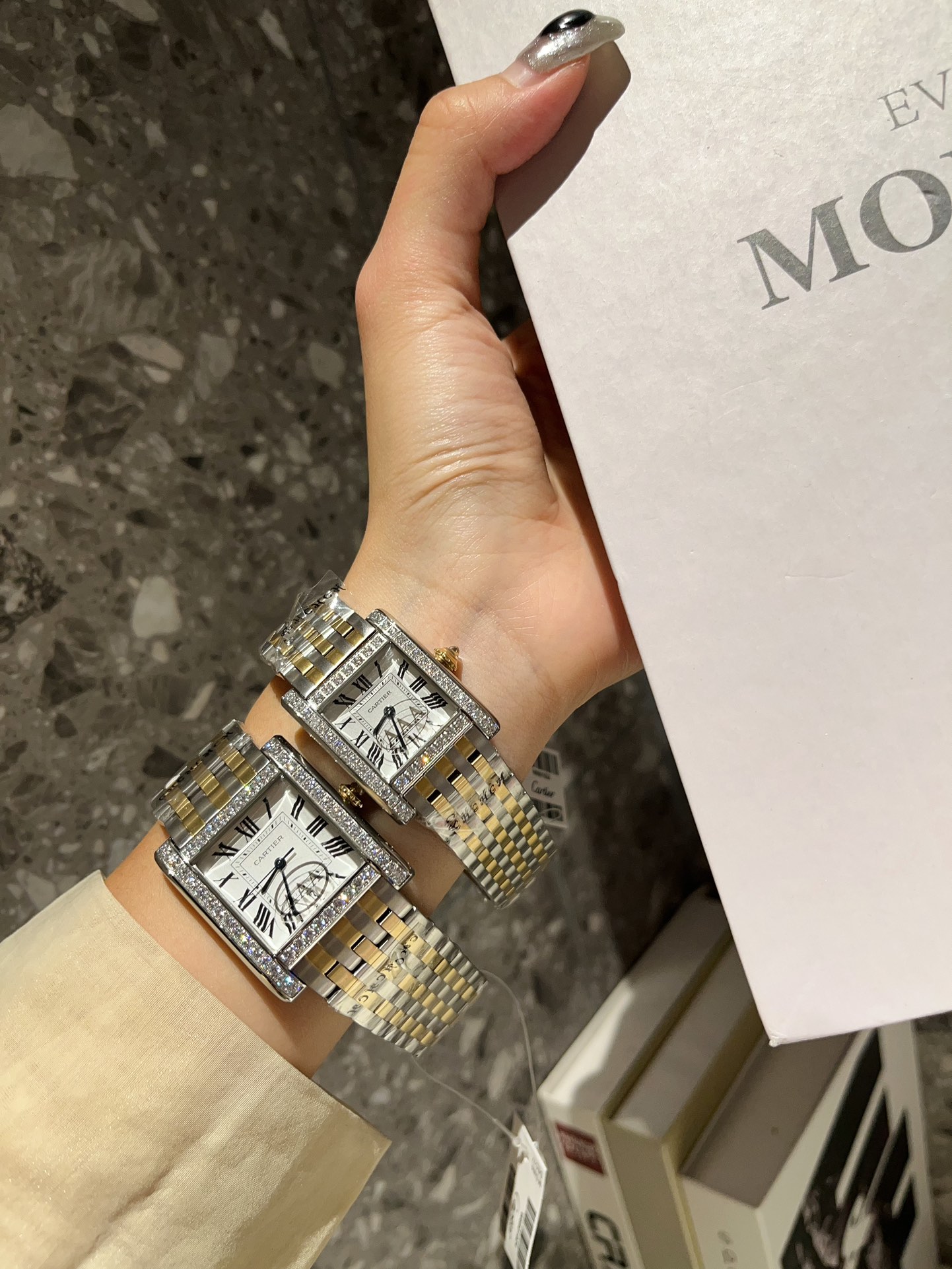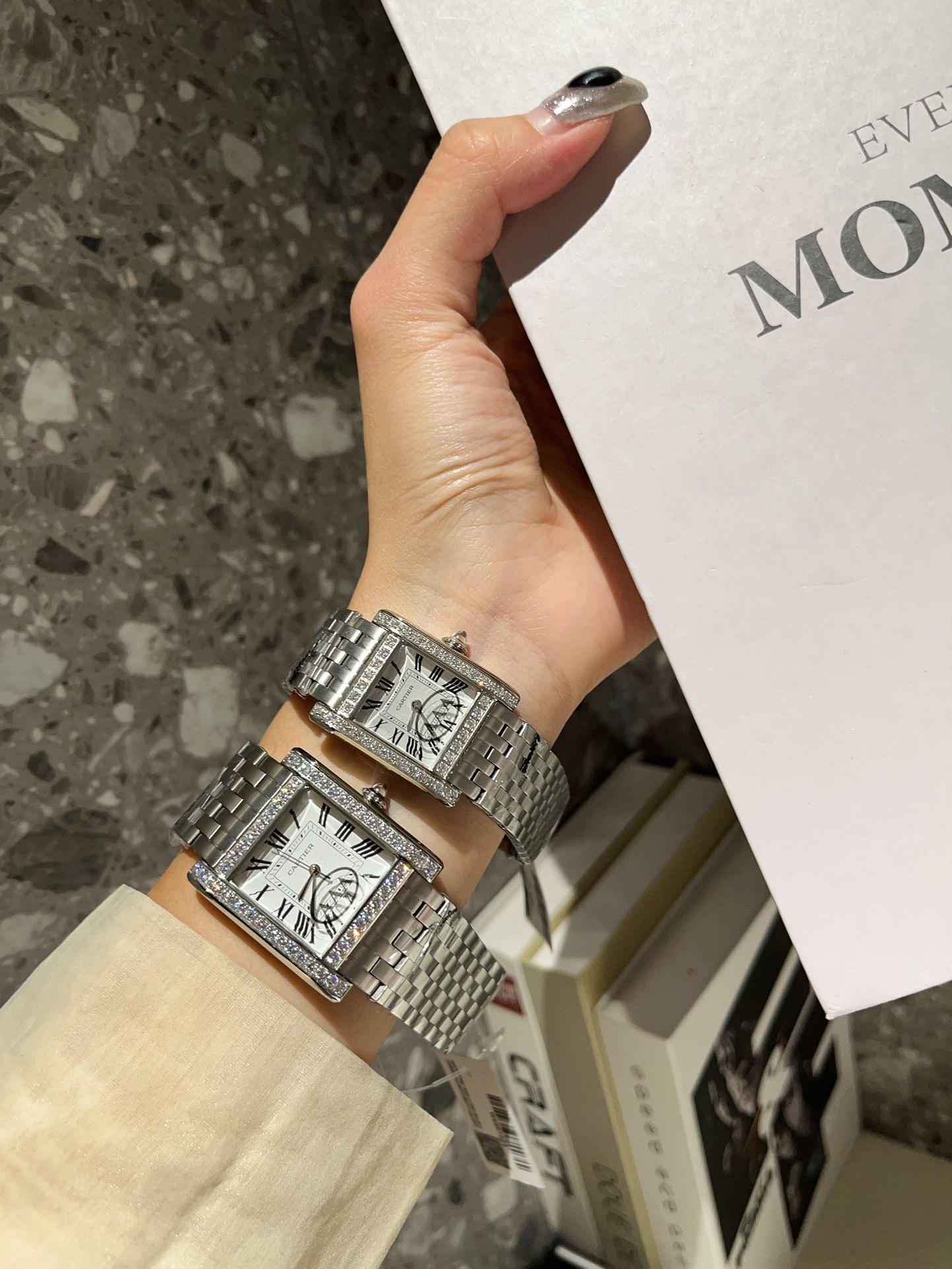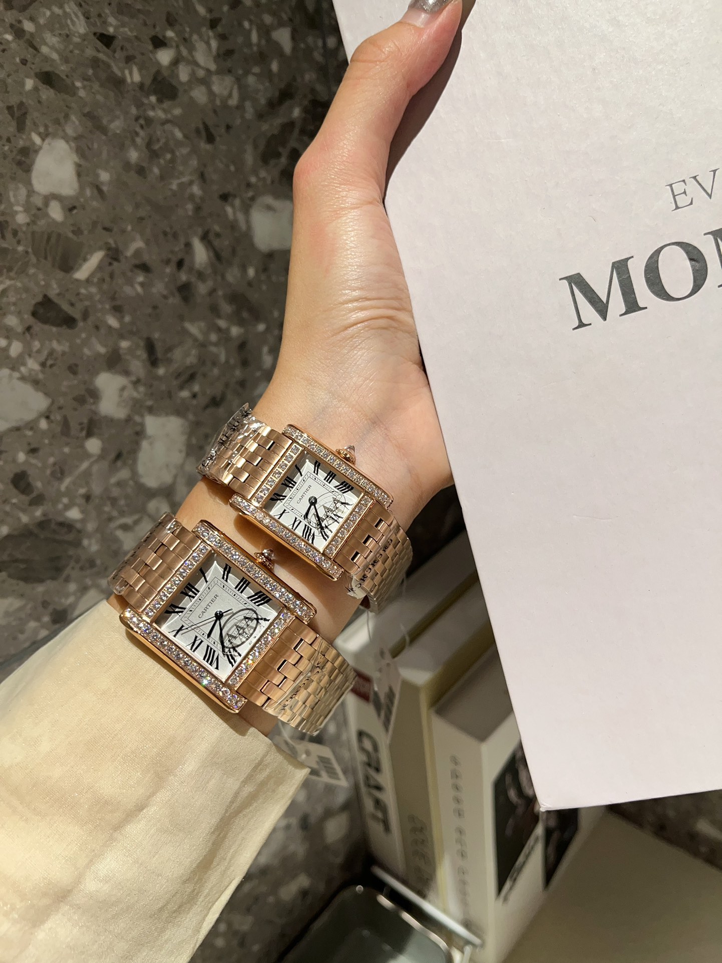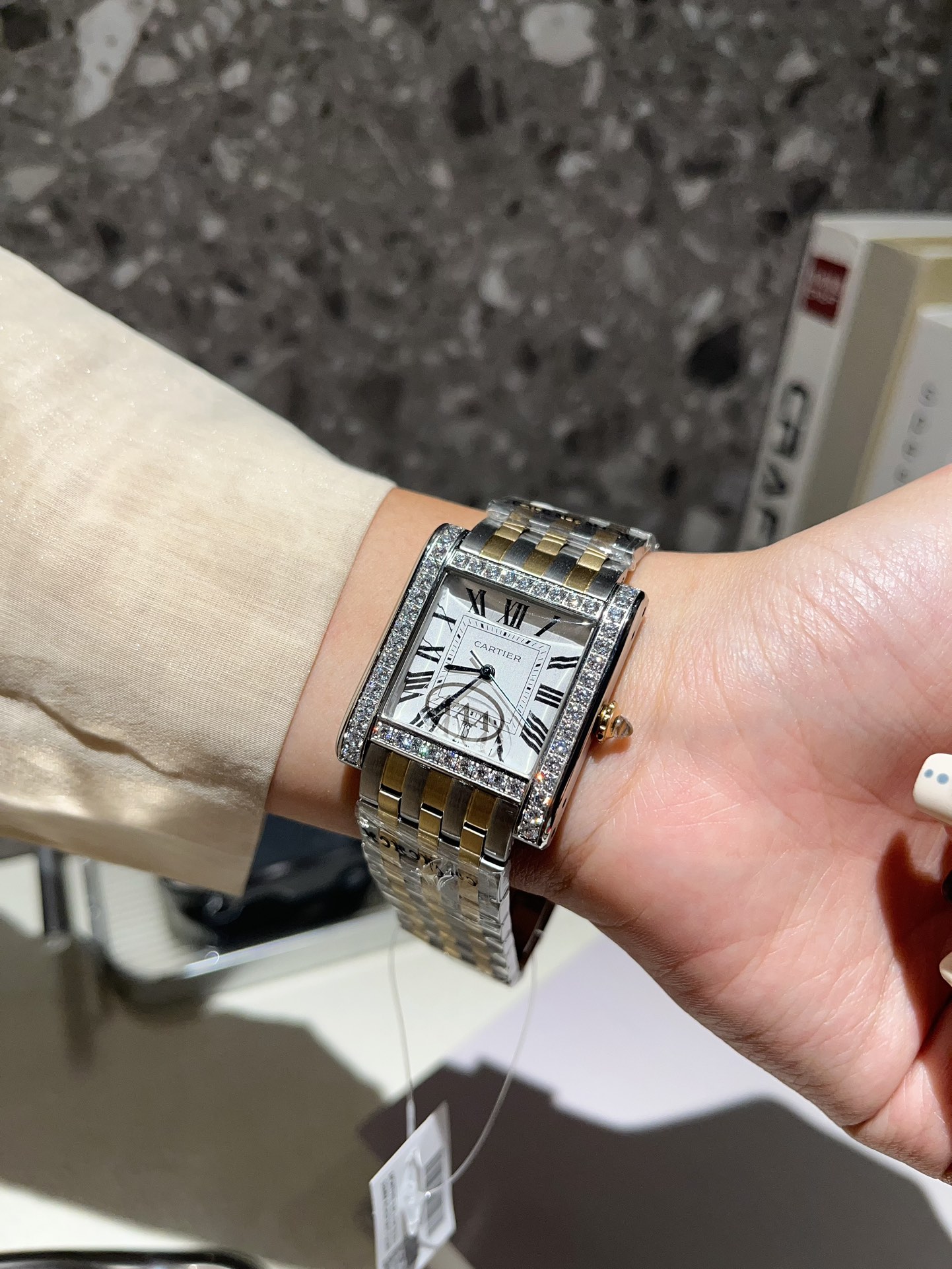 这款手表是AAAAA 1:1 质量 (非常棒). 使用了和原版一模一样的材料. 商标部分也保持了和卡地亚/Cartier一样. 图片拍摄是实物手表拍摄, 您所收到的实物保证和我们图片一模一样.