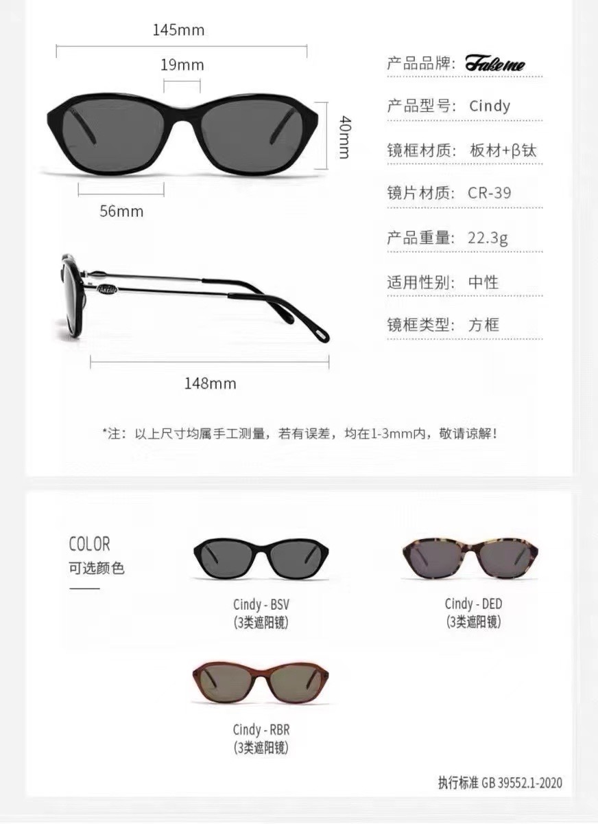 这款太阳眼镜是AAAAA 1:1 质量 (非常棒). 使用了和原版一模一样的材料. 商标部分也保持了和Fakeme一样. 图片拍摄是实物太阳眼镜拍摄, 您所收到的实物保证和我们图片一模一样.