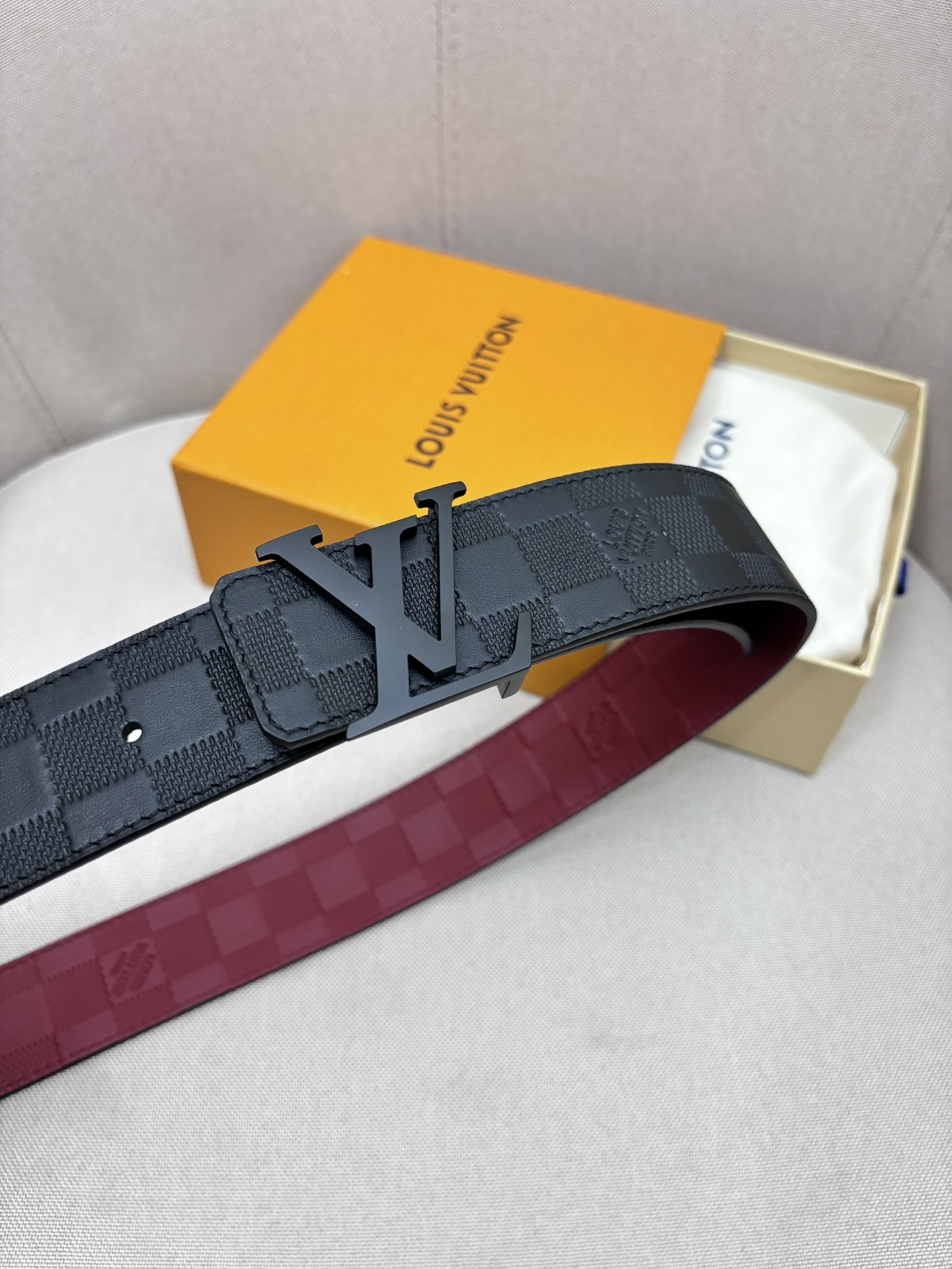 这款皮带是AAAAA 1:1 质量 (非常棒). 使用了和原版一模一样的材料. 商标部分也保持了和路易威登/Louis Vuitton一样. 图片拍摄是实物皮带拍摄, 您所收到的实物保证和我们图片一模一样.