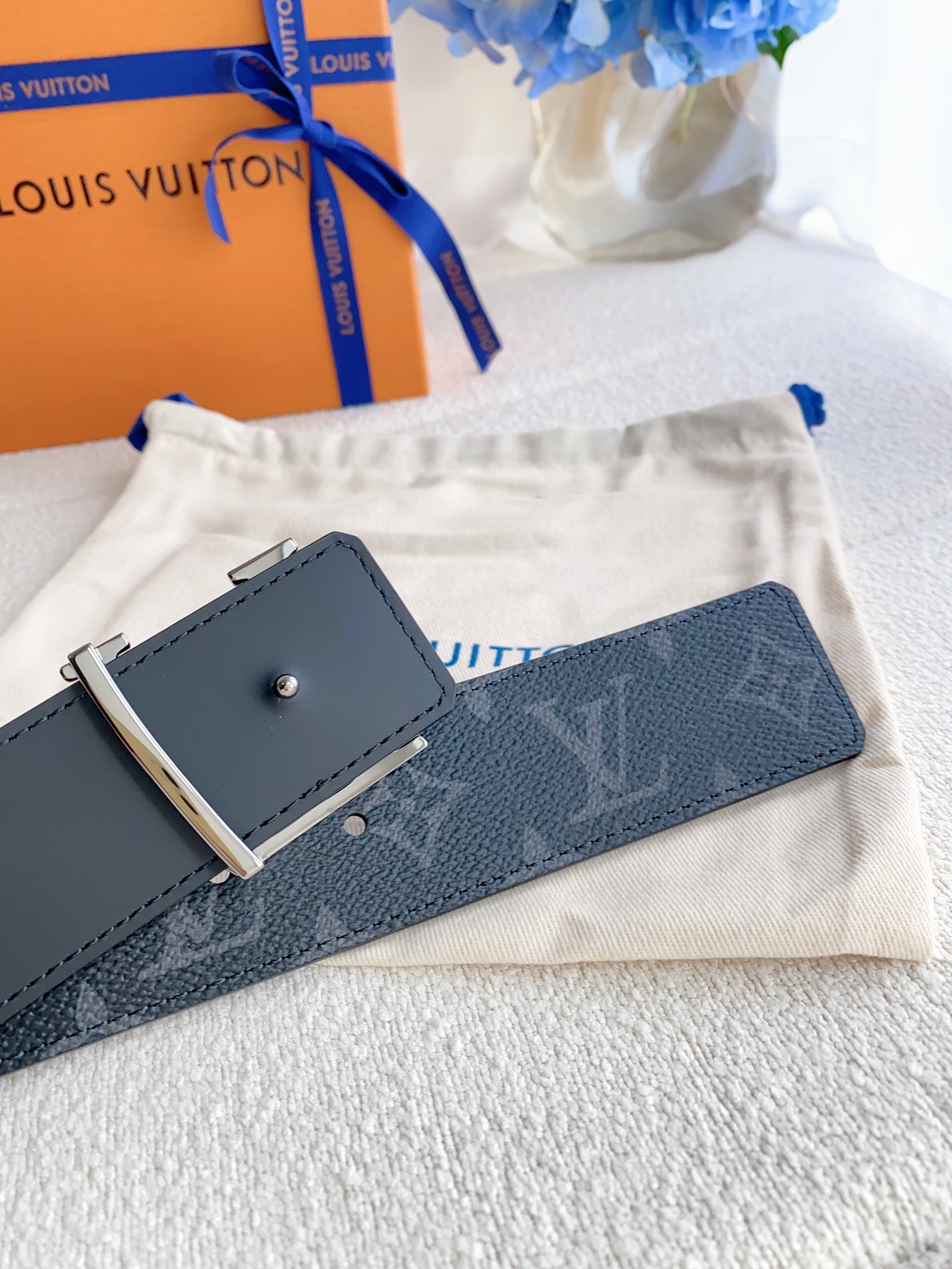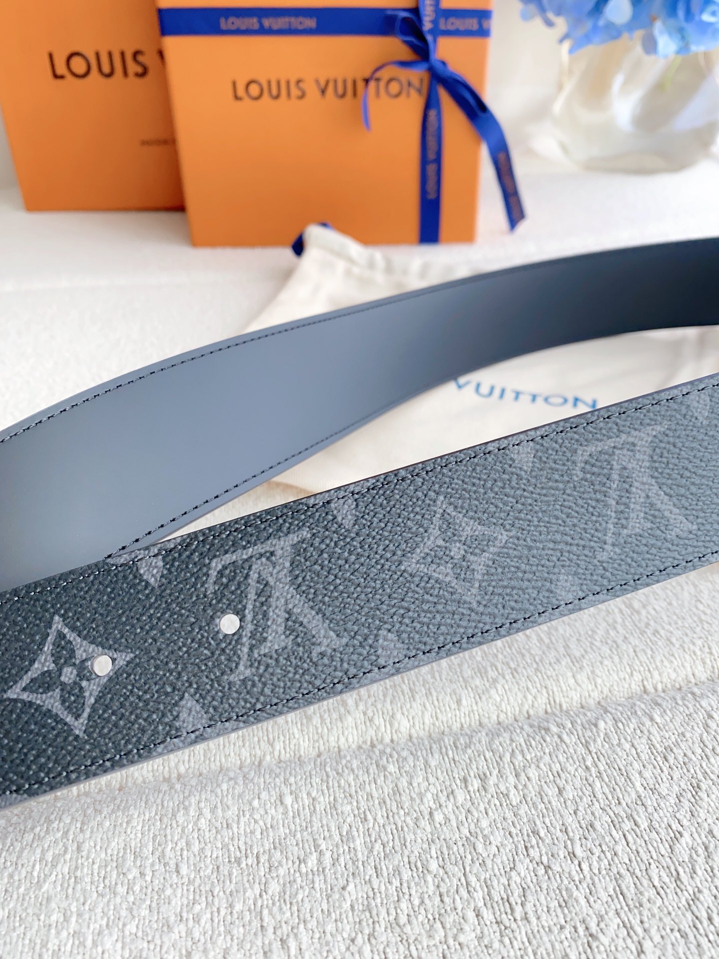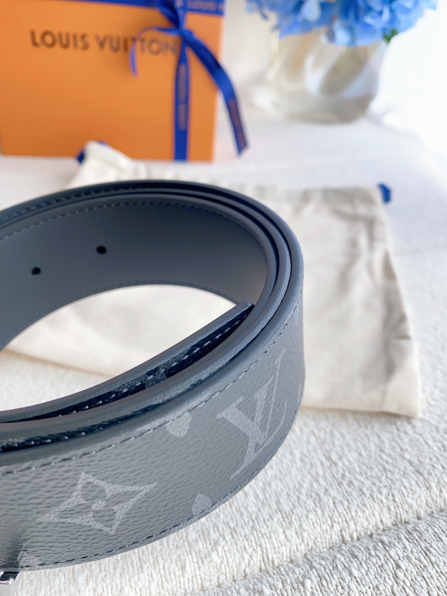 这款皮带是AAAAA 1:1 质量 (非常棒). 使用了和原版一模一样的材料. 商标部分也保持了和路易威登/Louis Vuitton一样. 图片拍摄是实物皮带拍摄, 您所收到的实物保证和我们图片一模一样.