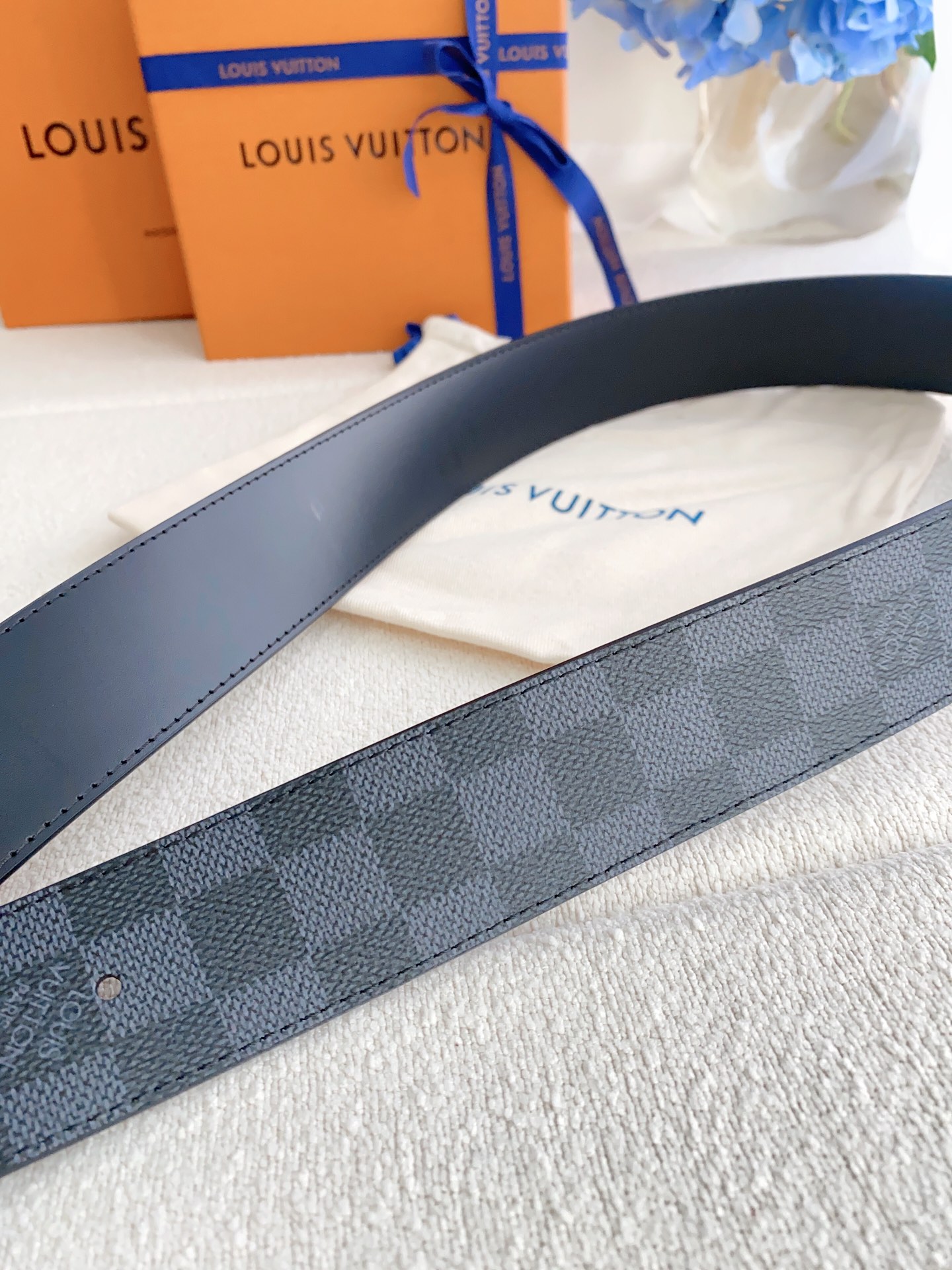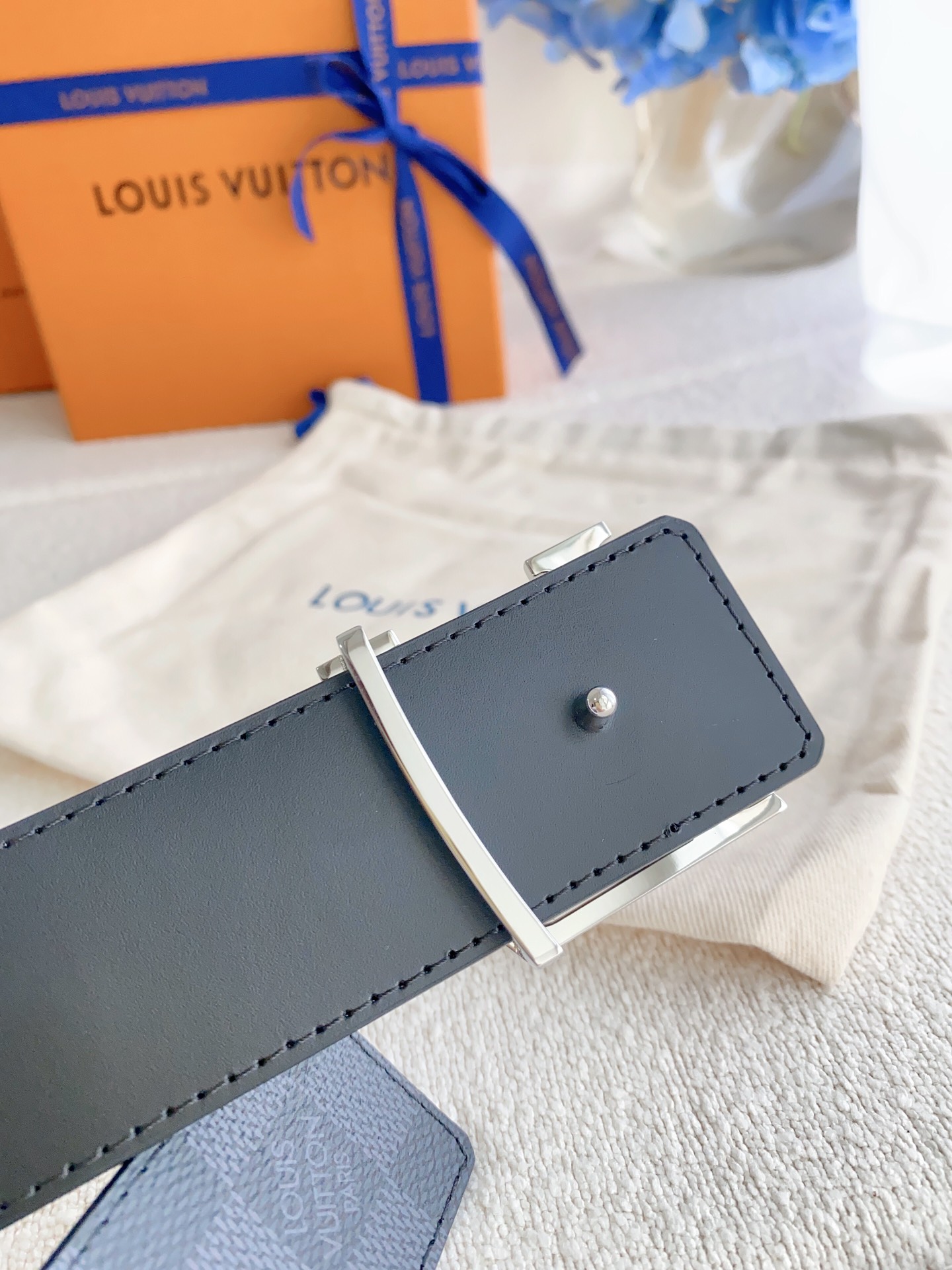 这款皮带是AAAAA 1:1 质量 (非常棒). 使用了和原版一模一样的材料. 商标部分也保持了和路易威登/Louis Vuitton一样. 图片拍摄是实物皮带拍摄, 您所收到的实物保证和我们图片一模一样.