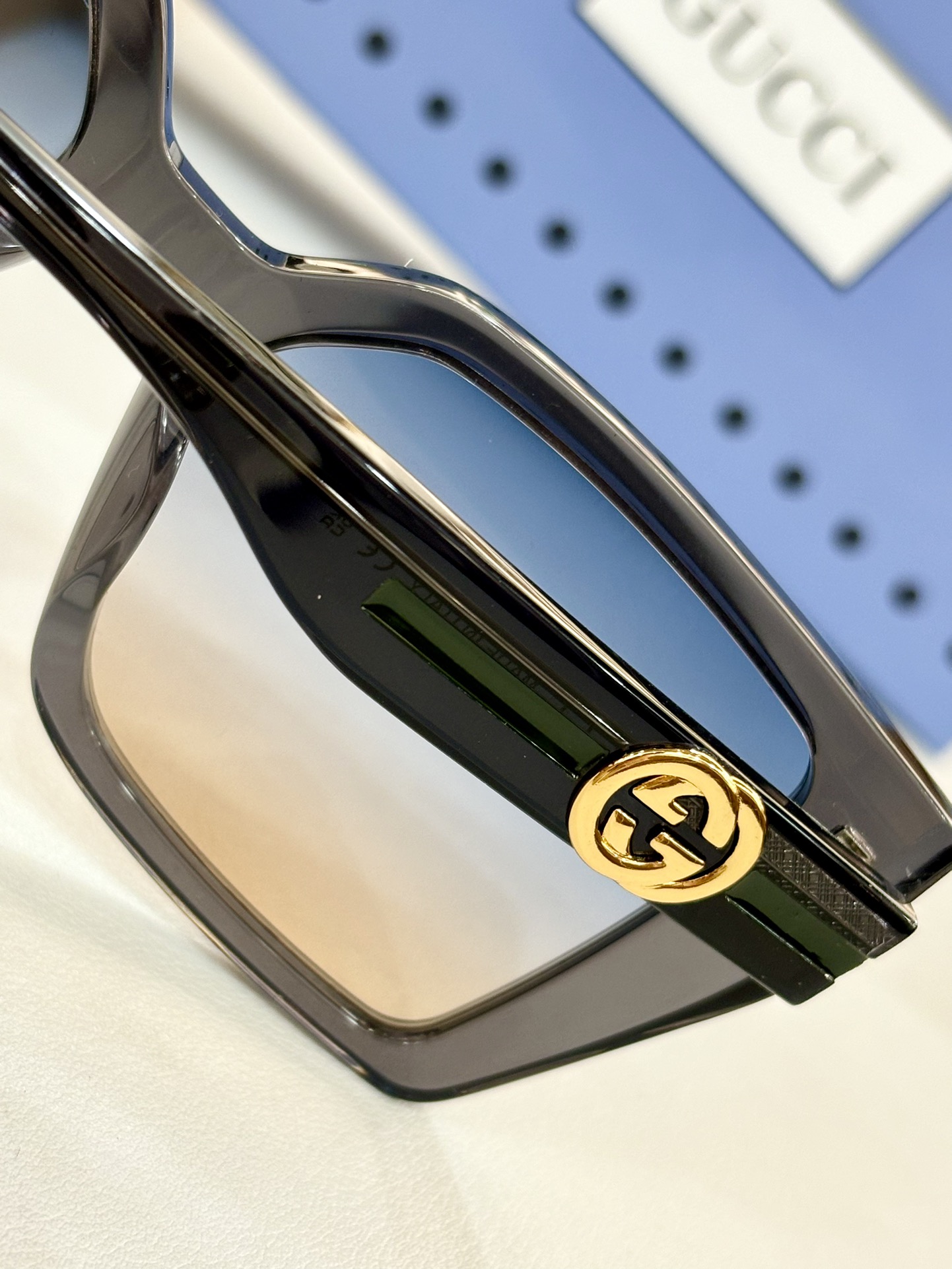 这款太阳眼镜是AAAAA 1:1 质量 (非常棒). 使用了和原版一模一样的材料. 商标部分也保持了和古奇/Gucci一样. 图片拍摄是实物太阳眼镜拍摄, 您所收到的实物保证和我们图片一模一样.