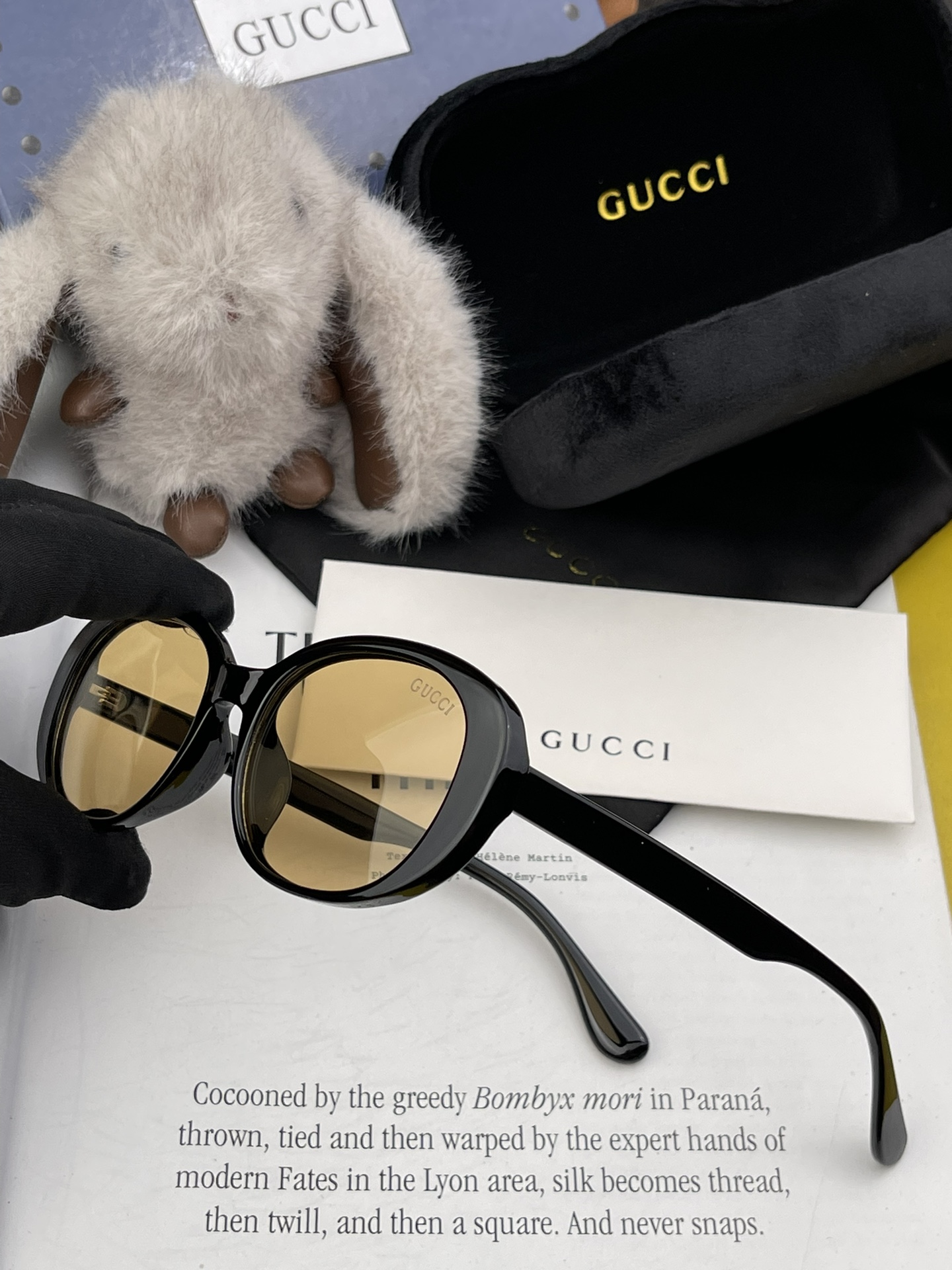 这款太阳眼镜是AAAAA 1:1 质量 (非常棒). 使用了和原版一模一样的材料. 商标部分也保持了和古奇/Gucci一样. 图片拍摄是实物太阳眼镜拍摄, 您所收到的实物保证和我们图片一模一样.
