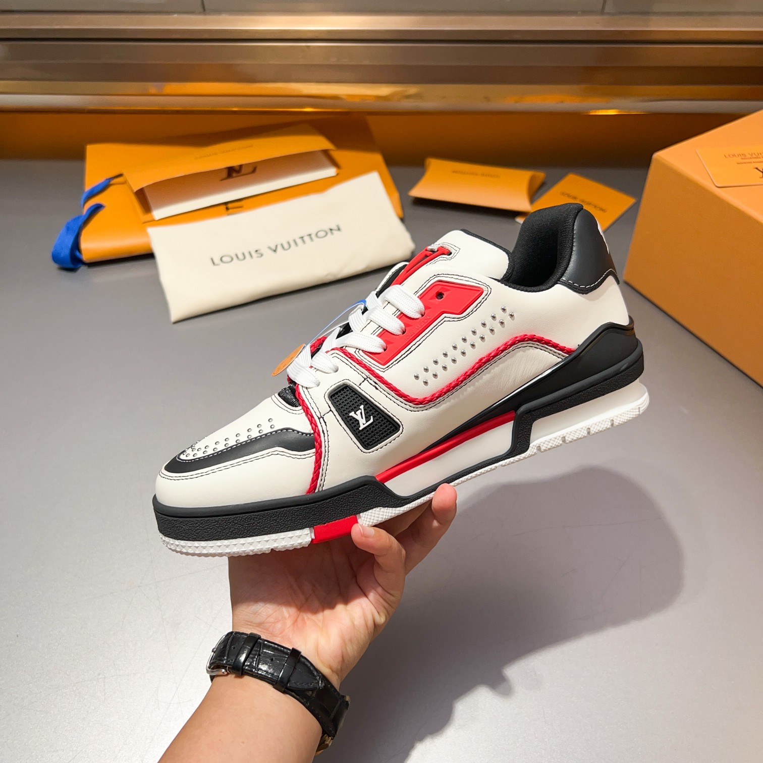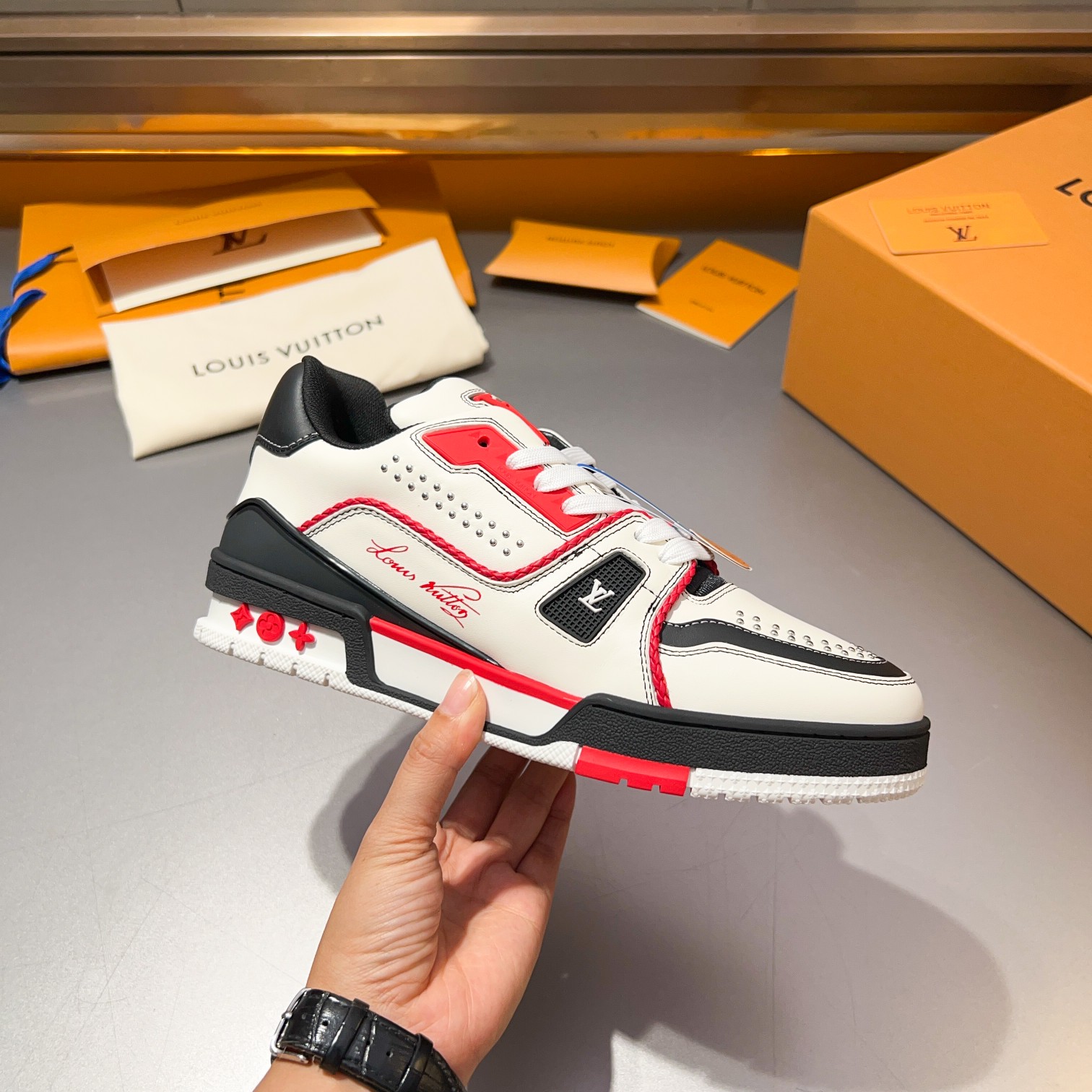 这款鞋子是AAAAA 1:1 质量 (非常棒). 使用了和原版一模一样的材料. 商标部分也保持了和一样. 图片拍摄是实物鞋子拍摄, 您所收到的实物保证和我们图片一模一样.
