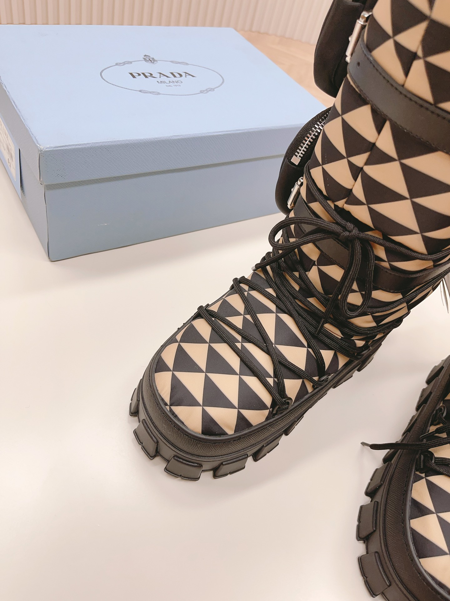 这款鞋子是AAAAA 1:1 质量 (非常棒). 使用了和原版一模一样的材料. 商标部分也保持了和普拉达/Prada一样. 图片拍摄是实物鞋子拍摄, 您所收到的实物保证和我们图片一模一样.