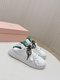 这款鞋子是AAAAA 1:1 质量 (非常棒). 使用了和原版一模一样的材料. 商标部分也保持了和缪缪/Miu Miu一样. 图片拍摄是实物鞋子拍摄, 您所收到的实物保证和我们图片一模一样.