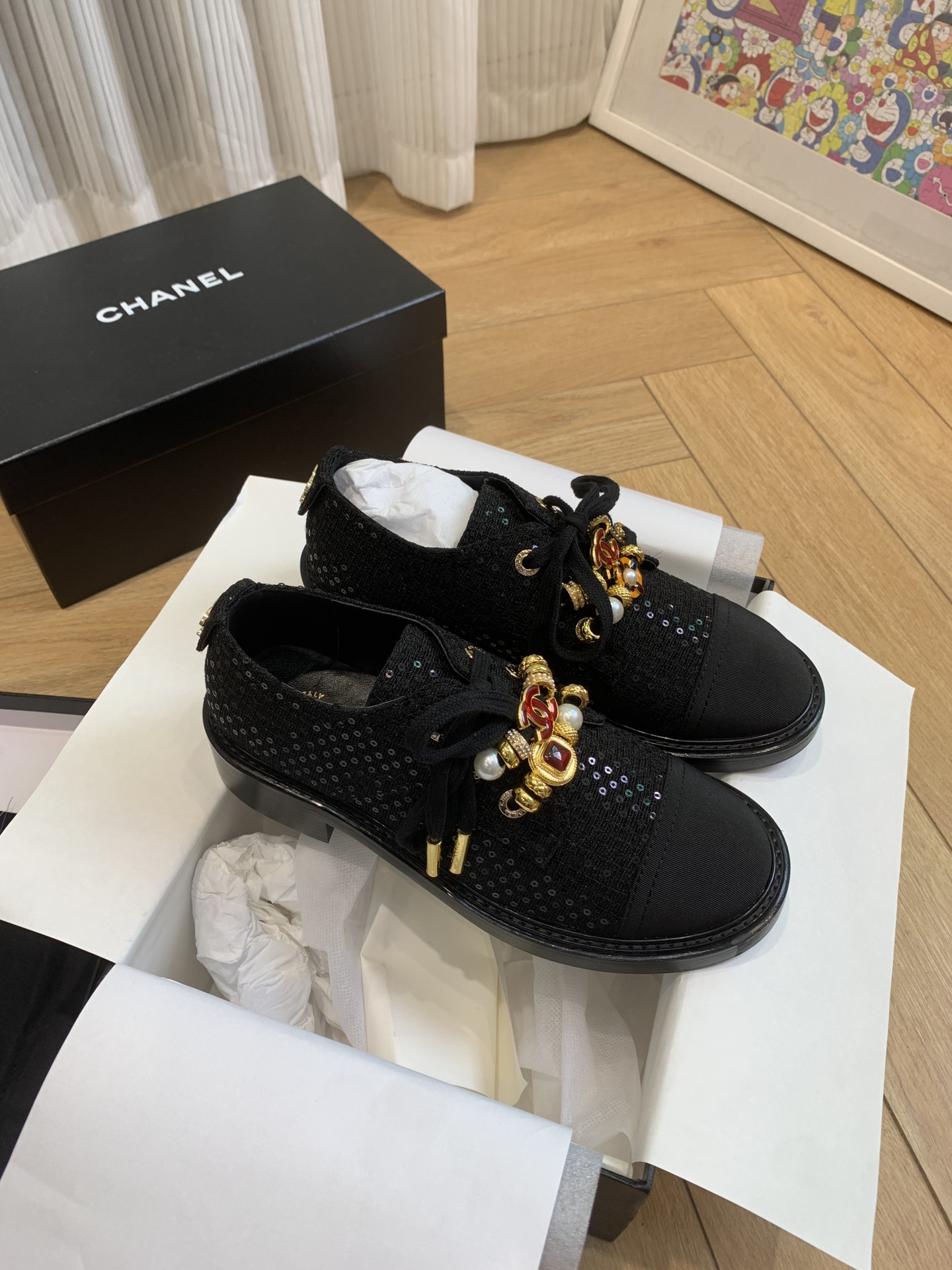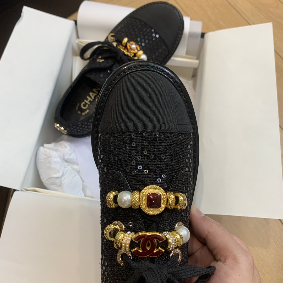 这款鞋子是AAAAA 1:1 质量 (非常棒). 使用了和原版一模一样的材料. 商标部分也保持了和香奈儿/Chanel一样. 图片拍摄是实物鞋子拍摄, 您所收到的实物保证和我们图片一模一样.