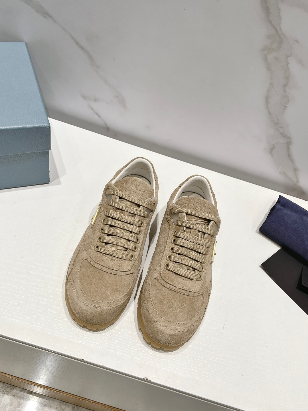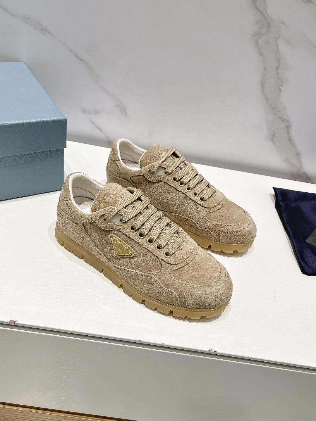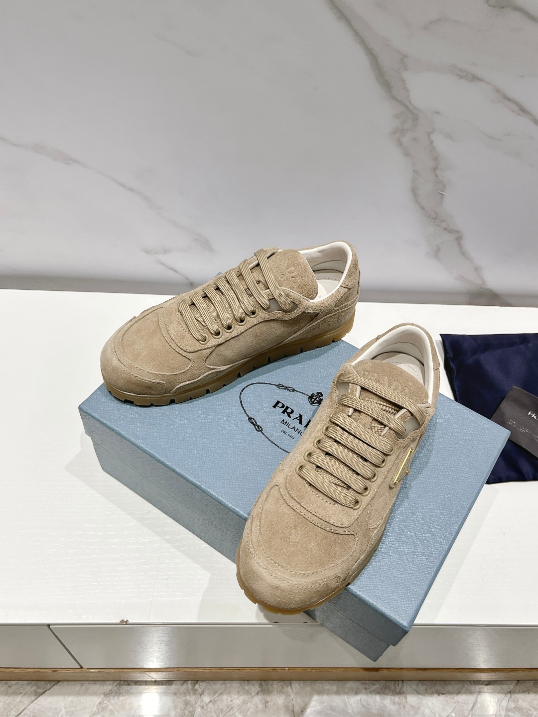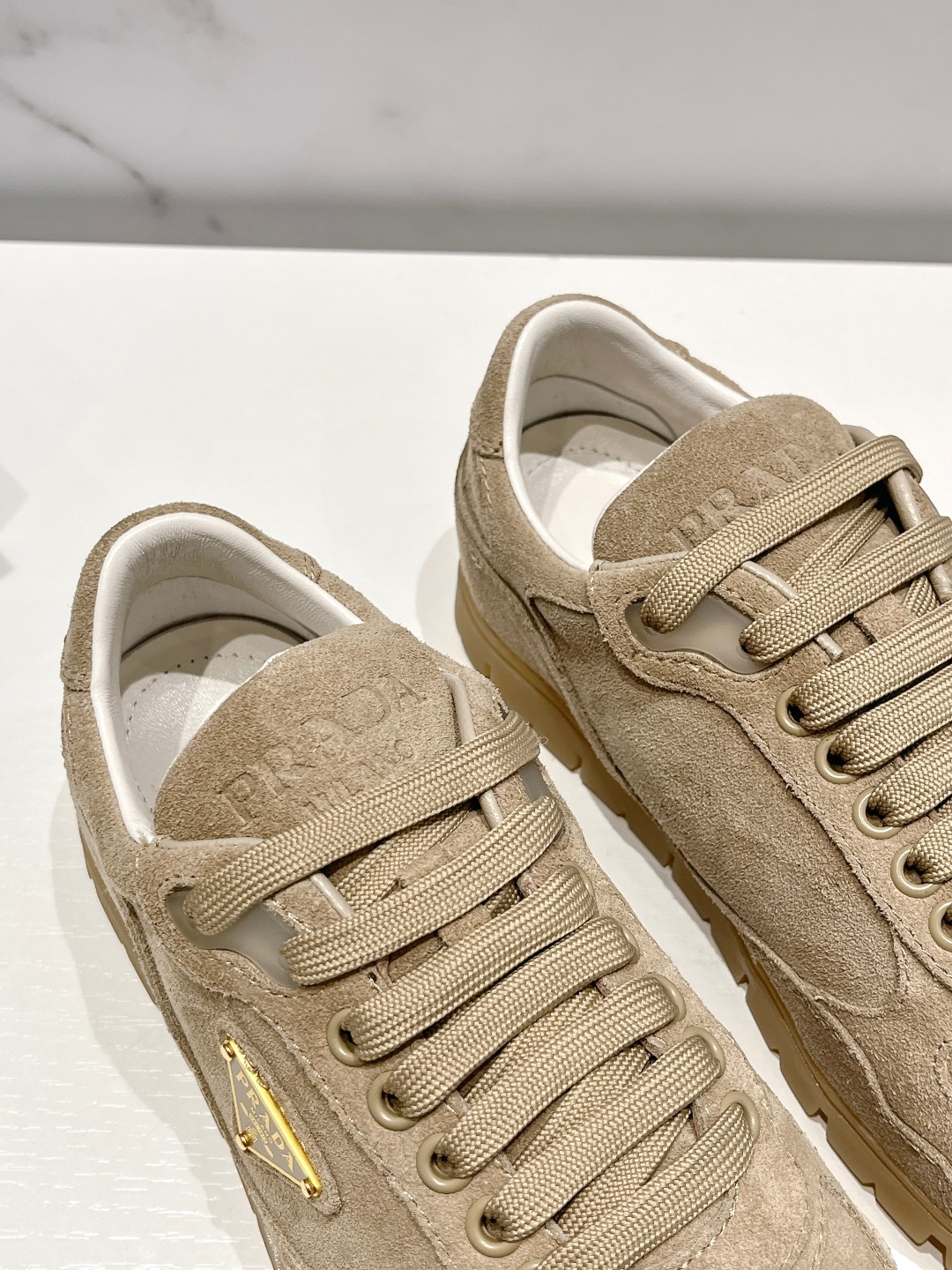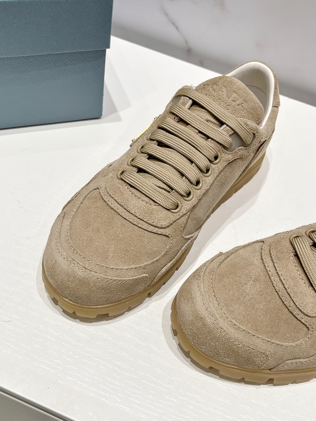 这款鞋子是AAAAA 1:1 质量 (非常棒). 使用了和原版一模一样的材料. 商标部分也保持了和普拉达/Prada一样. 图片拍摄是实物鞋子拍摄, 您所收到的实物保证和我们图片一模一样.