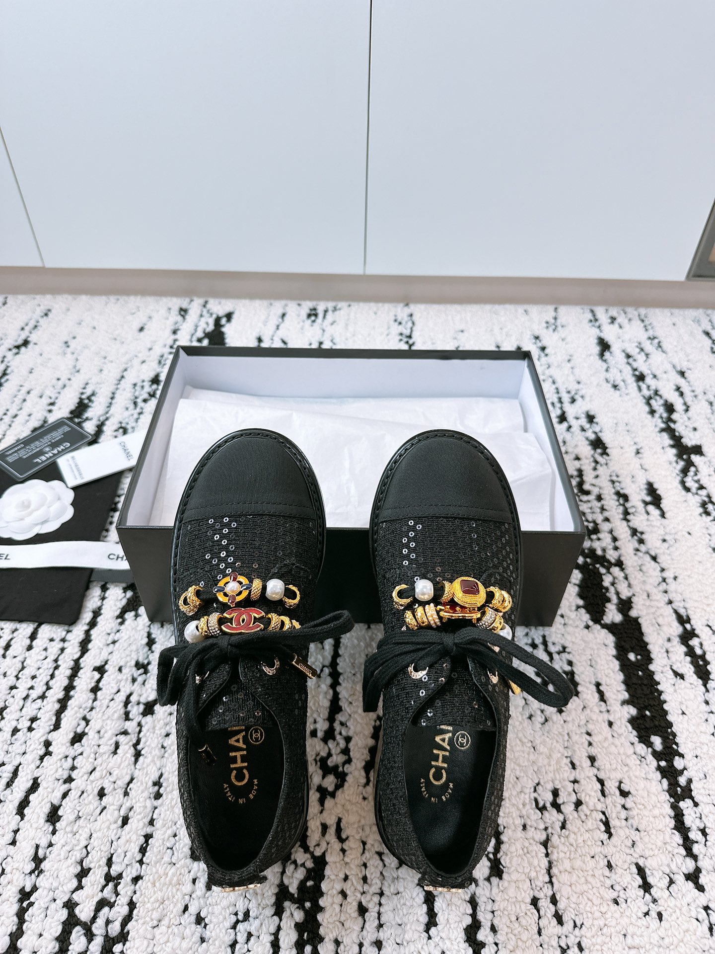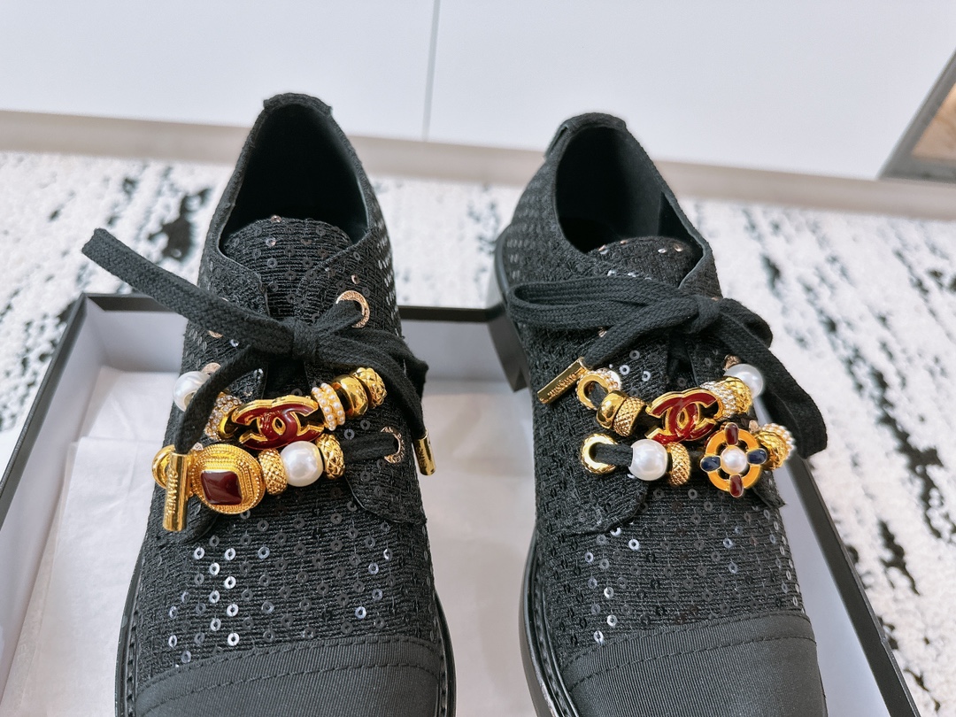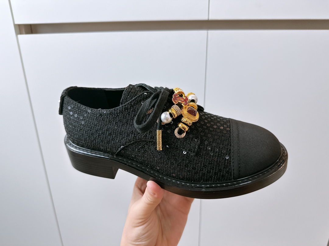 这款鞋子是AAAAA 1:1 质量 (非常棒). 使用了和原版一模一样的材料. 商标部分也保持了和香奈儿/Chanel一样. 图片拍摄是实物鞋子拍摄, 您所收到的实物保证和我们图片一模一样.