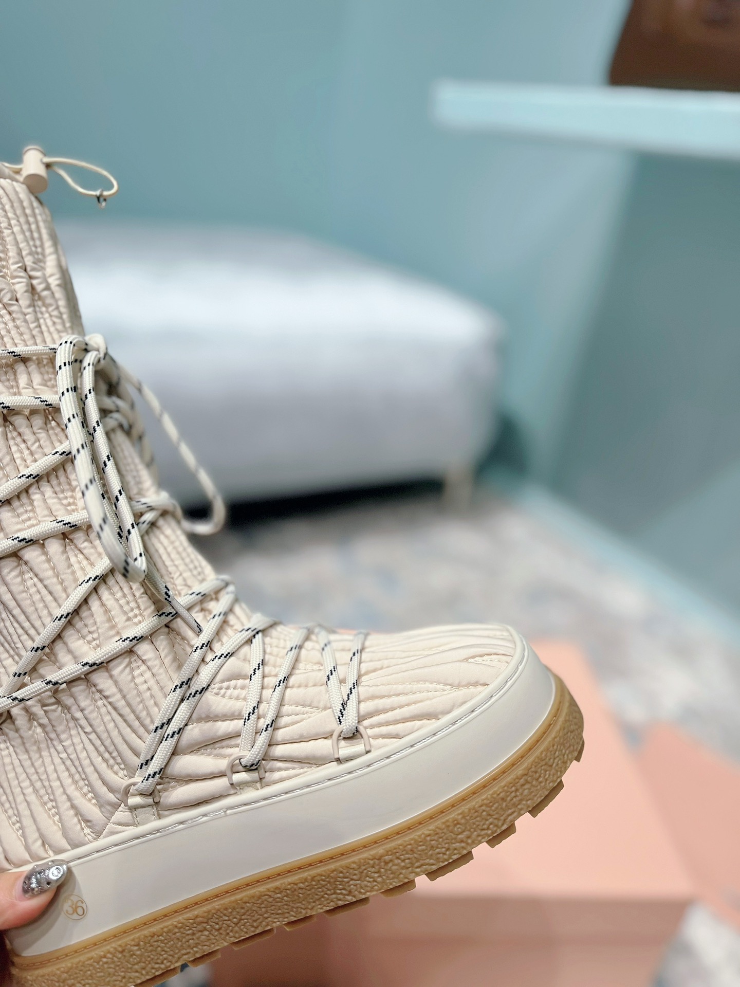 这款鞋子是AAAAA 1:1 质量 (非常棒). 使用了和原版一模一样的材料. 商标部分也保持了和缪缪/Miu Miu一样. 图片拍摄是实物鞋子拍摄, 您所收到的实物保证和我们图片一模一样.