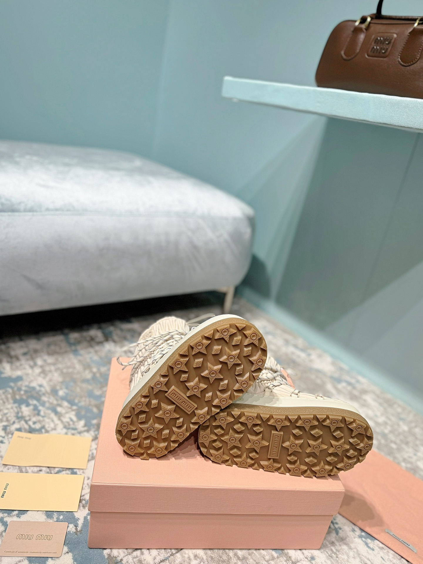 这款鞋子是AAAAA 1:1 质量 (非常棒). 使用了和原版一模一样的材料. 商标部分也保持了和缪缪/Miu Miu一样. 图片拍摄是实物鞋子拍摄, 您所收到的实物保证和我们图片一模一样.