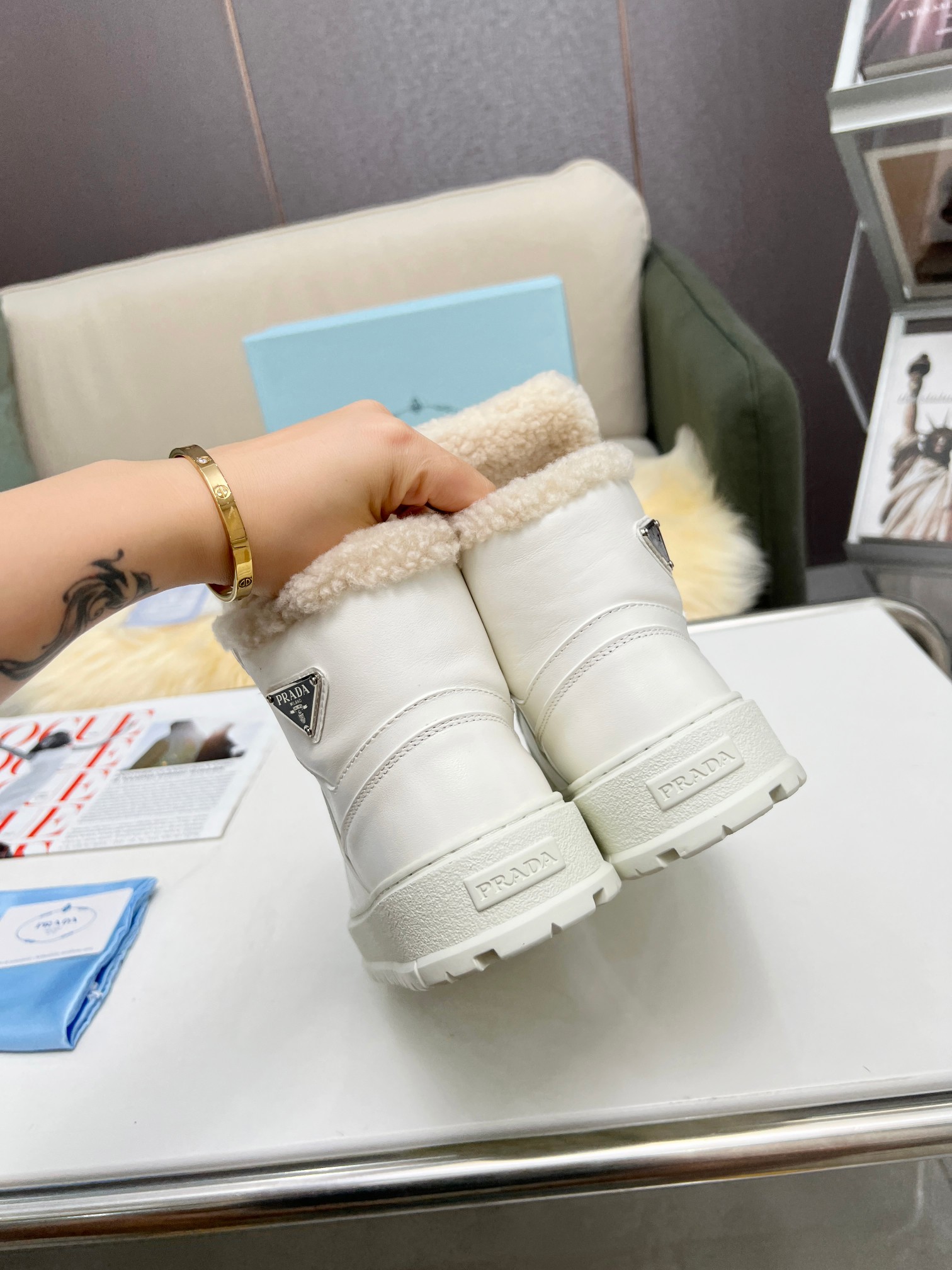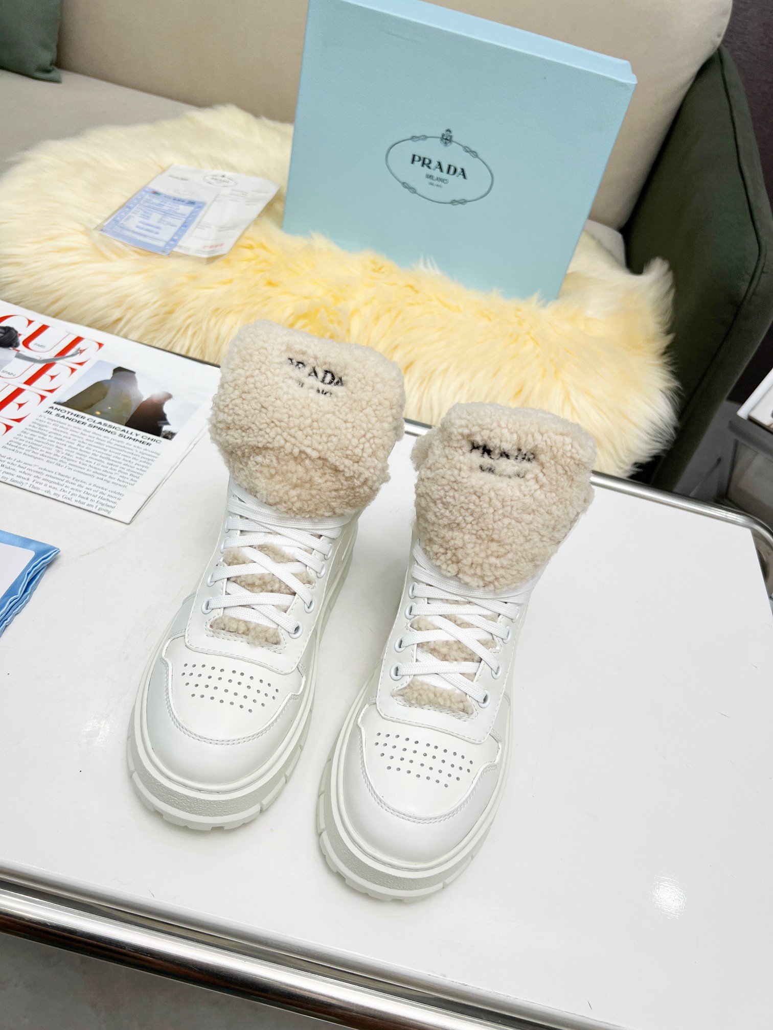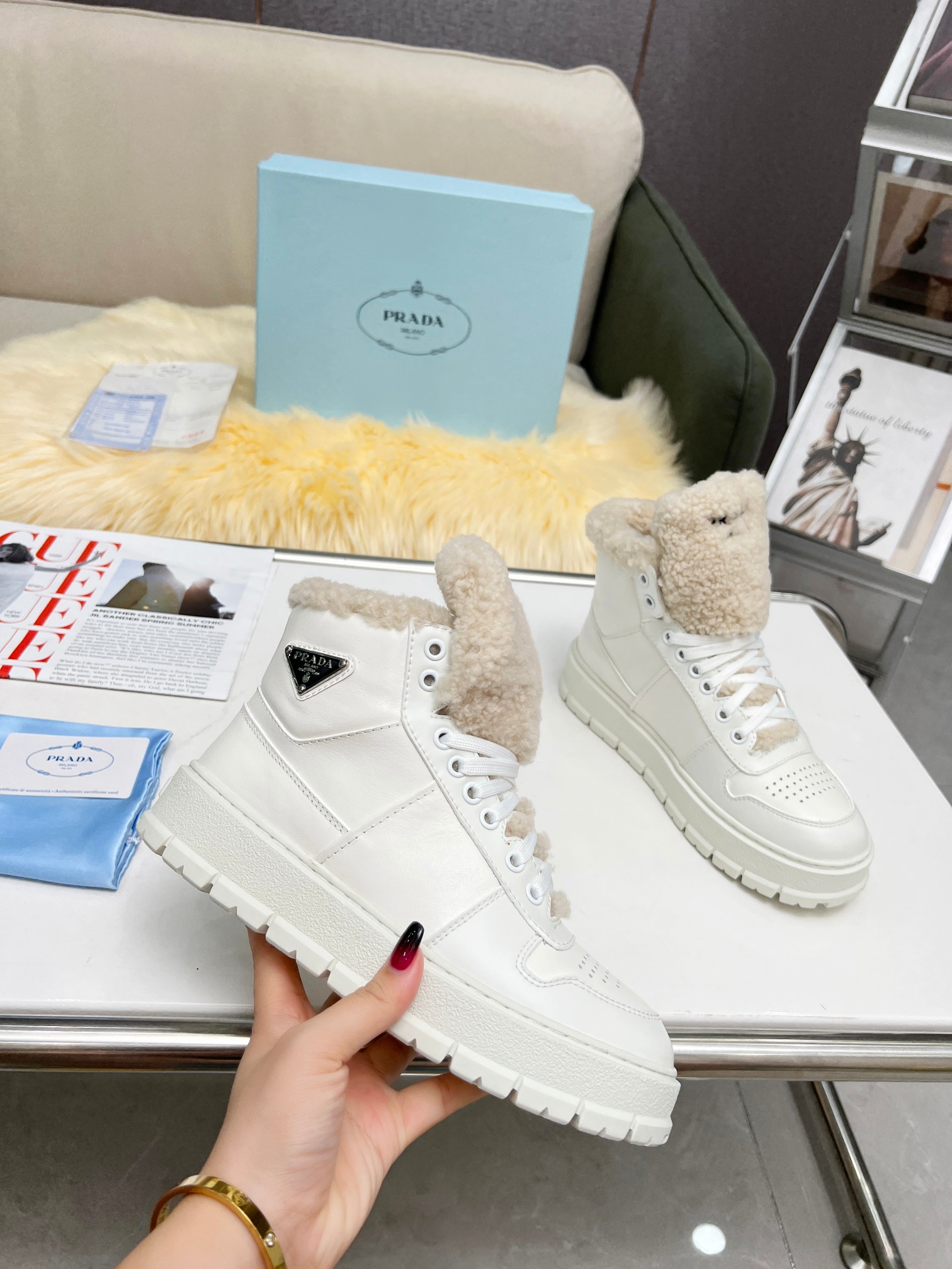 这款鞋子是AAAAA 1:1 质量 (非常棒). 使用了和原版一模一样的材料. 商标部分也保持了和普拉达/Prada一样. 图片拍摄是实物鞋子拍摄, 您所收到的实物保证和我们图片一模一样.