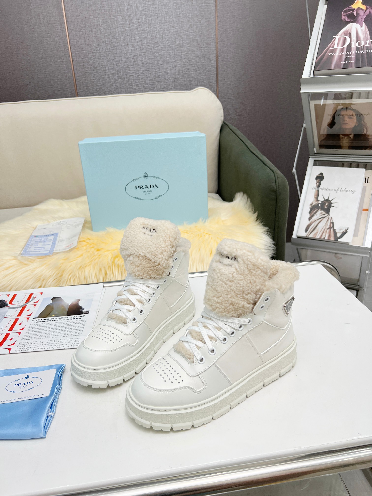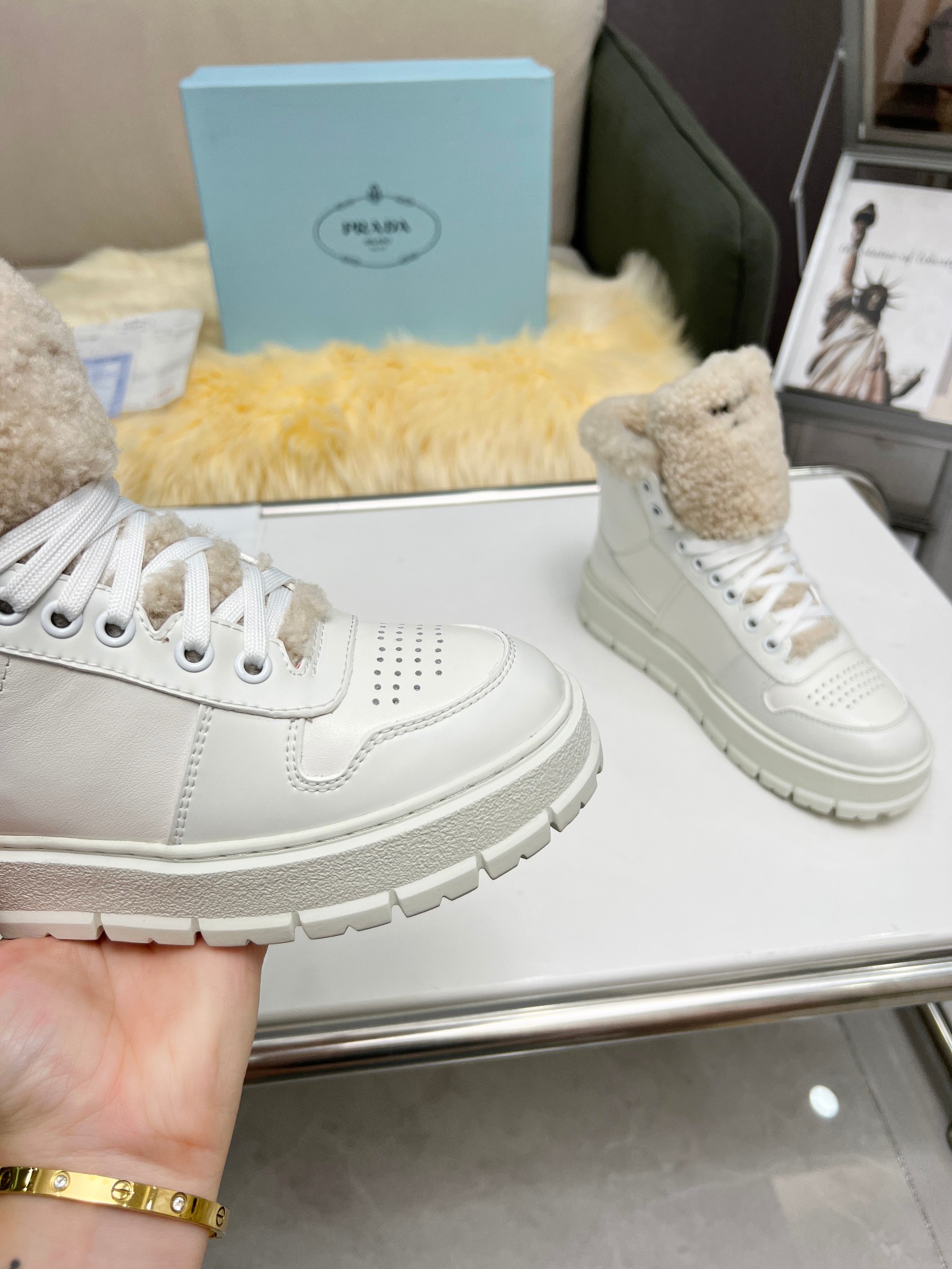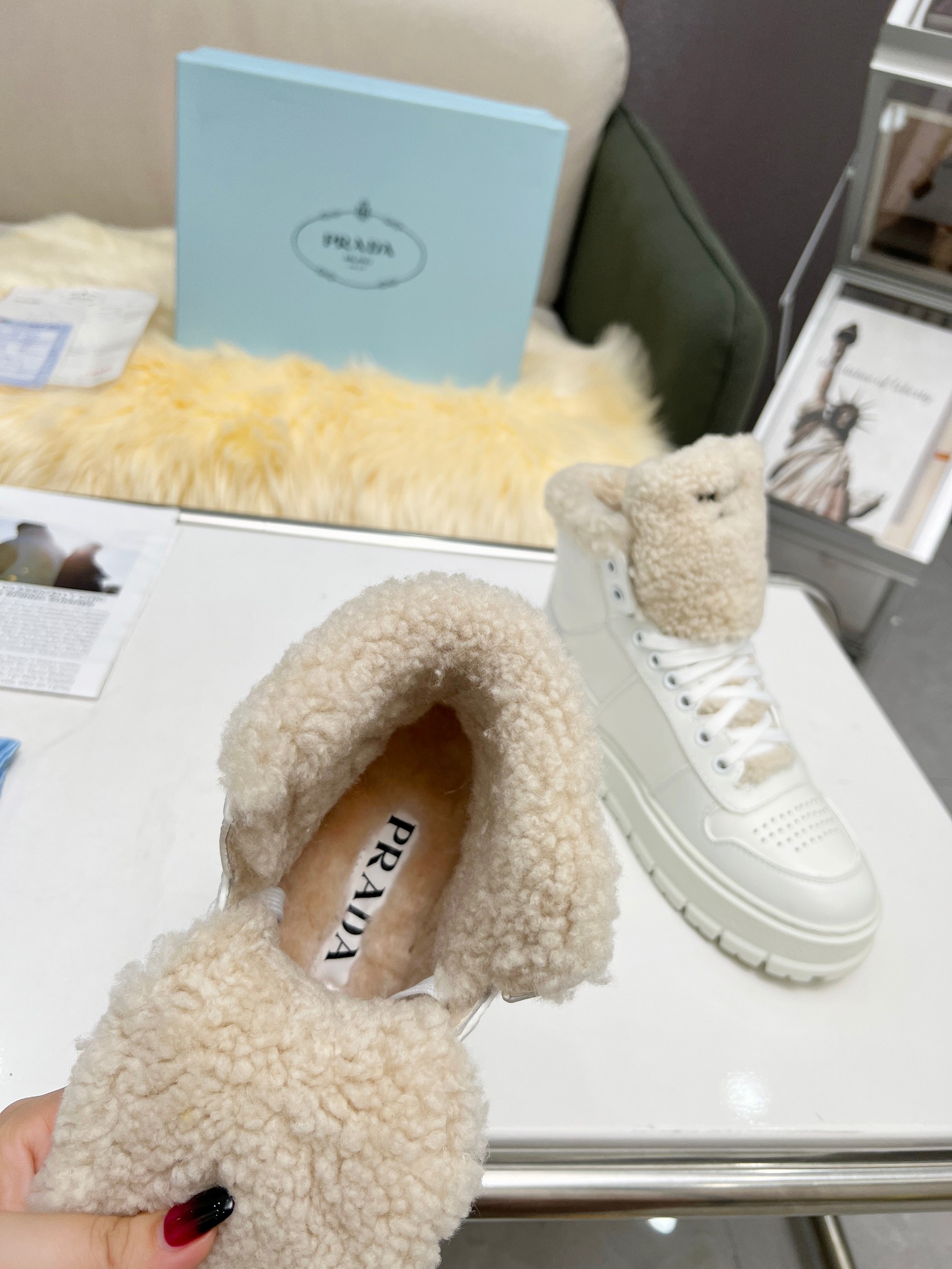 这款鞋子是AAAAA 1:1 质量 (非常棒). 使用了和原版一模一样的材料. 商标部分也保持了和普拉达/Prada一样. 图片拍摄是实物鞋子拍摄, 您所收到的实物保证和我们图片一模一样.