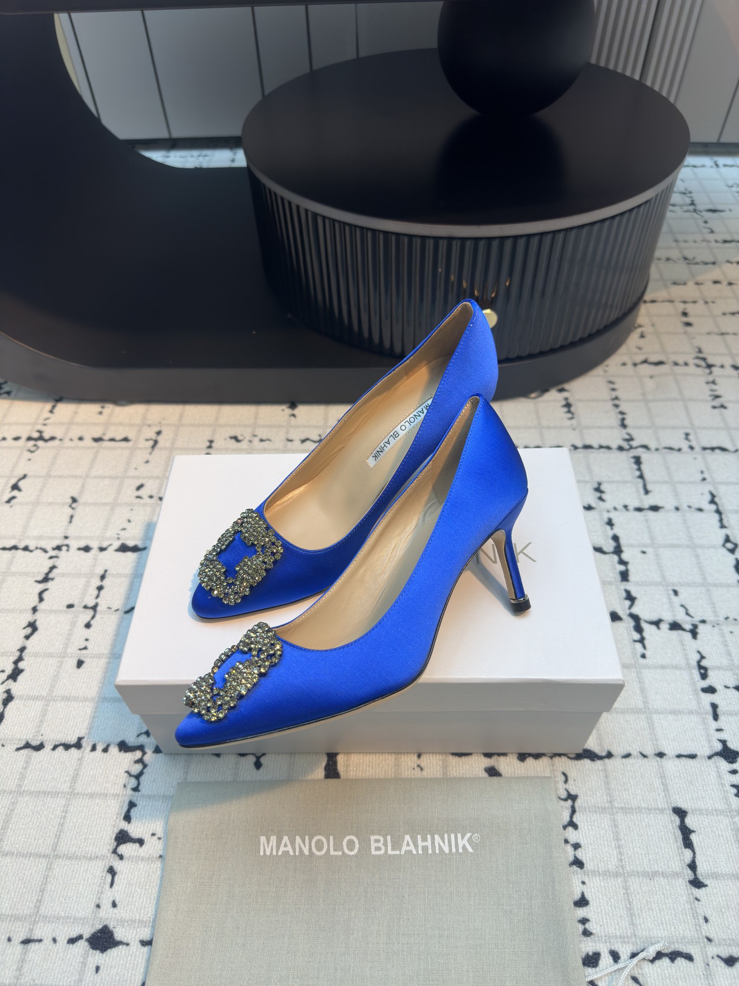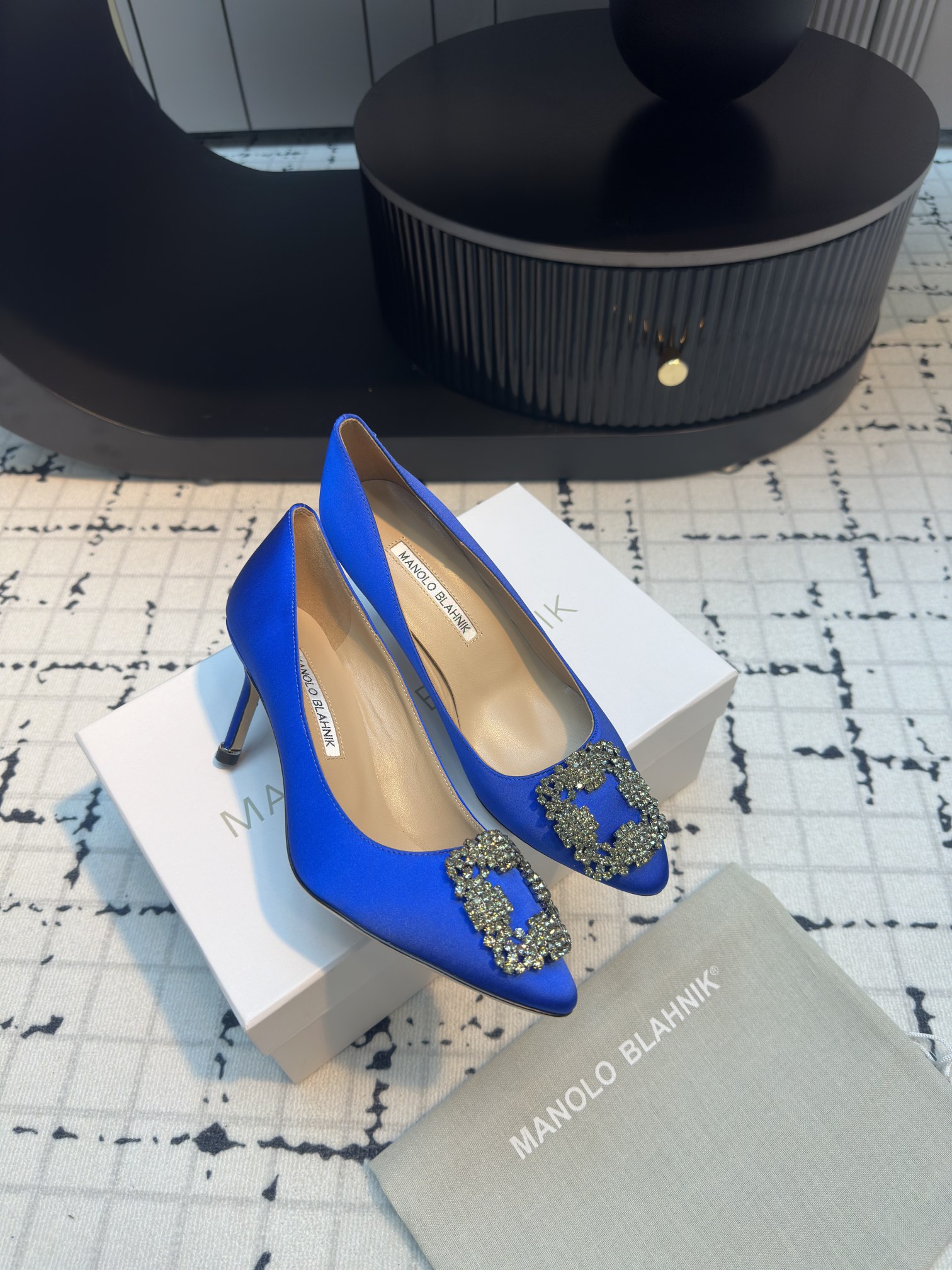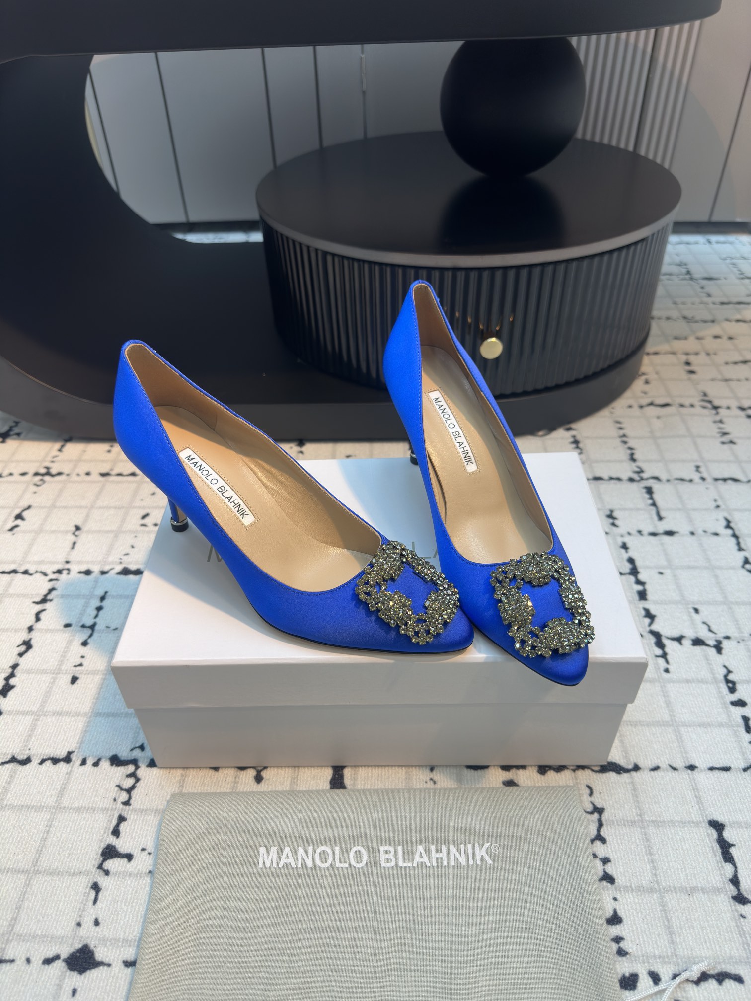 这款鞋子是AAAAA 1:1 质量 (非常棒). 使用了和原版一模一样的材料. 商标部分也保持了和马诺洛·布拉尼克/Manolo Blahnik一样. 图片拍摄是实物鞋子拍摄, 您所收到的实物保证和我们图片一模一样.