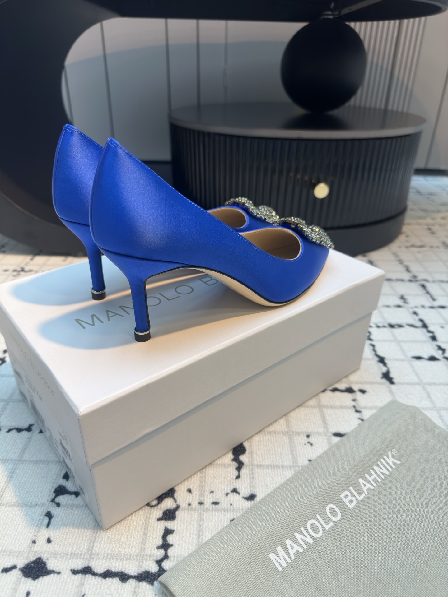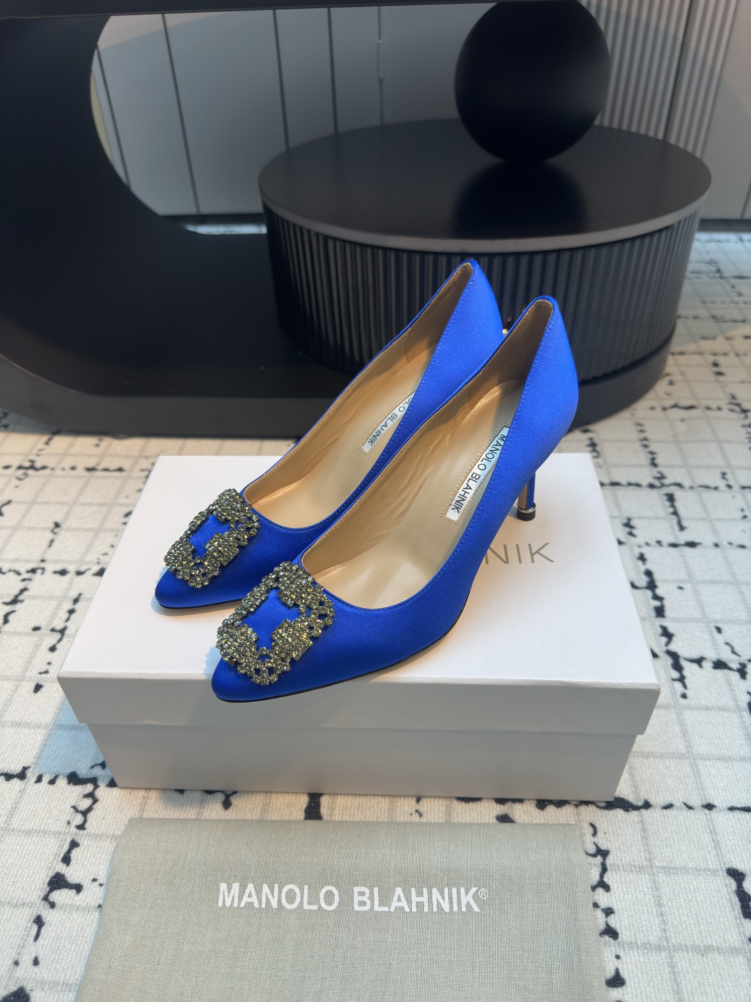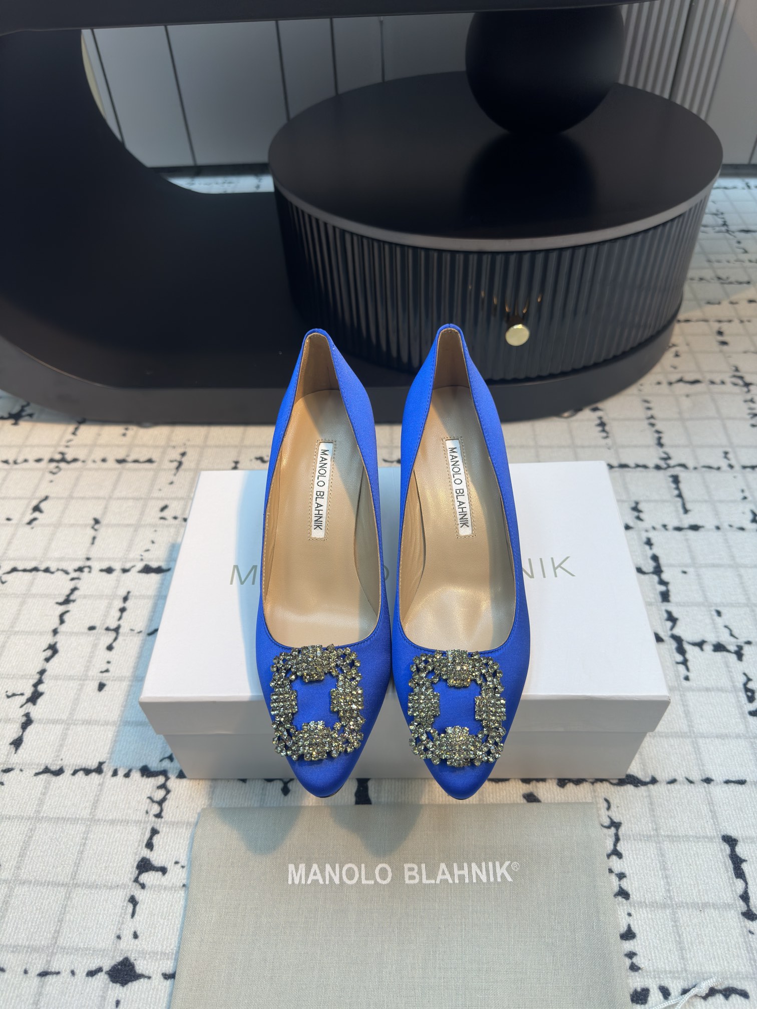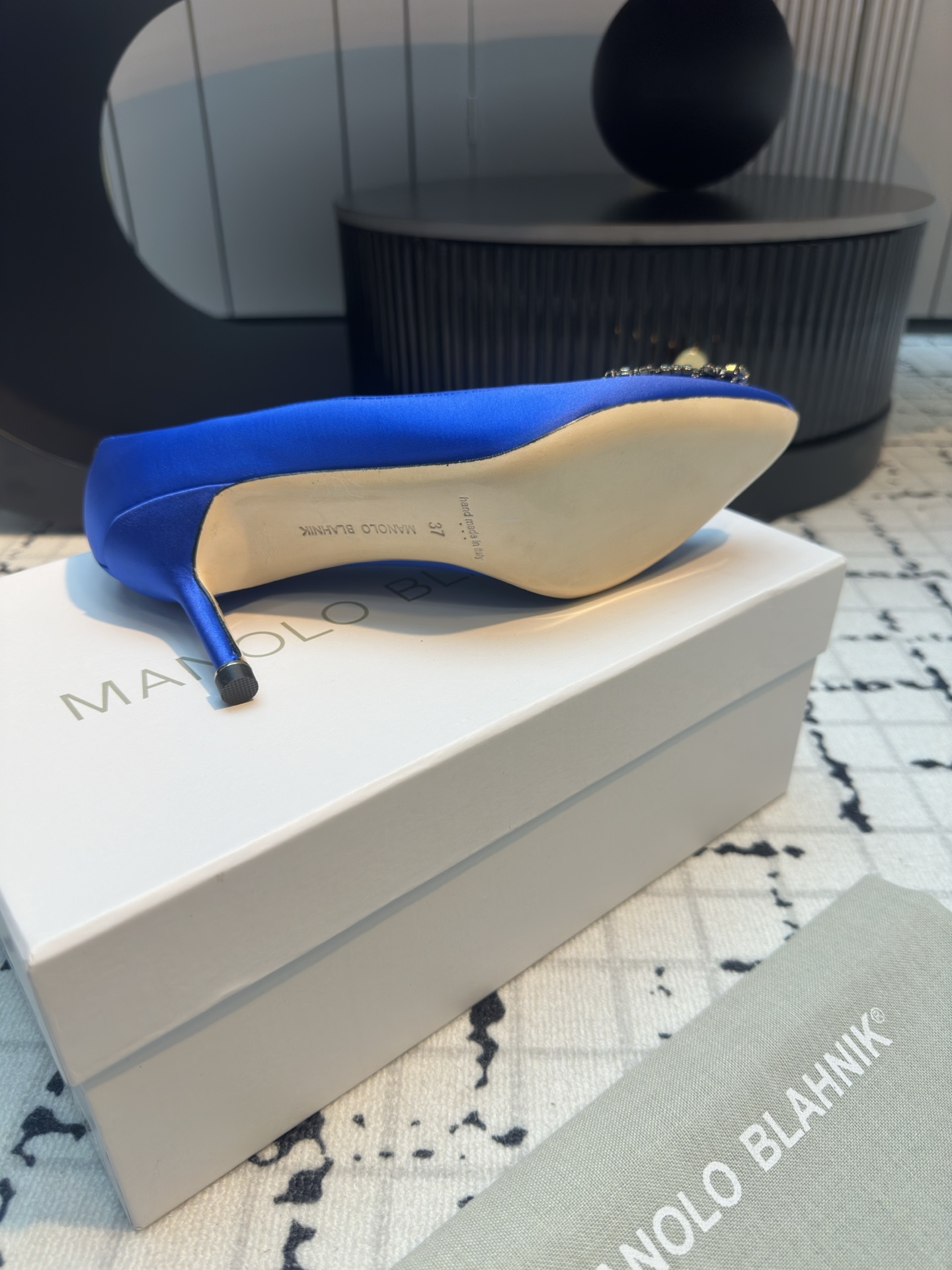 这款鞋子是AAAAA 1:1 质量 (非常棒). 使用了和原版一模一样的材料. 商标部分也保持了和马诺洛·布拉尼克/Manolo Blahnik一样. 图片拍摄是实物鞋子拍摄, 您所收到的实物保证和我们图片一模一样.