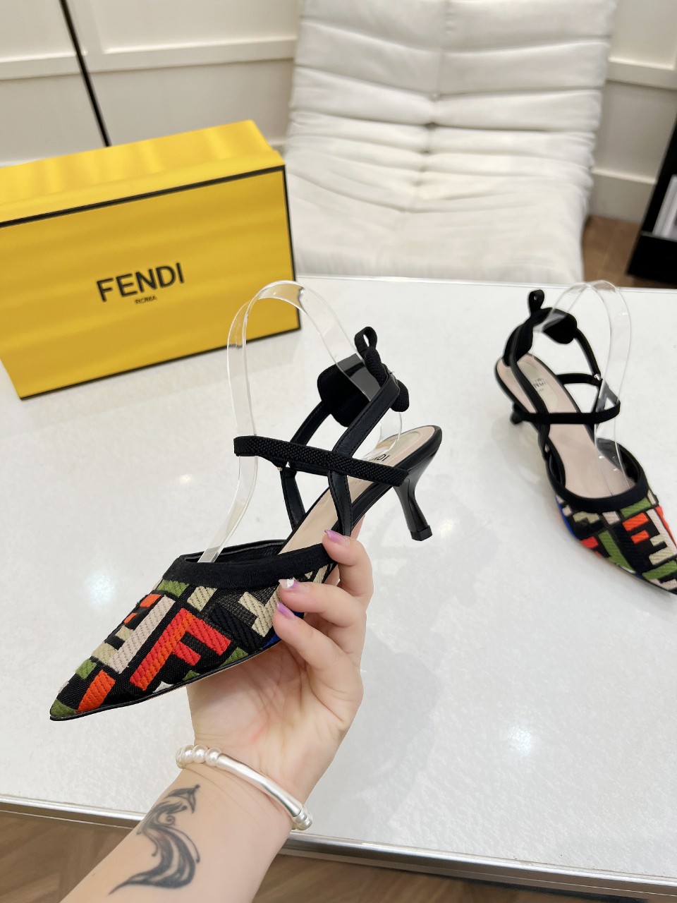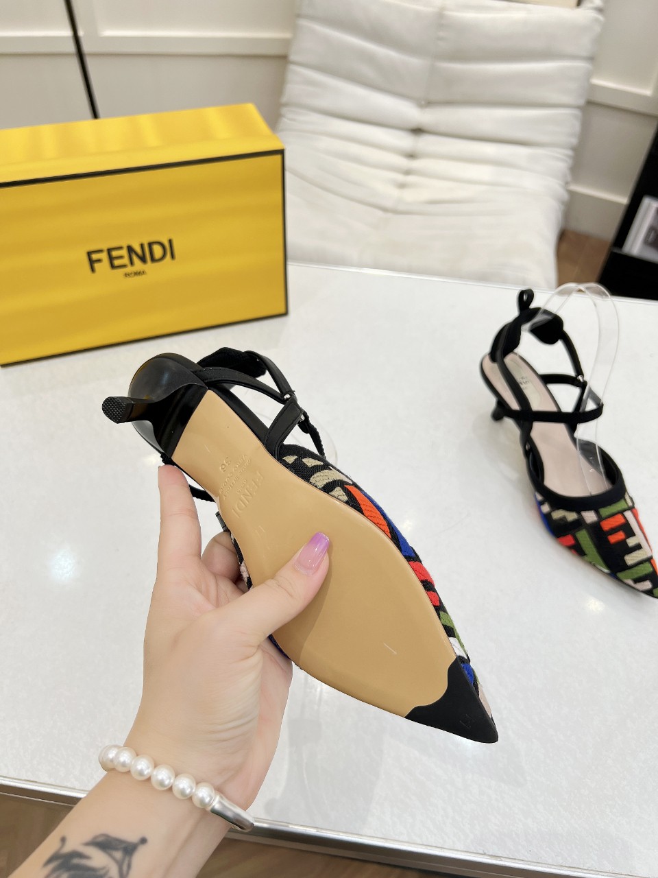 这款鞋子是AAAAA 1:1 质量 (非常棒). 使用了和原版一模一样的材料. 商标部分也保持了和芬迪/Fendi一样. 图片拍摄是实物鞋子拍摄, 您所收到的实物保证和我们图片一模一样.