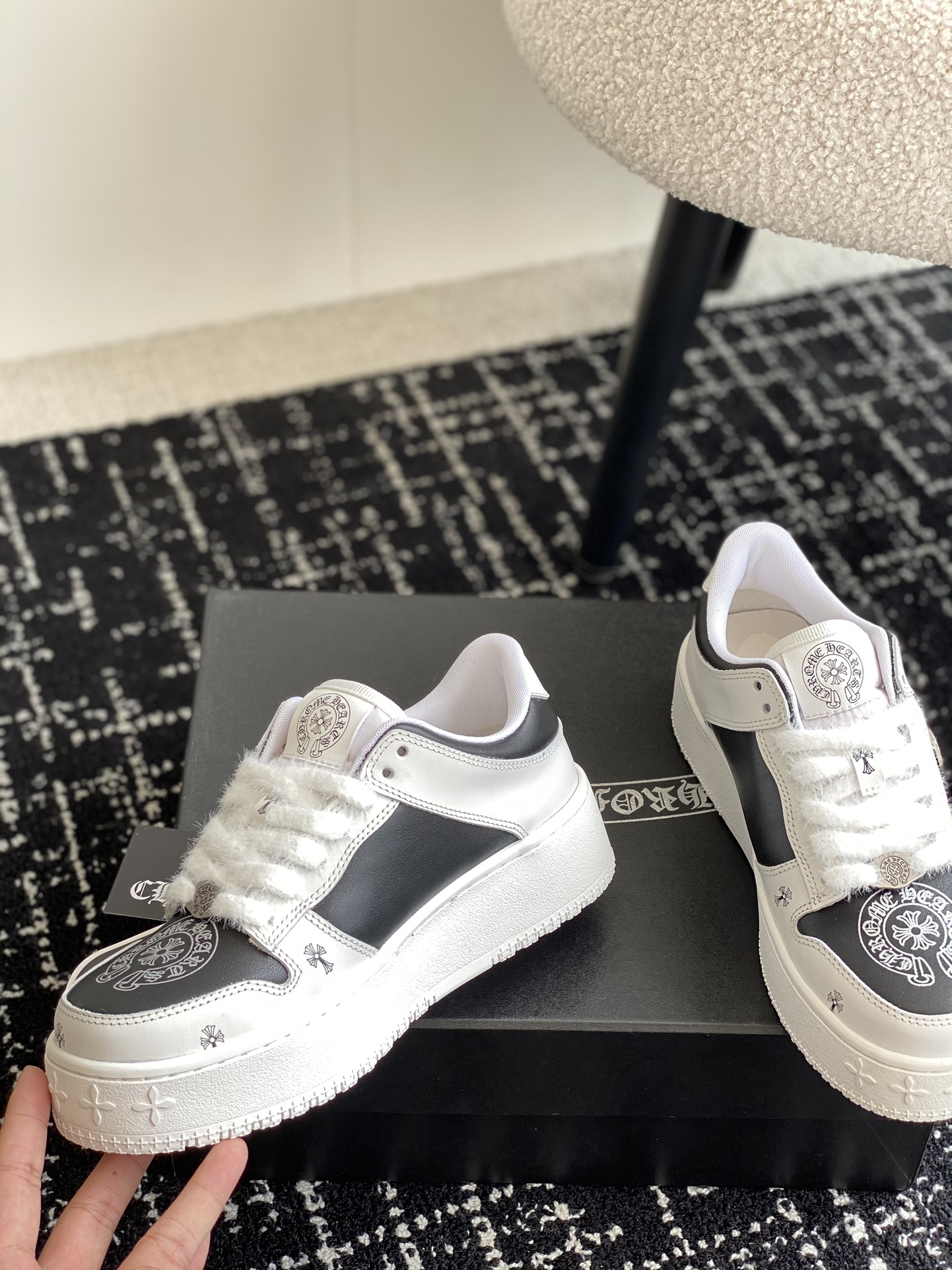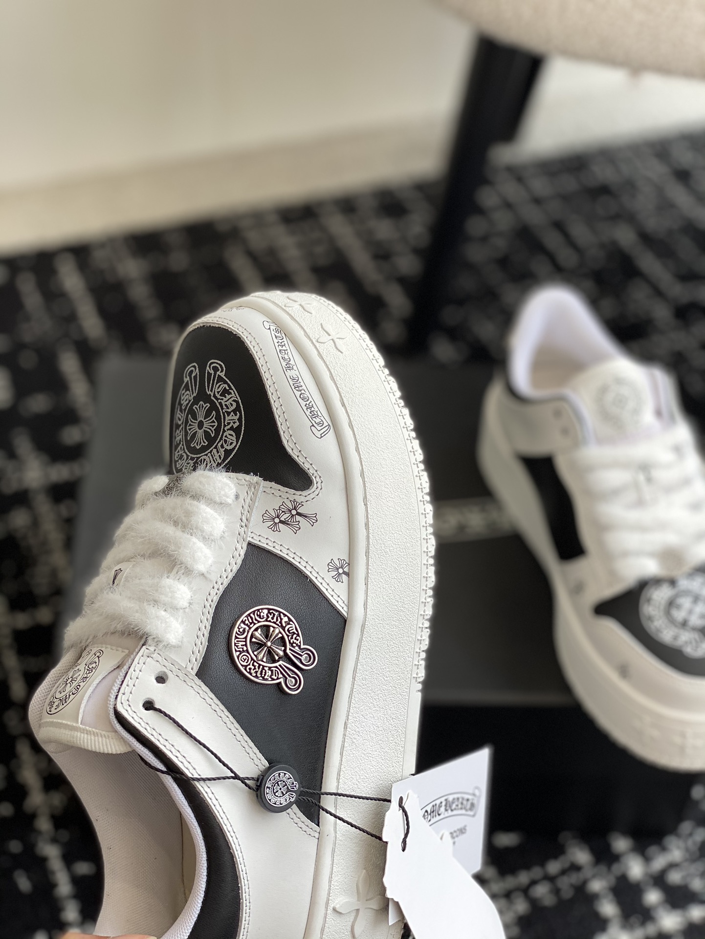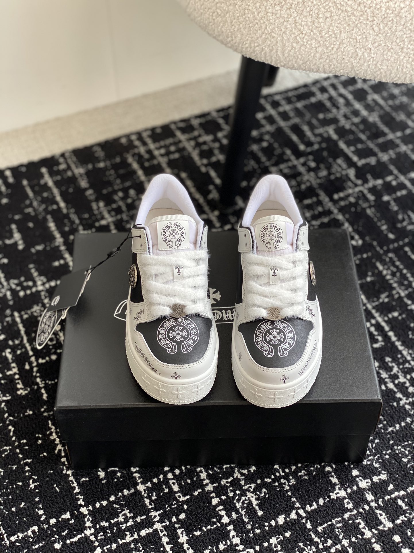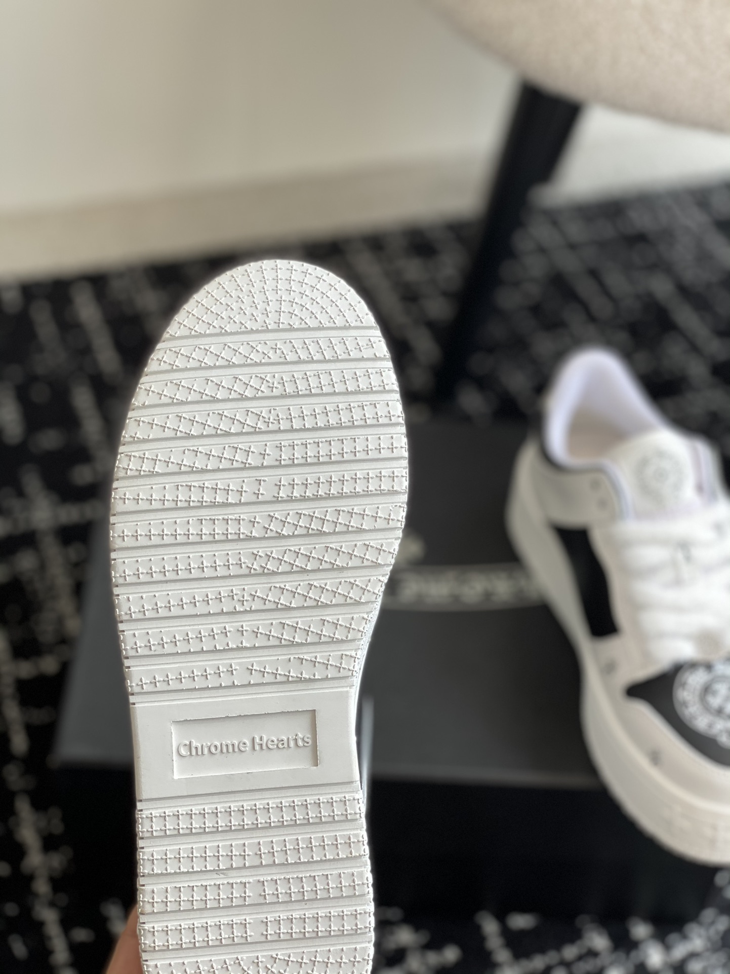 这款鞋子是AAAAA 1:1 质量 (非常棒). 使用了和原版一模一样的材料. 商标部分也保持了和克罗心/Chrome Hearts一样. 图片拍摄是实物鞋子拍摄, 您所收到的实物保证和我们图片一模一样.