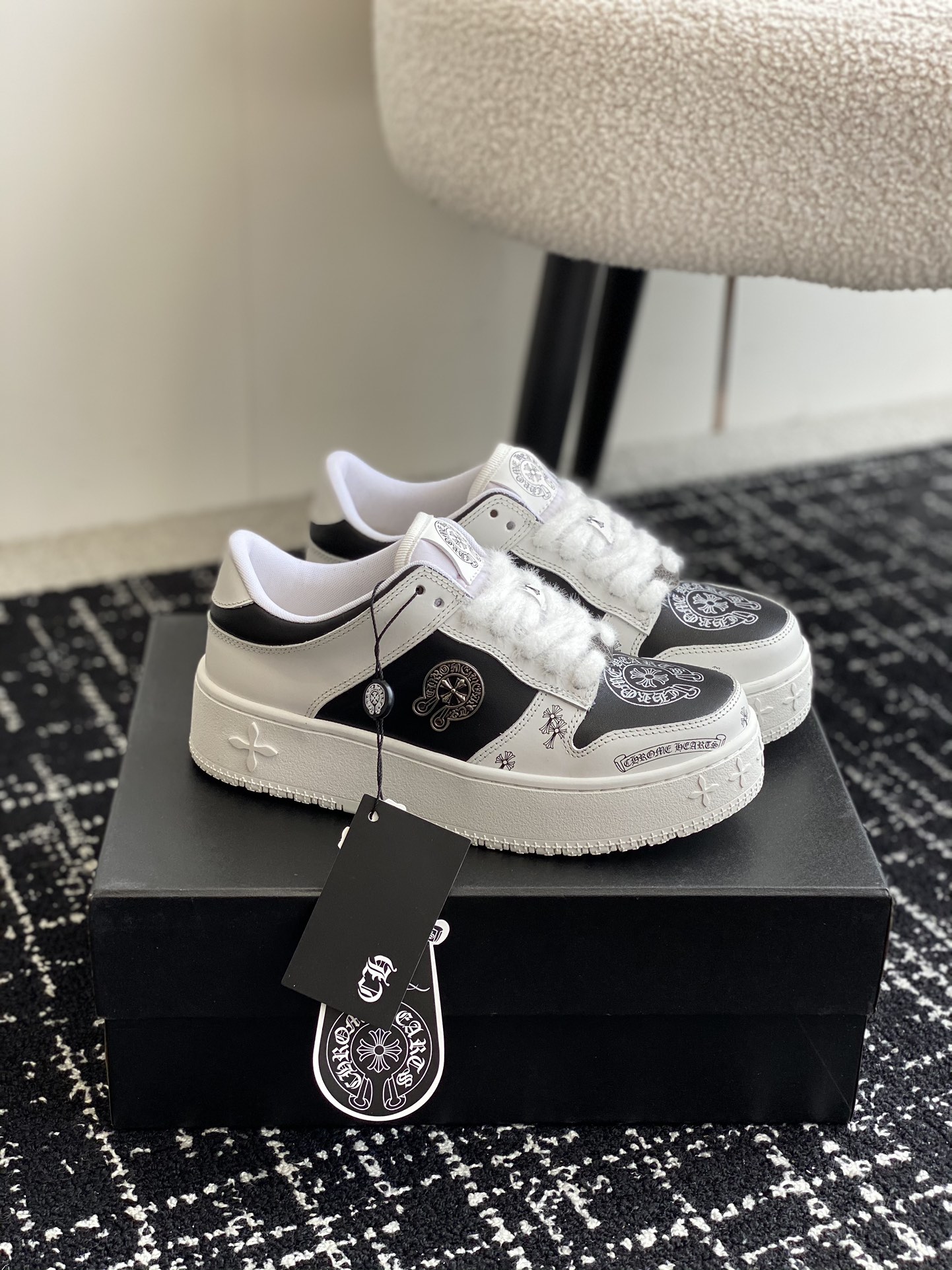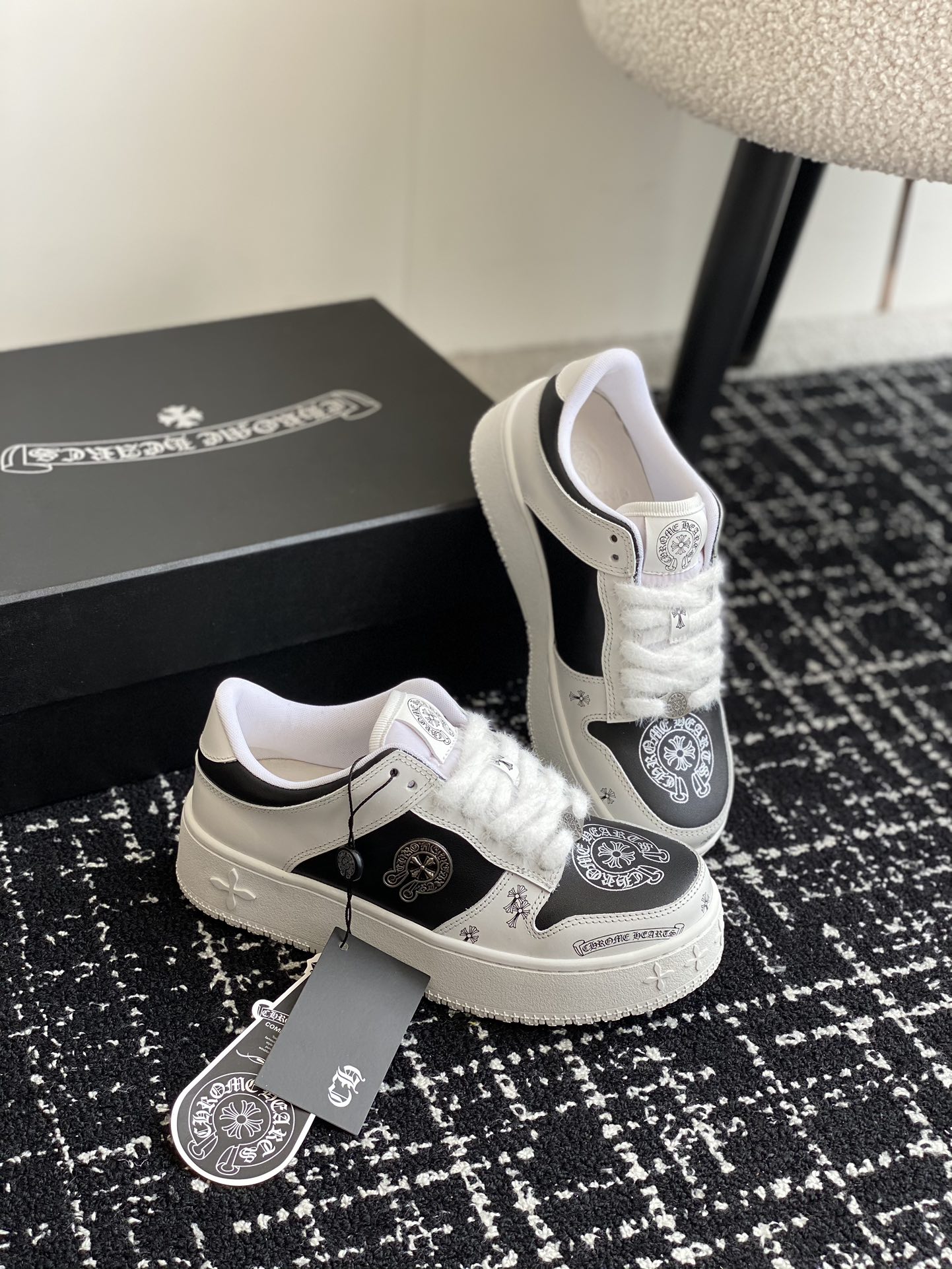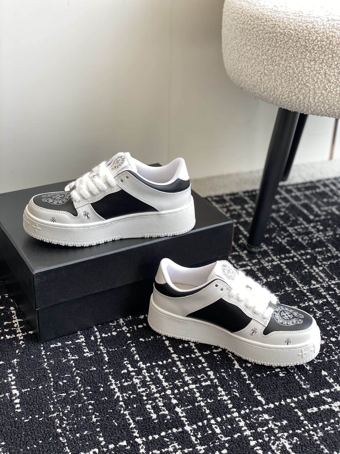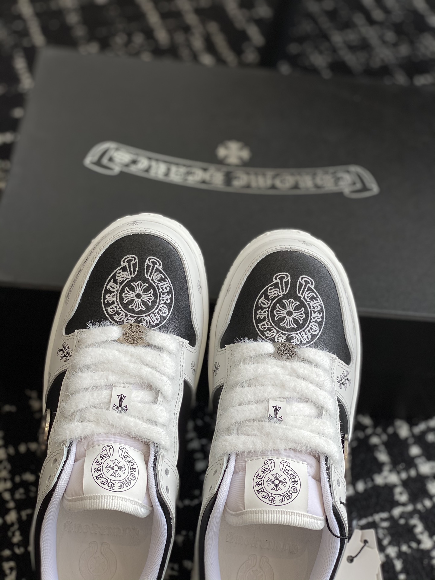 这款鞋子是AAAAA 1:1 质量 (非常棒). 使用了和原版一模一样的材料. 商标部分也保持了和克罗心/Chrome Hearts一样. 图片拍摄是实物鞋子拍摄, 您所收到的实物保证和我们图片一模一样.
