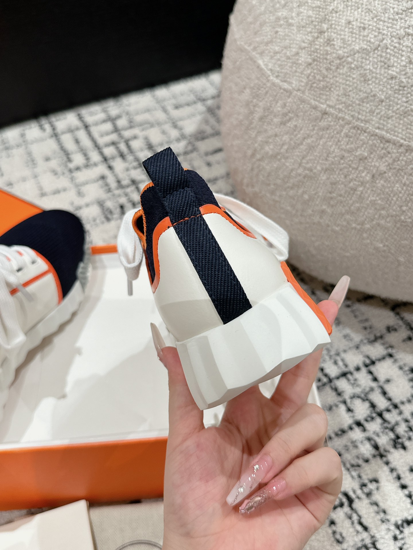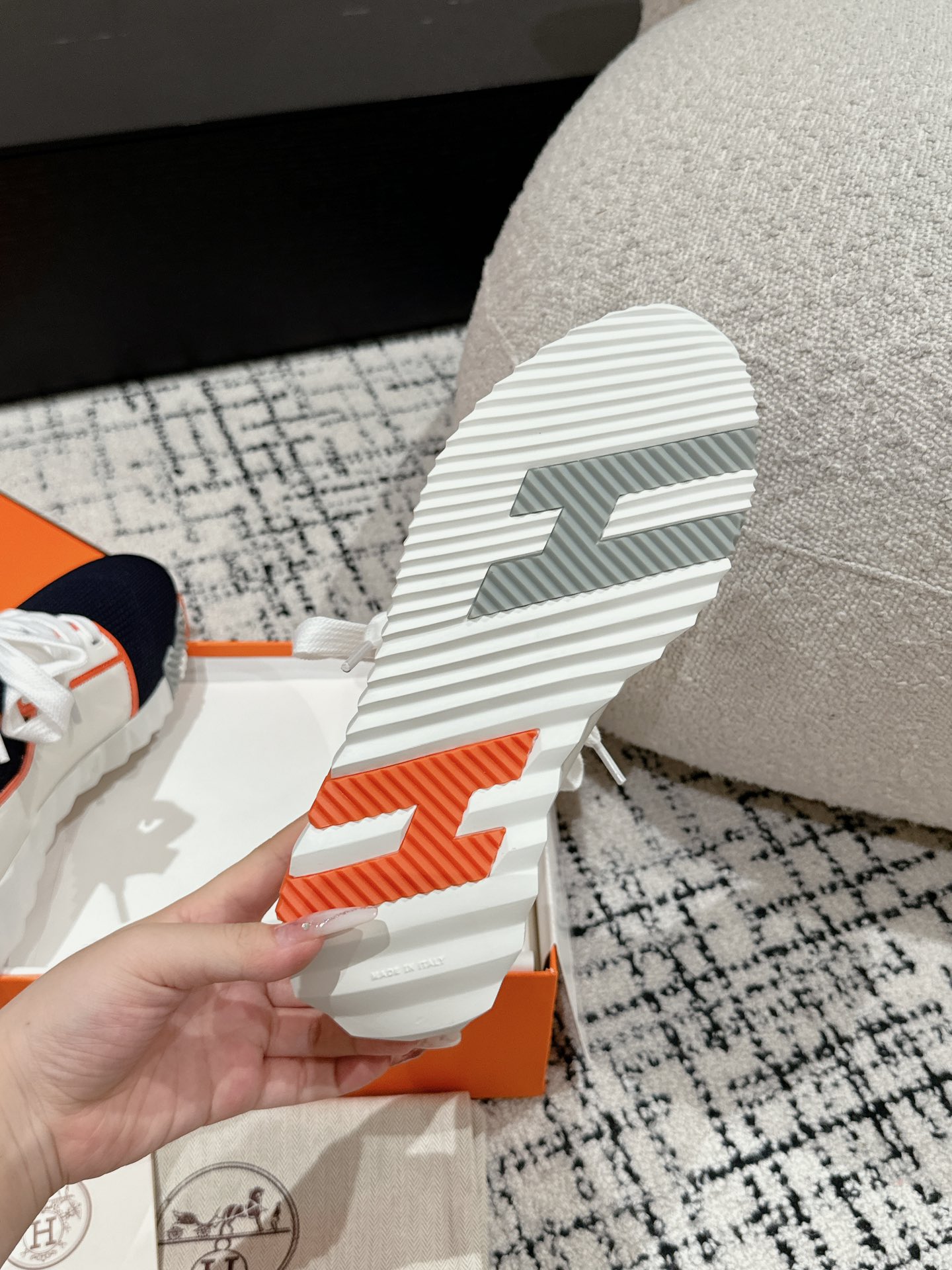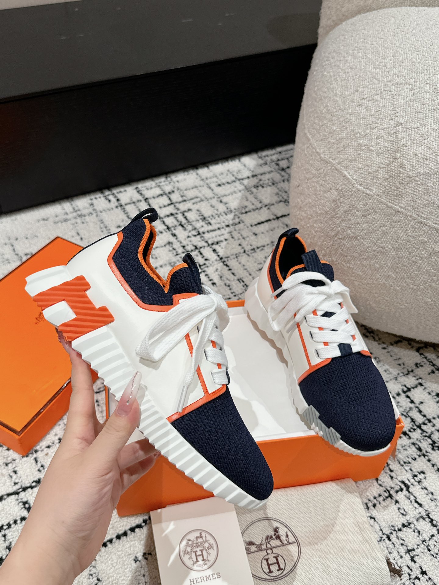 这款鞋子是AAAAA 1:1 质量 (非常棒). 使用了和原版一模一样的材料. 商标部分也保持了和爱马仕/Hermes一样. 图片拍摄是实物鞋子拍摄, 您所收到的实物保证和我们图片一模一样.